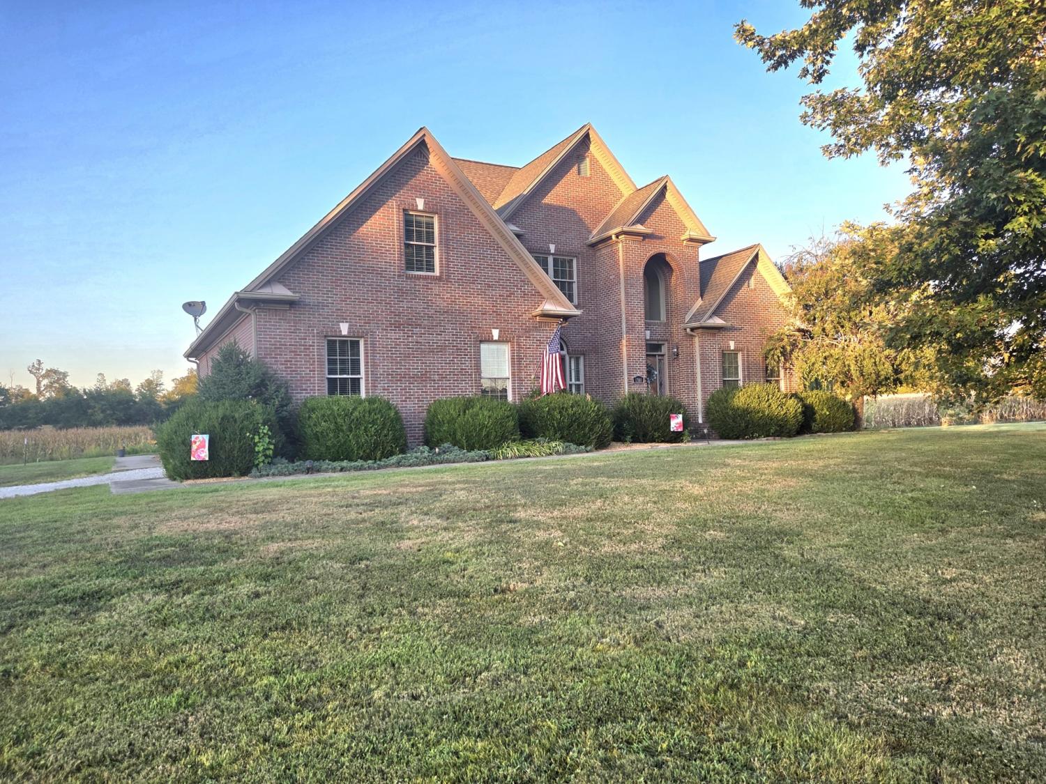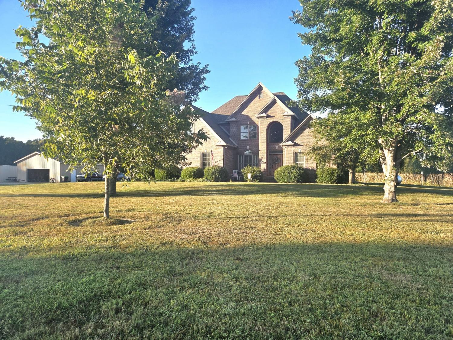 Spacious all brick home in the country with privacy you can only dream of! This home offers 3 bedrooms with an additional 2 downstairs that can not be included because they do not have a window. This home also features 4 full baths and a remodeled powder room. Enjoy the outdoors with a inground pool, half basketball court and 30x40 workshop with electric. Remodeled basement includes a game room with a pool table that conveys with home. Kitchen has exceptional views of pool, farmland and also includes under cabinet lighting. New HVAC with transferable warranty, new roof 2024, new pool liner 2023 and new flooring. No more dreaming of the perfect home call today before its gone!