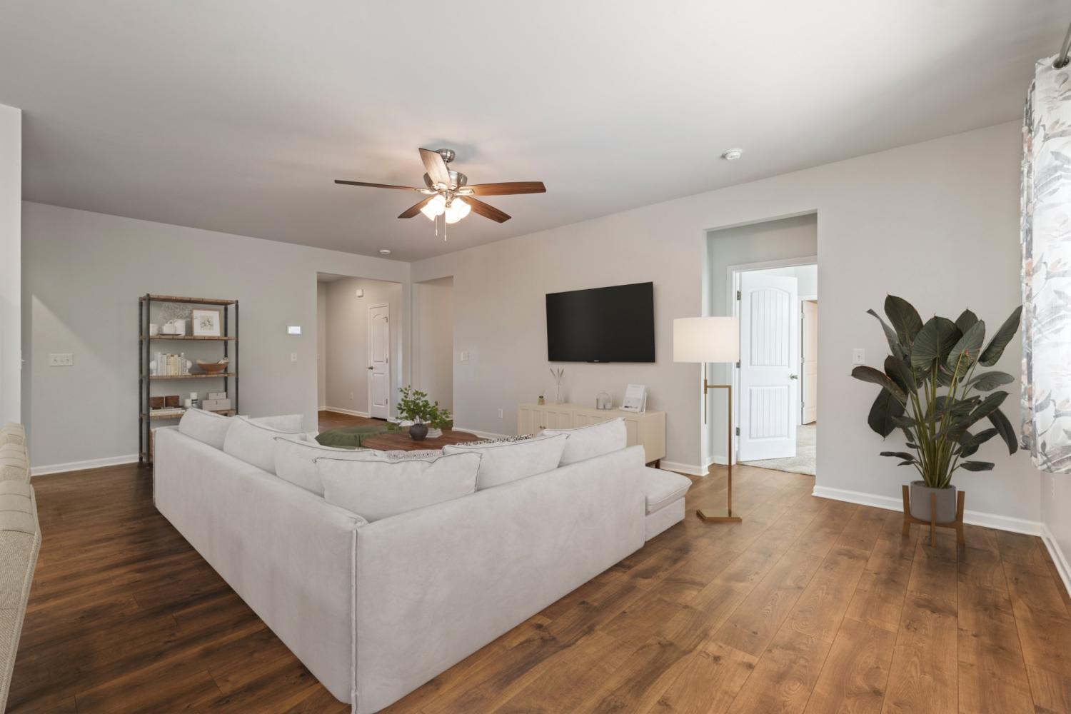Come see this beautiful, rare opportunity of a single-level home in the Villages of Hunter's Point neighborhood. Nestled against the backdrop of trees, the back yard feels peaceful and private. Freshly painted and move in ready for the next owner. As you walk in through the entry, you enter into an open living room adjacent to the kitchen and dining space. Walking outside, you are greeted with a newly extended patio and the peaceful back yard. The large primary suite has an ensuite bathroom with a walk in shower. Don't miss the two walk in closets! On the opposite side of the house, there are three spacious bedrooms and a bathroom. This home features plenty of storage space between all the closets and the two car garage. The sellers have improved the property by adding a new water softener and extending the back and front patio. They have loved this home and are so sad to leave! The community has a beautiful resort style pool, picnic area, playground, and sidewalks! A short 5 minute drive to Lebanon's adorable downtown square with restaurants and shopping!