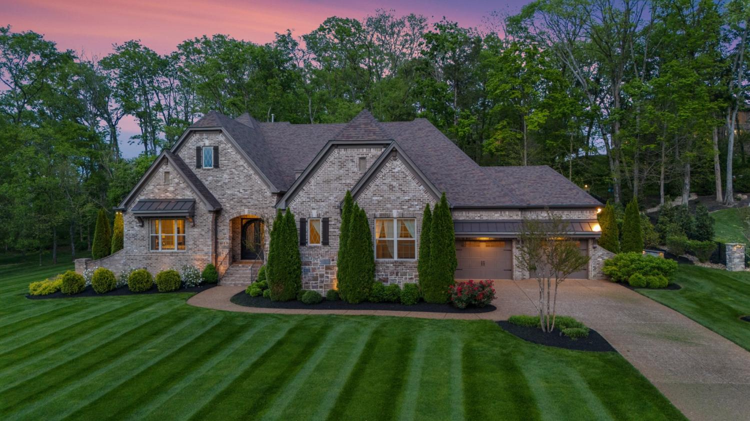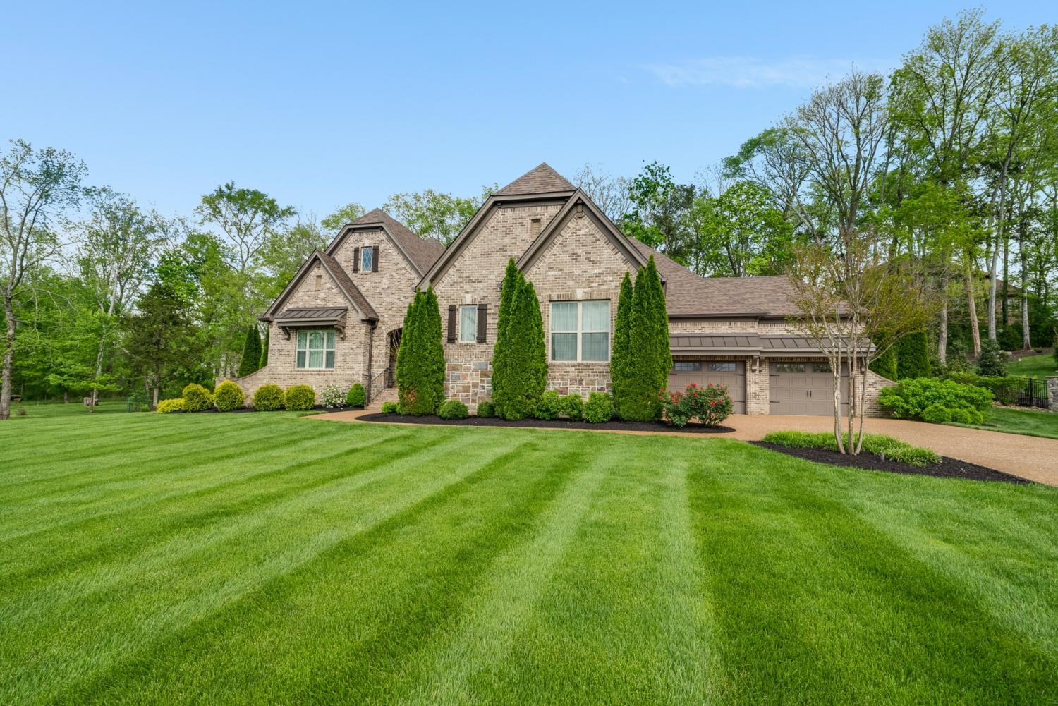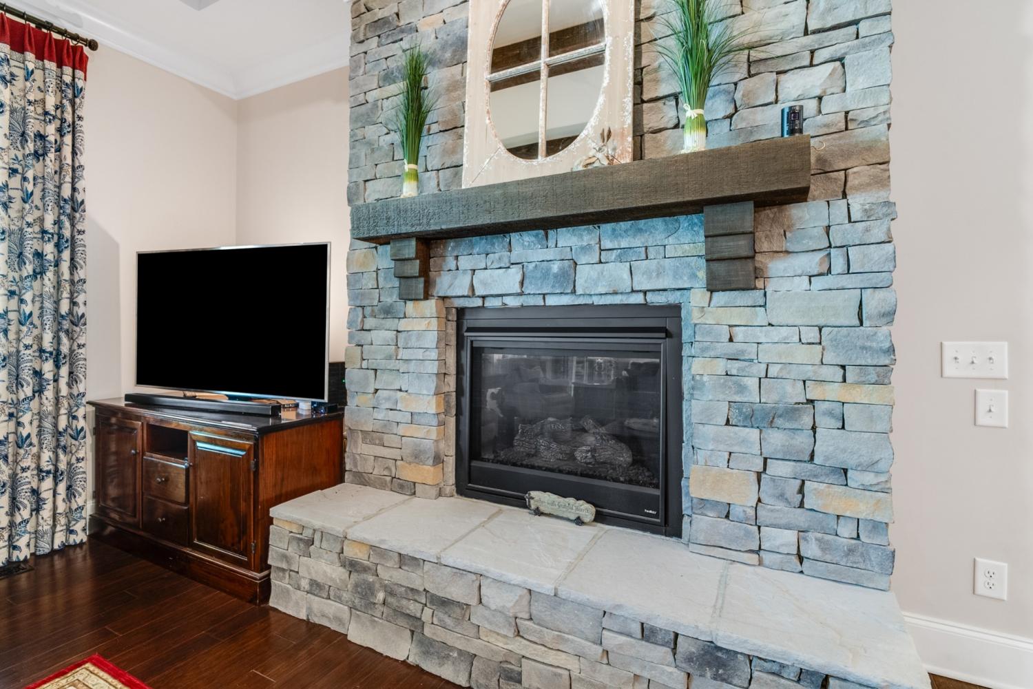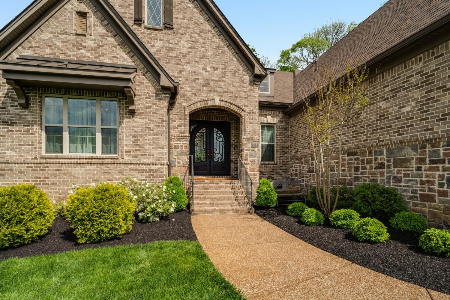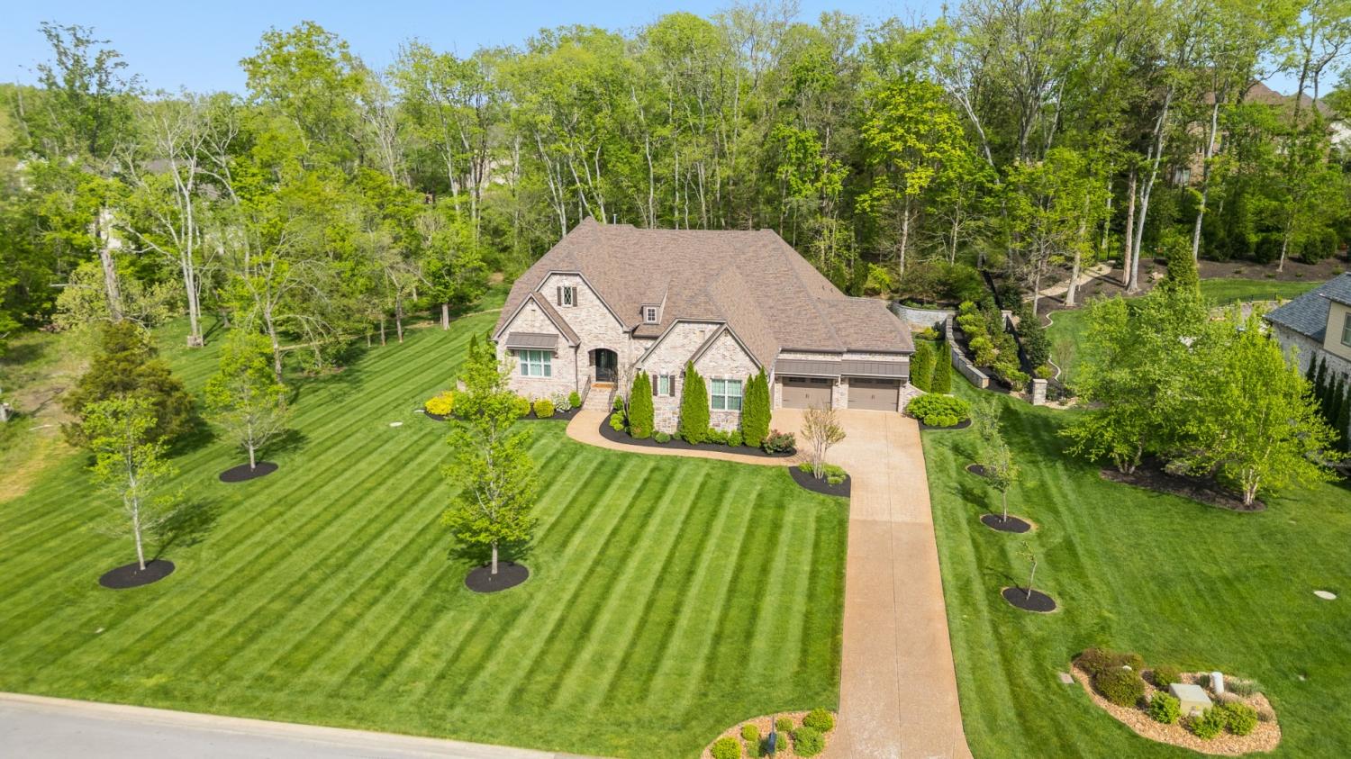 Exquisite estate in the gated community of Kings’ Chapel in Arrington, TN! Set on a premium cul-de-sac lot three times the size of a standard homesite, this 1.22-acre property was originally reserved by the developer for their personal residence—making it one of the most coveted lots in the community. Backing to a wooded area for maximum privacy, the professionally landscaped grounds combine luxury and serenity just minutes from Arrington Vineyards. Inside, the bright open floor plan showcases 10’ ceilings, 8’ doors, a dramatic stacked-stone fireplace with wood-beamed ceilings, and a chef’s kitchen with custom cabinetry, large island, and stainless appliances. The main level features two primary suites plus a private guest suite, a dedicated home office, and a formal dining room—ideal for both family living and entertaining. Outdoor living is elevated with an expansive covered porch complete with motorized screens, an inviting fireplace, and ample dining space overlooking the private backyard. Mature trees, a natural stone wall, and a tranquil rock fountain create a park-like setting rarely found in gated communities. Upstairs offers a versatile bonus room with wet bar and an additional bedroom suite, perfect for guests, hobbies, or recreation. A brand-new roof adds lasting value and peace of mind. Nestled on a quiet dead-end cul-de-sac street in one of Middle Tennessee’s most desirable gated neighborhoods, this rare property blends elegance, privacy, and comfort in an unmatched location.