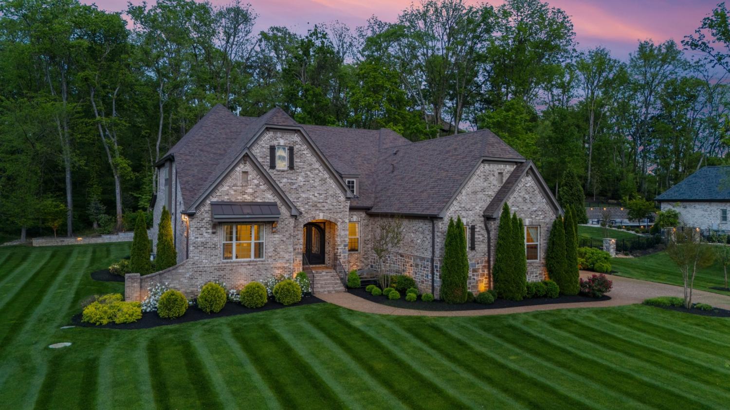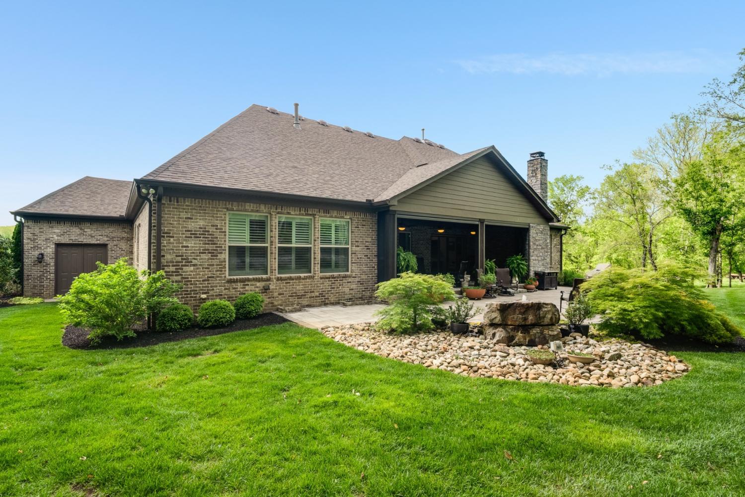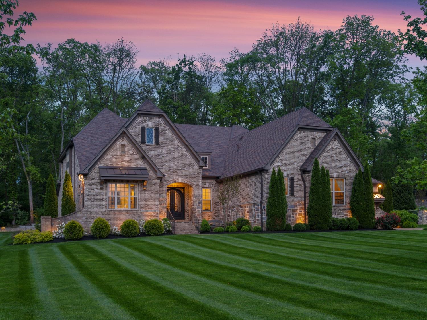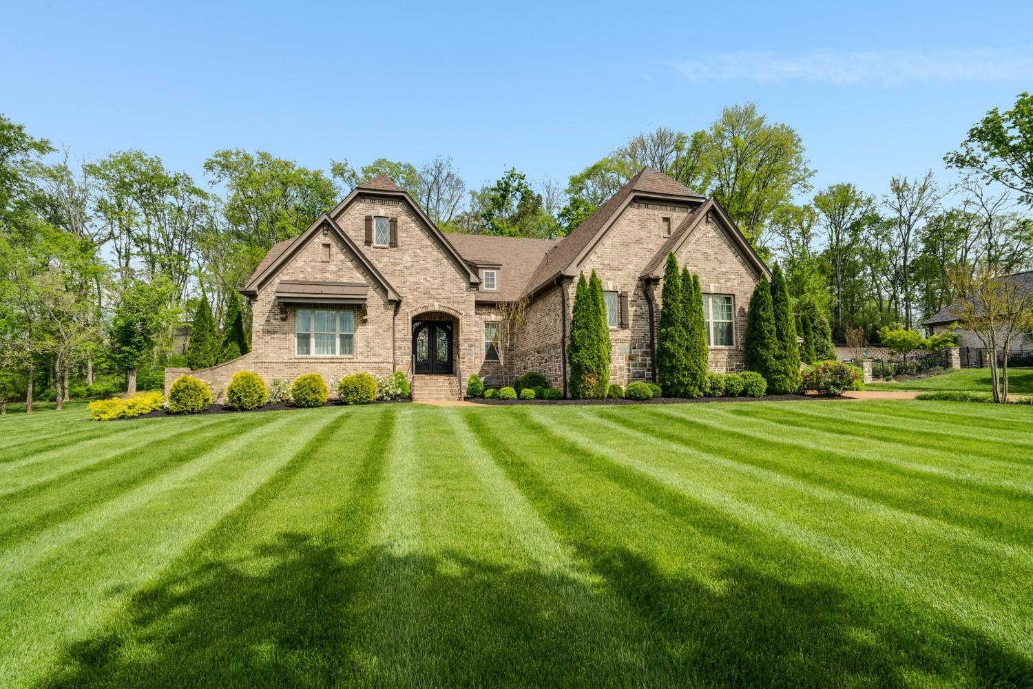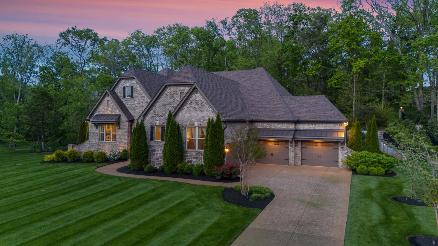 Exquisite estate in the gated community of Kings’ Chapel in Arrington, TN! Set on a premium cul-de-sac lot three times the size of a standard homesite, this 1.22-acre property was originally reserved by the developer for their personal residence—making it one of the most coveted lots in the community. Backing to a wooded area for maximum privacy, the professionally landscaped grounds combine luxury and serenity just minutes from Arrington Vineyards. Inside, the bright open floor plan showcases 10’ ceilings, 8’ doors, a dramatic stacked-stone fireplace with wood-beamed ceilings, and a chef’s kitchen with custom cabinetry, large island, and stainless appliances. The main level features two primary suites plus a private guest suite, a dedicated home office, and a formal dining room—ideal for both family living and entertaining. Outdoor living is elevated with an expansive covered porch complete with motorized screens, an inviting fireplace, and ample dining space overlooking the private backyard. Mature trees, a natural stone wall, and a tranquil rock fountain create a park-like setting rarely found in gated communities. Upstairs offers a versatile bonus room with wet bar and an additional bedroom suite, perfect for guests, hobbies, or recreation. A brand-new roof adds lasting value and peace of mind. Nestled on a quiet dead-end cul-de-sac street in one of Middle Tennessee’s most desirable gated neighborhoods, this rare property blends elegance, privacy, and comfort in an unmatched location.