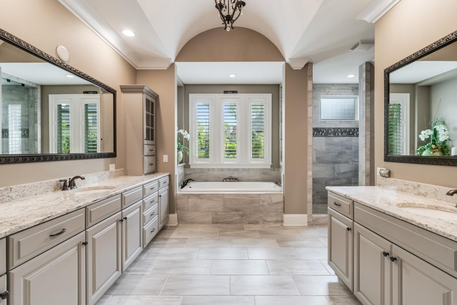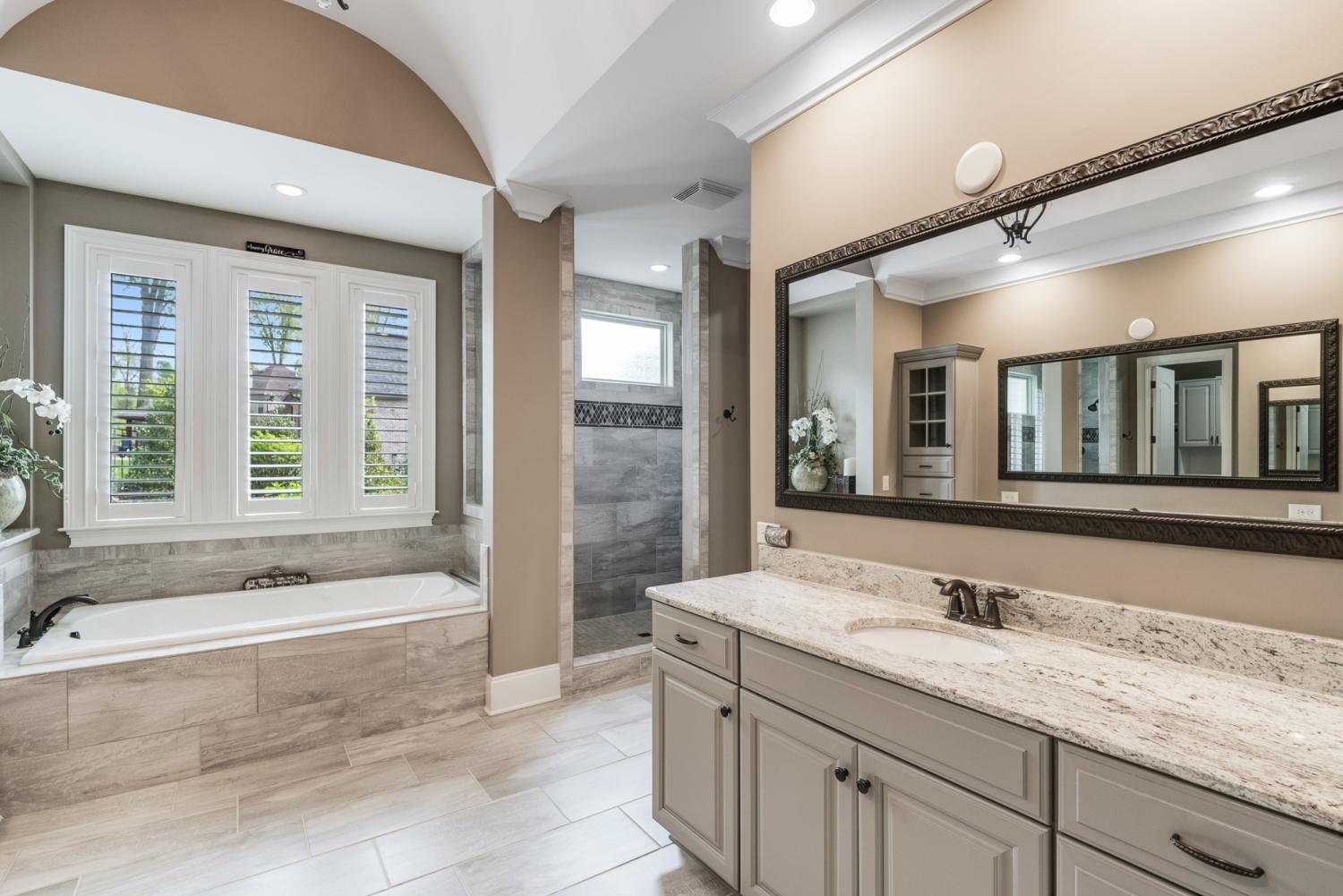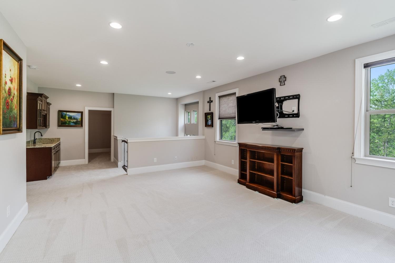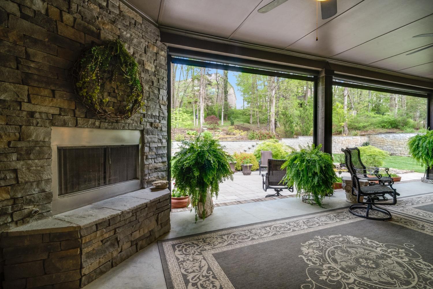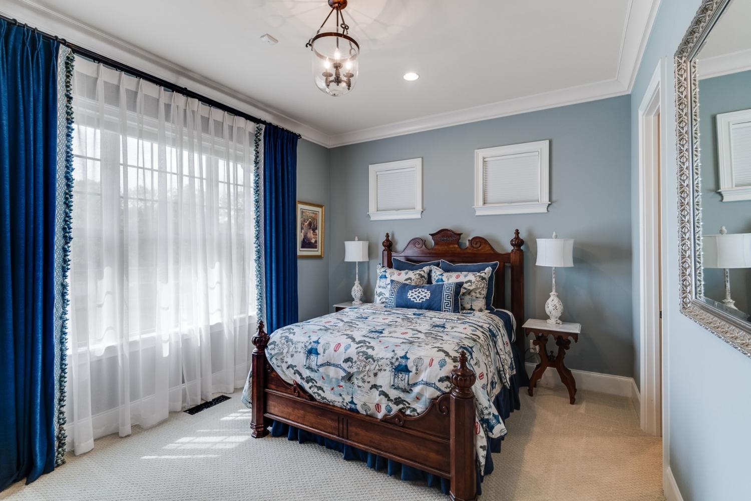 Exquisite estate in the gated community of Kings’ Chapel in Arrington, TN! Set on a premium cul-de-sac lot three times the size of a standard homesite, this 1.22-acre property was originally reserved by the developer for their personal residence—making it one of the most coveted lots in the community. Backing to a wooded area for maximum privacy, the professionally landscaped grounds combine luxury and serenity just minutes from Arrington Vineyards. Inside, the bright open floor plan showcases 10’ ceilings, 8’ doors, a dramatic stacked-stone fireplace with wood-beamed ceilings, and a chef’s kitchen with custom cabinetry, large island, and stainless appliances. The main level features two primary suites plus a private guest suite, a dedicated home office, and a formal dining room—ideal for both family living and entertaining. Outdoor living is elevated with an expansive covered porch complete with motorized screens, an inviting fireplace, and ample dining space overlooking the private backyard. Mature trees, a natural stone wall, and a tranquil rock fountain create a park-like setting rarely found in gated communities. Upstairs offers a versatile bonus room with wet bar and an additional bedroom suite, perfect for guests, hobbies, or recreation. A brand-new roof adds lasting value and peace of mind. Nestled on a quiet dead-end cul-de-sac street in one of Middle Tennessee’s most desirable gated neighborhoods, this rare property blends elegance, privacy, and comfort in an unmatched location.