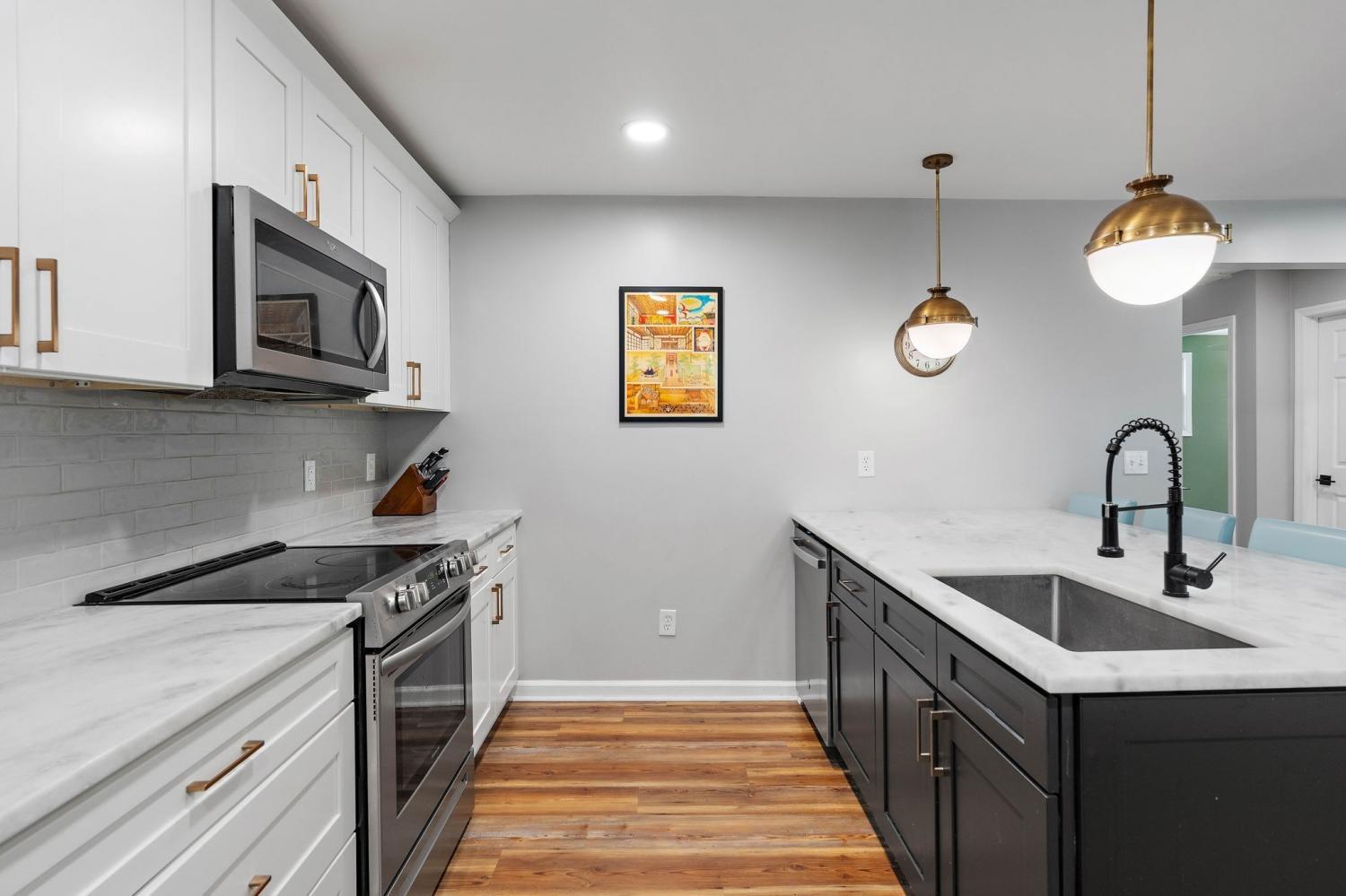Located on a lush corner lot where the love of the outdoors and immediate proximity to downtown Nashville collide! Home is centrally located minutes from the future Oracle Headquarters, Downtown Nashville, East Nashville AND Germantown all while still experiencing a residential neighborhood feel - truly the best of both worlds! This home was renovated in 2022 with a new kitchen, new bathrooms, new roof and new flooring! Sellers have installed a new HVAC, flooring throughout the entire upstairs, new dishwasher, added light dimmers + two smart thermostats. Home has also been pressure-washed and received new landscaping. Upstairs offers spacious Kitchen, three bedrooms, two bathrooms and cozy Living Room. Downstairs basement features a full bathroom and separate exterior access. Perfect for roommates or multi-generational living. Bounty Club, an 18-hole golf course on 460-acres is scheduled to debut this summer nearby. Fontanel offers hiking trails, rolling hills, amphitheater, restaurant, inn and zip lines! Home is also available for lease - please inquire with listing agent! Ready for more great news?! 1725 A Roger Avenue qualifies for "Opportunity Zone" financing - reach out for more information today!