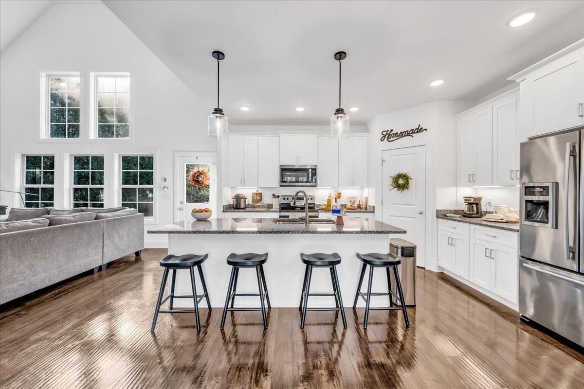 Welcome to this Stunning All-Brick 4 Br/3 Bath home with over 2600 Sq Ft of thoughtfully designed living space. Situated on a large tree-lined lot for Privacy, especially in the backyard. Welcoming you inside is an Open Floor Plan with large Living Room featuring high ceiling and beautiful wood floors. The Heart of the Home is the Kitchen and boasts an oversize Kitchen Island and space for a Gathering Table. 2 Bedrooms and 2 Full Baths are Downstairs. One of those is the spacious Owner's Suite with Walk-In Closet, Bath with Double Vanity, Tub, & Tile Shower. Upstairs are 2 Bedrooms and 1 Full Bath. A Versatile Bonus Room offers many options. Step out onto the Big Back Deck to enjoy a peaceful evening or a great space for entertaining. The deck overlooks a BIG backyard with space for gardening, entertaining, play area or great space for the family pets. Take a Look TODAY and you'll fall in Love!