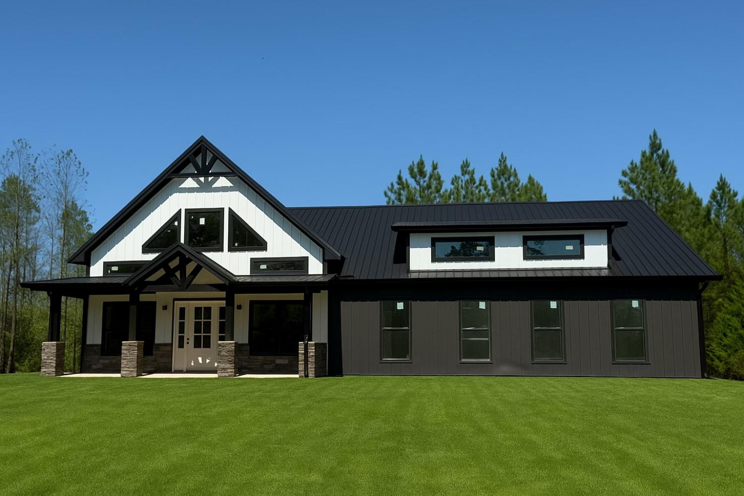 NEW CONSTRUCTION on 5 acres! Welcome to this stunning 2,400 sq. ft. modern farmhouse set on 5 serene acres. Featuring 4 spacious bedrooms and 2.5 bathrooms, this home offers comfort, style, and functionality. The open-concept floor plan showcases a vaulted wood ceiling, a large kitchen with granite countertops, a large hidden pantry, and abundant cabinet space—all flowing seamlessly into the living room. The living area features a floor-to-ceiling shiplap and stone fireplace, creating the perfect centerpiece for gatherings. Warm wood ceiling accents and durable laminate vinyl plank flooring add character and charm throughout. The primary suite provides a peaceful retreat, while three additional bedrooms are ideal for family, guests, or office space. A large laundry room adds convenience and extra storage. Enjoy the outdoors from your covered front and back porches, perfect for morning coffee, entertaining, or evening relaxation. With 5 acres, you’ll have ample room for gardening, recreation, or simply soaking in the quiet countryside. This home is the perfect blend of modern finishes and timeless comfort—ready to welcome its new owners!