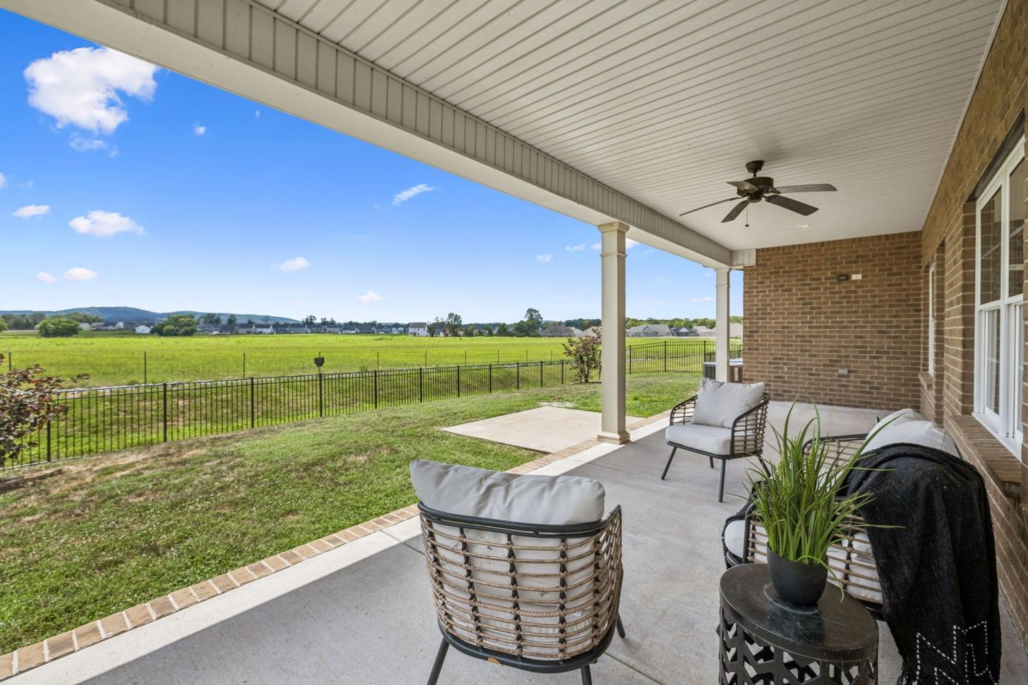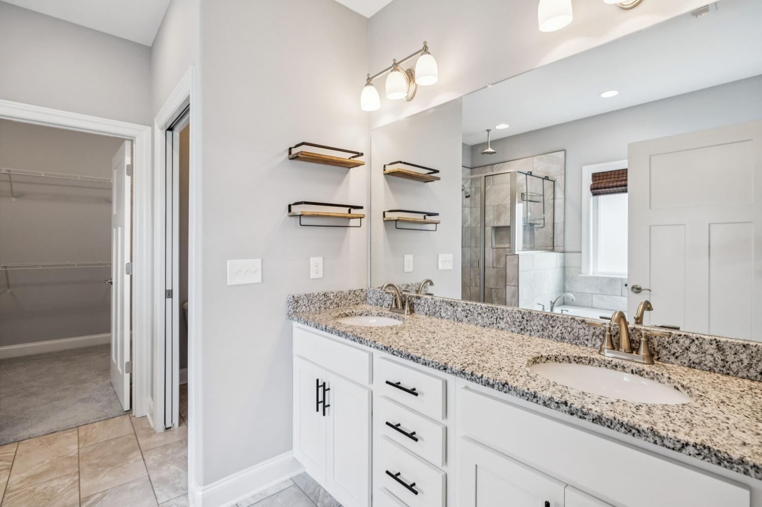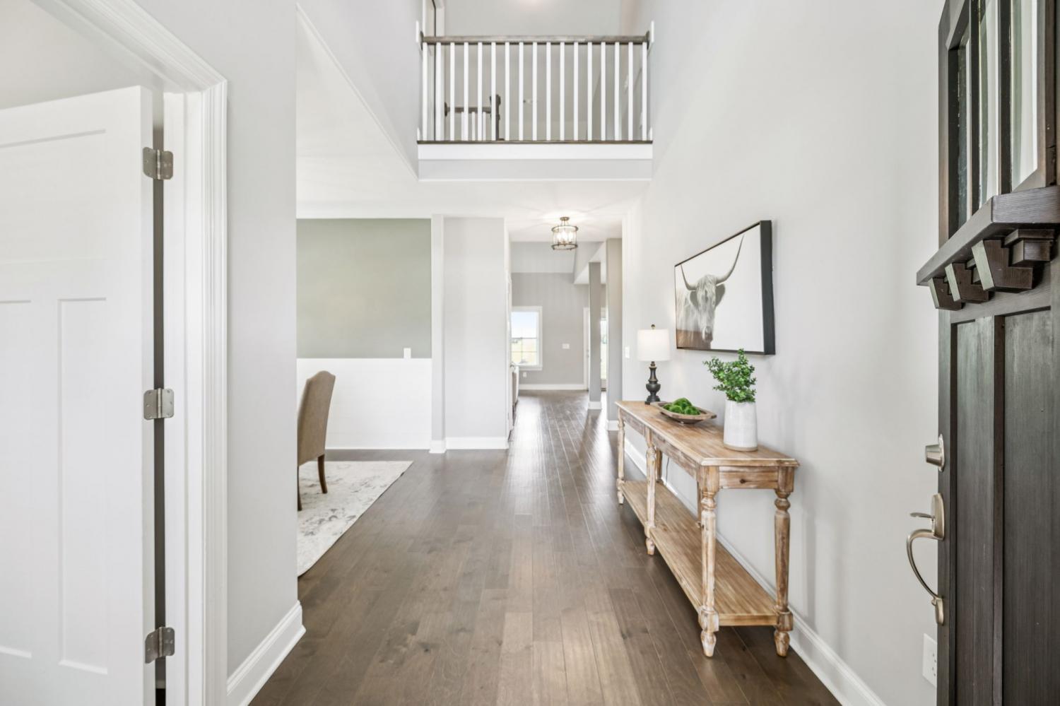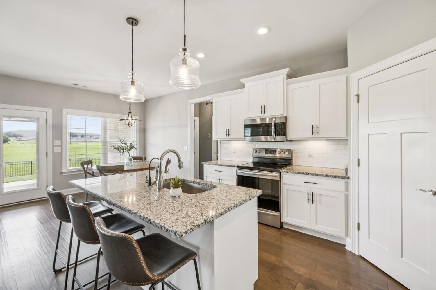 This beautifully designed 4-bedroom home offers a spacious layout and high-end finishes throughout. Primary bedroom and Owner's Suite on the main level. The chef’s kitchen features a large island, premium appliances, and flows seamlessly into the living area with gorgeous floors and a charming indoor brick gas fireplace. Upstairs, enjoy a generous bonus room and two oversized walk-in attics—ideal for storage or future expansion into a 5th bedroom, home office, or media room and home is complete with a full house water filtration system. Relax on the covered back patio with unobstructed sunset views over land that will never be developed. The extra deep three-car garage and location in a quiet, sought-after neighborhood with a playground make this home truly special.