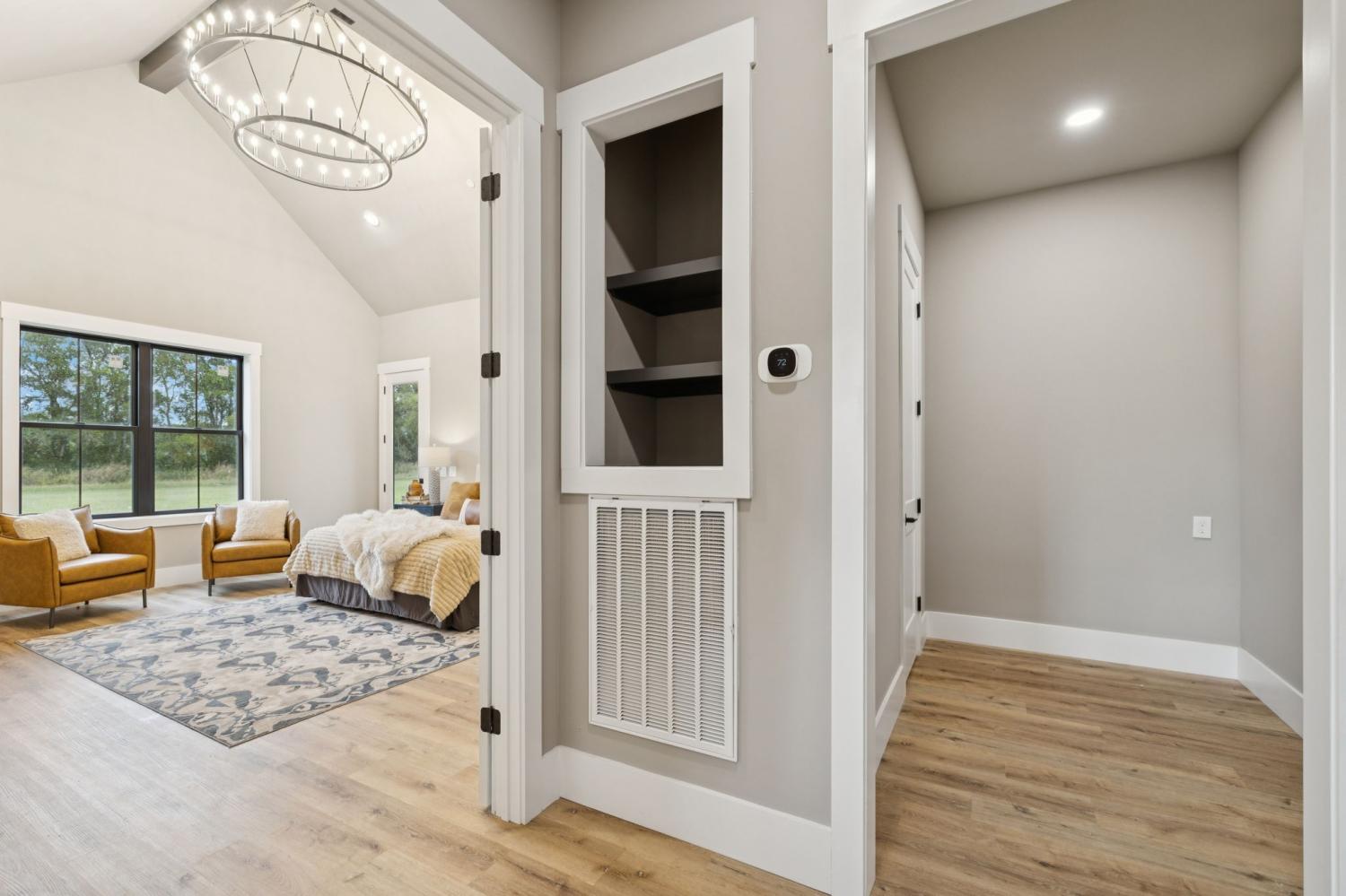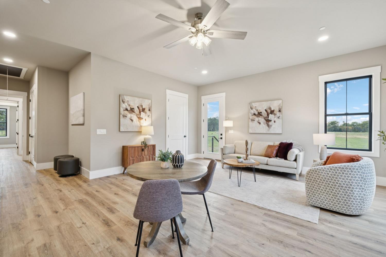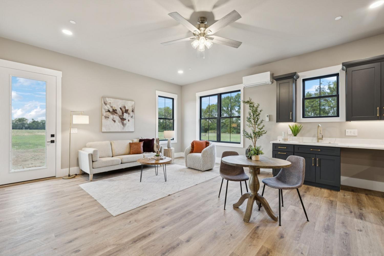 Better than new! This custom-built, single-story estate offers over five acres of flat, usable land in the heart of Eagleville. Designed with luxury, comfort, and functionality in mind, this home truly has it all. Featuring 4 spacious bedrooms, 5.5 baths, an in-law suite and multiple living spaces where every detail has been thoughtfully planned. The chef’s kitchen is a showstopper with a hidden pantry (with Costco door from garage and space for an additional fridge and oven), Kucht gas range, quartz countertops, quart backsplash, cabinetry to the ceiling, pot filler, and wired for speakers extending to the back patio for entertaining. Enjoy space in your laundry for two sets of washer and dryers, including stackable access in the primary closet, two private offices (one with custom built-ins and French doors), and a media/movie room with a convenient pass-through window to the outdoor patio. Relax in style with three gas fireplaces, vaulted ceilings in the great room and primary bedroom, and a wet room in the in-law suite. Quality is evident throughout with full spray foam insulation, whole-home water filtration, and two tankless water heaters. Unwind outdoors on the massive covered back deck, wired and plumbed for an outdoor kitchen. The oversized three-car garage provides plenty of storage for vehicles and hobbies alike. Additional highlights include air-jetted tubs, extra storage throughout, and beautifully designed spaces that balance elegance and practicality. This home blends modern construction quality with timeless design, offering the best of both worlds in a peaceful country setting just minutes from conveniences.