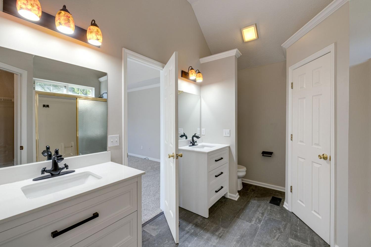 Move-in ready! This home has just been freshly painted throughout, new carpets, new tile, new bathroom vanities, painted kitchen cabinets, new SS appliances, and a newly refinished wooden deck. All the siding was replaced in 2023. Fenced backyard. Filtered water in the kitchen. Huge bonus room upstairs (could be used as a 4th bedroom!) Fabulous gas fireplace in the family room. There are two storage sheds outside that the seller never used.
