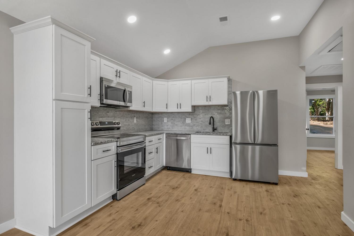 Totally remodeled from top to bottom!! NEW roof, electric, plumbing, drywall, windows, flooring, lighting, cabinets, SS appliances, HVAC & water heater, sitting on a beautiful sodded PRIVATE TREELINED lot. You are getting a practically new home for way less than a new construction home!! Great outdoor living space on the COVERED front porch and NEW sun deck. Plenty of space to park on the extended CONCRETE driveway. High 10" VAULTED ceilings in the main living space, beautiful LPV floors throughout ( NO Carpet ), GRANITE counters in kitchen and bathroom, MARBLE tile backsplash in the kitchen. HURRY this Gem will not last long!!