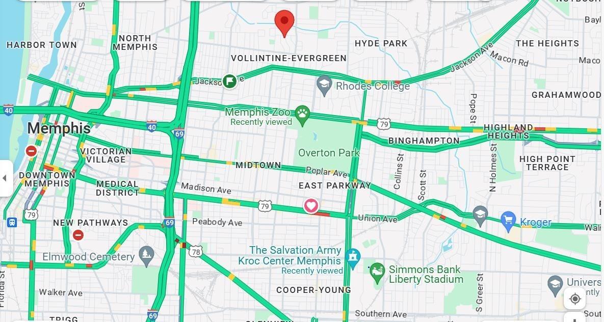 Agents can reach 1049 N Idlewild St in Memphis by taking Poplar Ave to N McLean Blvd, turning onto Jackson Ave, and then onto N Idlewild St.