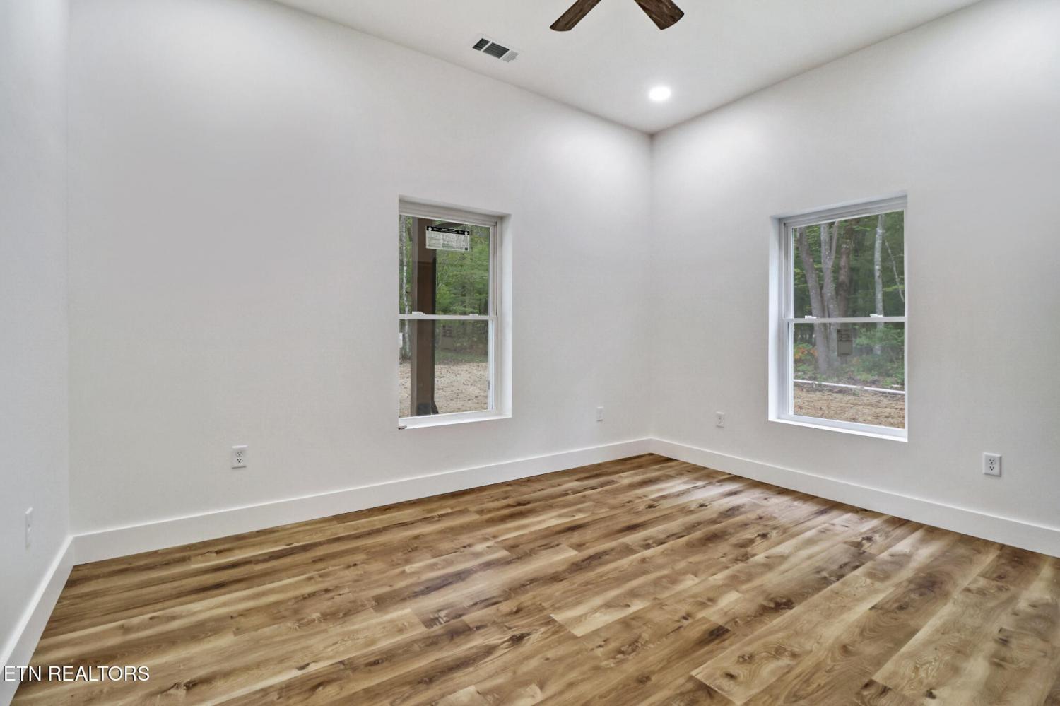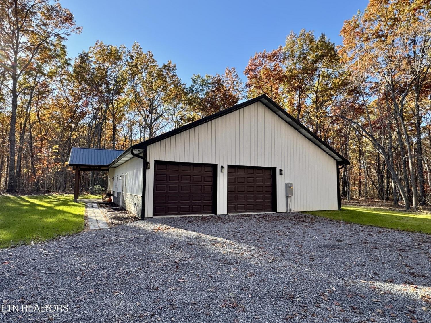 From Knoxville (westbound on I-40): Take Exit 311 (Plateau Rd), turn left on Plateau Rd ~1 mi to US-70N and turn right. Go ~1.8 mi to Mayland Loop (Mayland Market on the corner) and turn right, then an immediate sharp left. Take the next right onto Jim Garrett Rd and continue ~3.6 mi to Cumberland Lakes Dr (stone entrance). Turn right and follow ~1.25 mi to the property.
