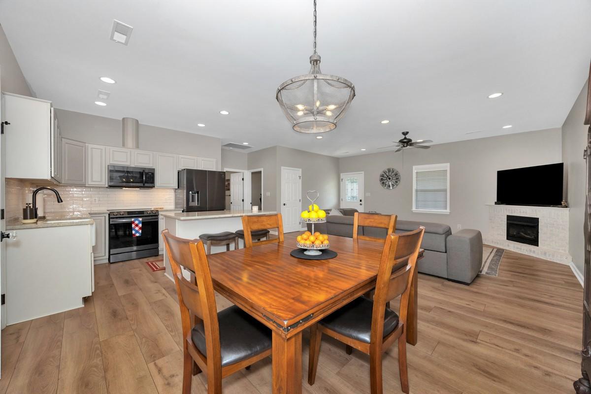 Beautiful 1526sf 3BR/2BA vinyl home on +/- 3.85 acre mini-farm in Ardmore. LVP flooring and 2" blinds throughout. Open floorplan for the living, dining, and kitchen allow plenty of space for entertaining family & friends. Gas log fireplace in the living room. Glamour bath attached to primary bedroom has separate garden tub and shower. Two other bedrooms share a full bath with a tub/shower combo. Laundry room has tile flooring and large organization cabinets. Horse barn has power, automatic lights, two stalls and a tack room. Pasture is fenced for horses and has a horse run with a garage door. Chain link fence dog run. Storm shelter in attached garage. Ardmore schools with tuition.