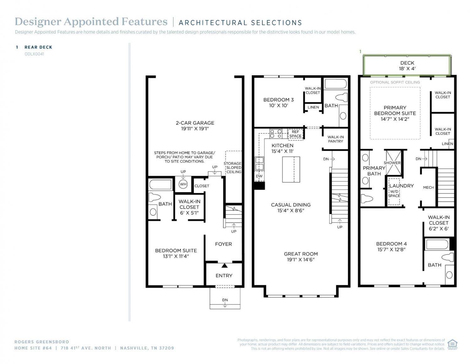 This four bedroom 4 bath Rogers floorplan is perfect for those looking for functionality and luxury living! Walk through the front foyer to the left you will find the first floor bedroom suite complete with floor to ceiling tiled shower. Down the hall find access to the two car garage and hall closet. The second floor holds the main living space that seamlessly connects kitchen, casual dining and great room. The L-shaped kitchen offers plenty of cabinet space while the center island adds additional seating with the breakfast bar. Behind the kitchen you will find the second floor bedroom and full bath. The primary suite on the top floor has it's own private balcony, dual walk-in closets, and private water closet. The third floor also holds an additional bedroom suite and laundry space. The Nations community offers easy access to Nashville's hot spots while also providing a community feel with amenities like a fire pit and dog park. Learn about all this community has to offer by contacting our on site sales consultant today! Ask about our offers and current incentives. *Photos are for representational purposes only and are of a similar floor plan with differing finishes. - See Designer Appointed Features Packet to know what is included in this home*