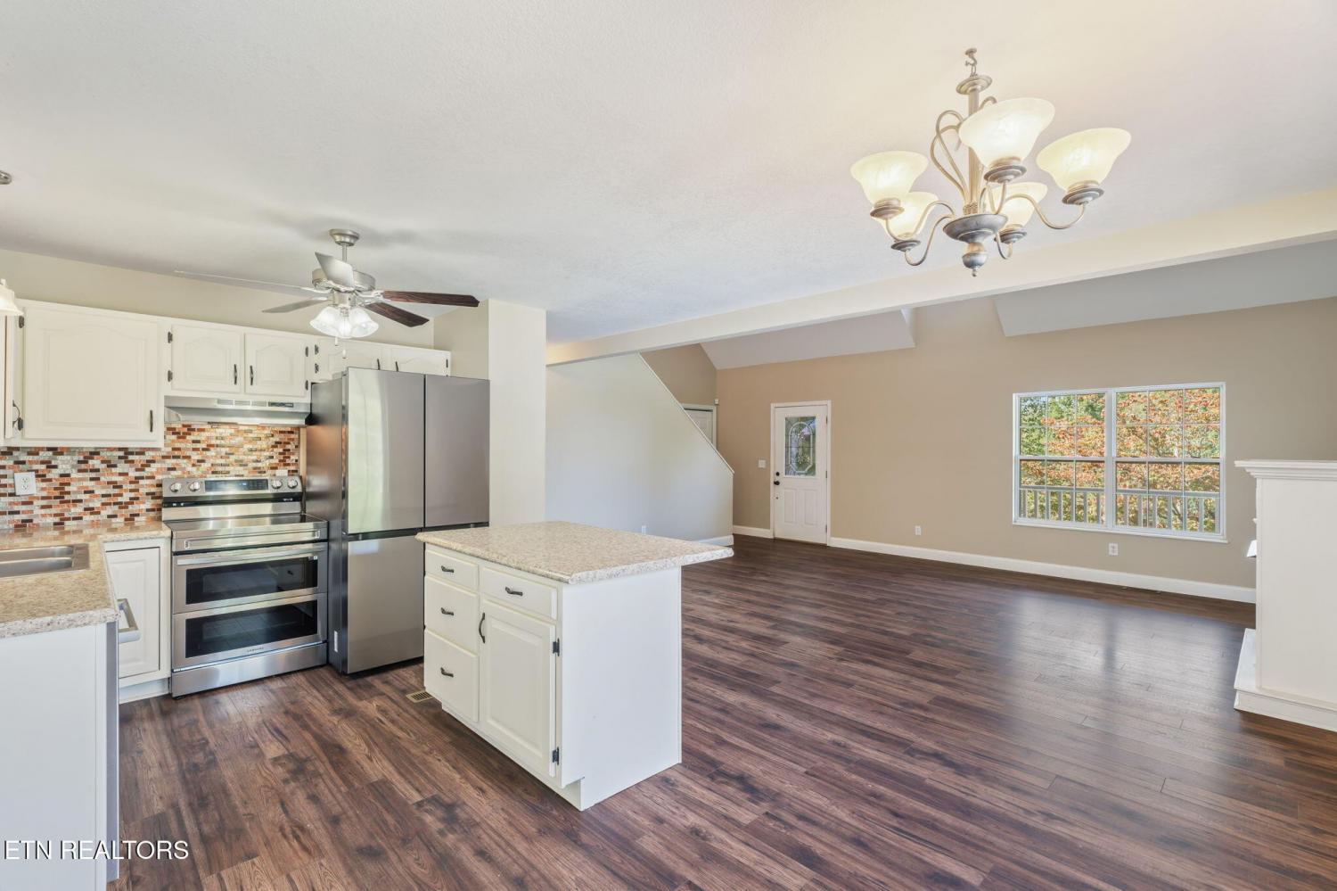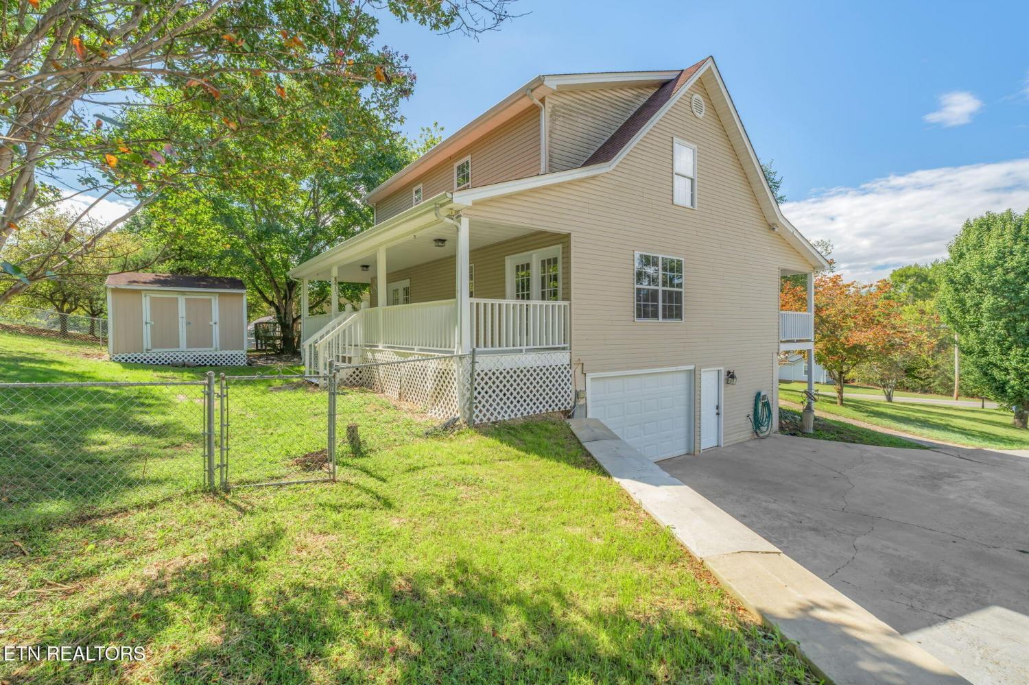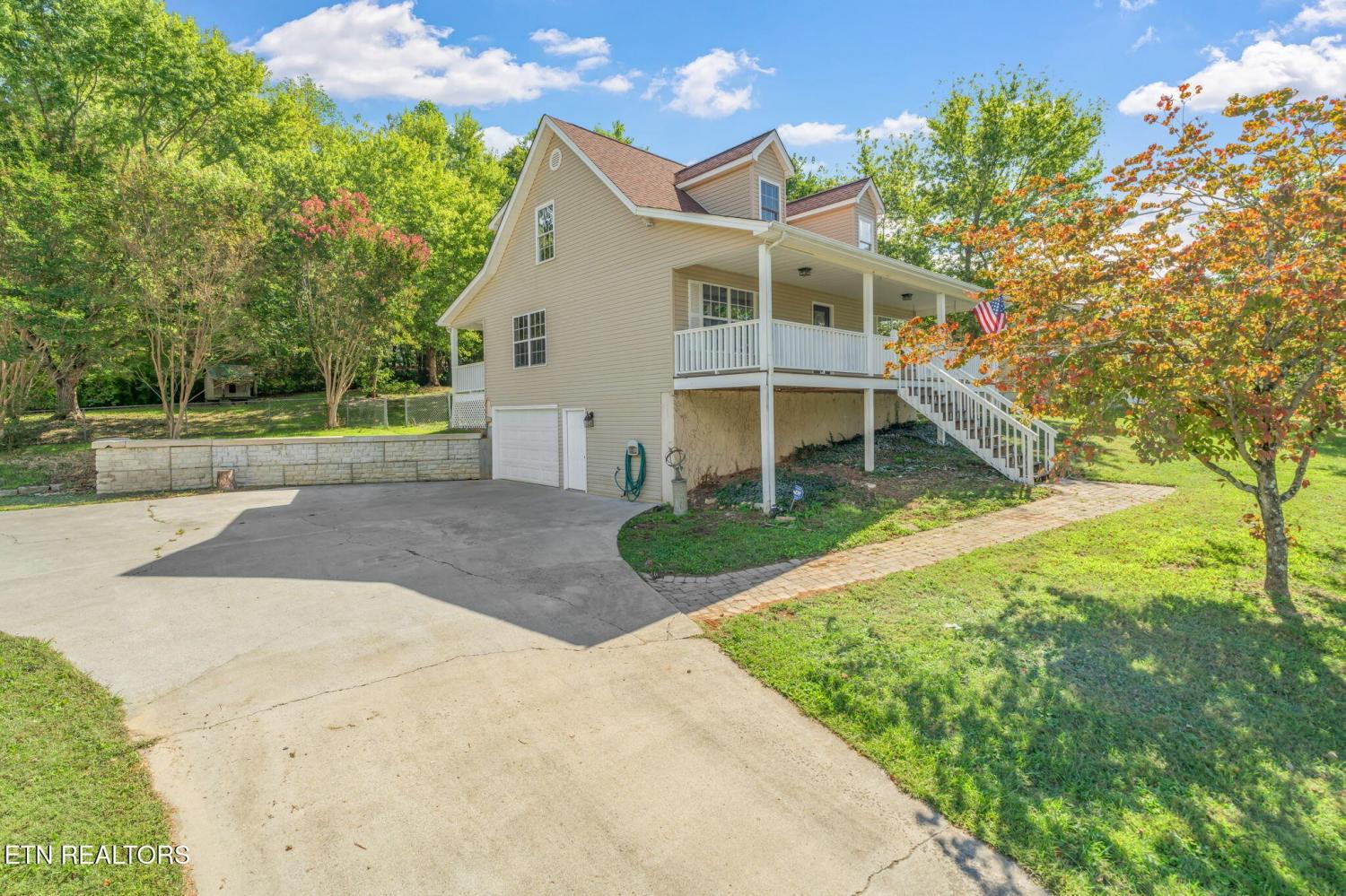 WELCOME TO THE COUNTRYSIDE! Enjoy the peacefulness of the large covered front porch and covered back deck. Desirable open floorplan with many recent updates: Main level HVAC replaced in 2018, upstairs replaced in 2022, new roof in 2022, new retaining wall in 2023, kitchen remodel in 2020 updated in 2025, new appliances in 2023, floors replaced in 2020 except in baths, light fixtures updated throughout, master bath, vanity and fixtures replaced 2025, gym floor added in basement in 2024, both porches painted 2025, fresh paint throughout. Features include open floor plan with gas fireplace and cathedral ceilings in living area, newer appliances convey in kitchen, island for extra space, master on the main which walks out to the covered deck, large yard, fenced in the back, side entry garage with extra room for cars, storage or expansion, nice work out area. Excellent location, country feel but minutes to shopping and amenities.
