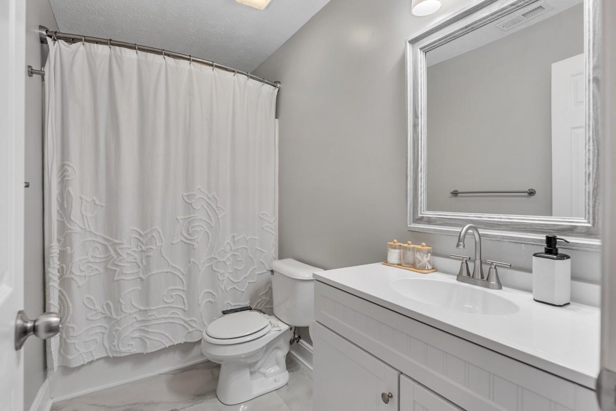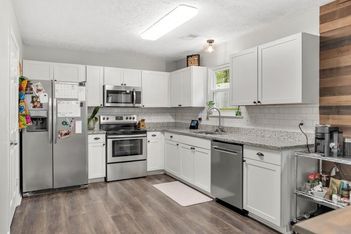 This move-in ready home offers a prime cul-de-sac location and a large, fully fenced .37-acre lot. All three bedrooms are located on the second level, each featuring its own walk-in closet. The home has been extensively updated, including completely renovated bathrooms with new tile flooring, vanities, and showers. Additional improvements include new windows, new hardwood stairs, new hardwood flooring and trim work in all bedrooms, and fresh trim paint throughout. The kitchen is equipped with new custom pantry shelving, and all stainless steel appliances remain, including the refrigerator in the garage. Lighting and ceiling fans have been replaced throughout the home, adding to its modern updates. The spacious yard provides room for outdoor enjoyment, while the private setting offers peace and quiet. This home combines top of the line renovations in a desirable location, with the largest lot and a privacy fenced backyard! It’s a true must see! Open House Saturday October 11th 2-4pm