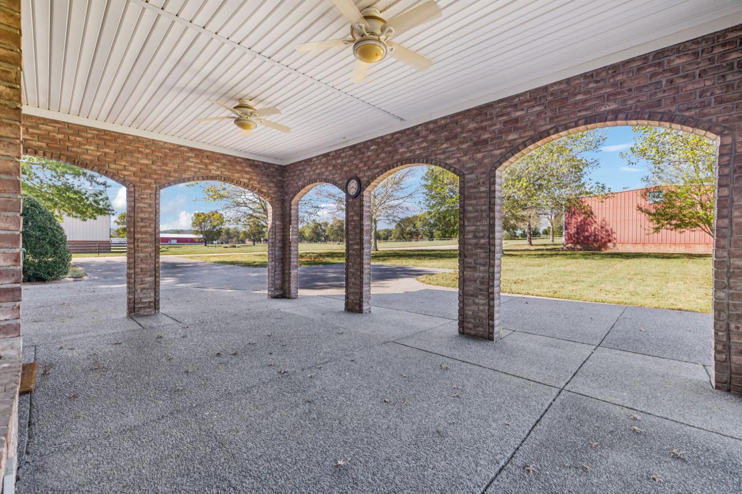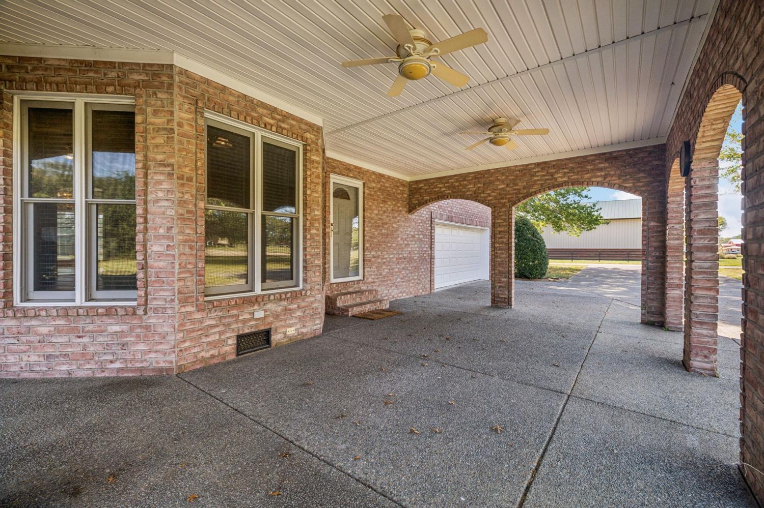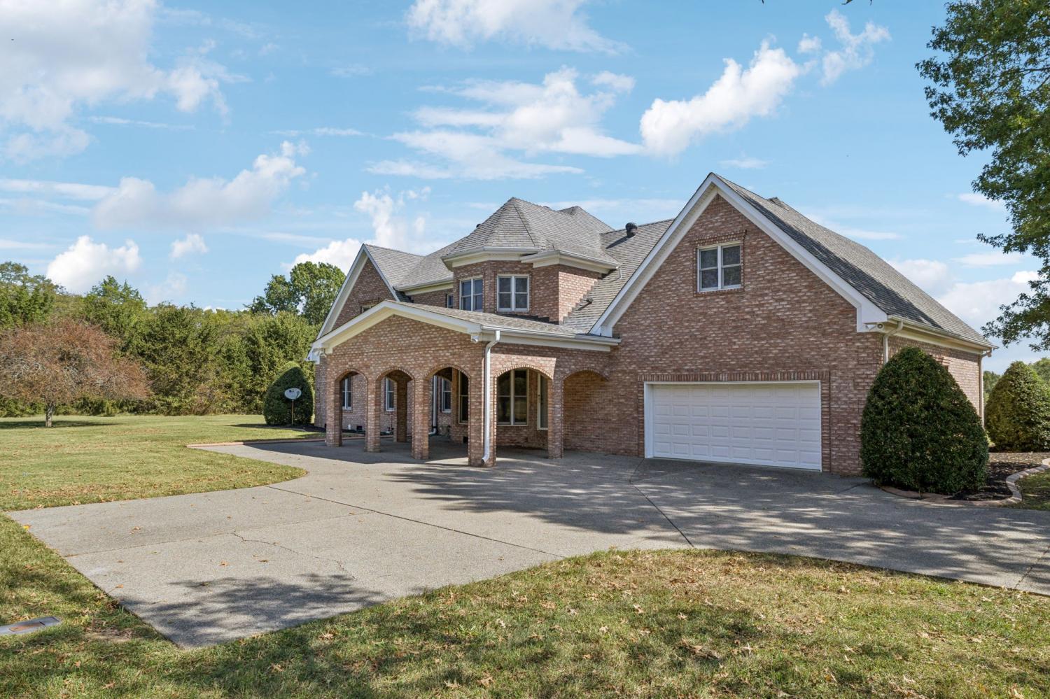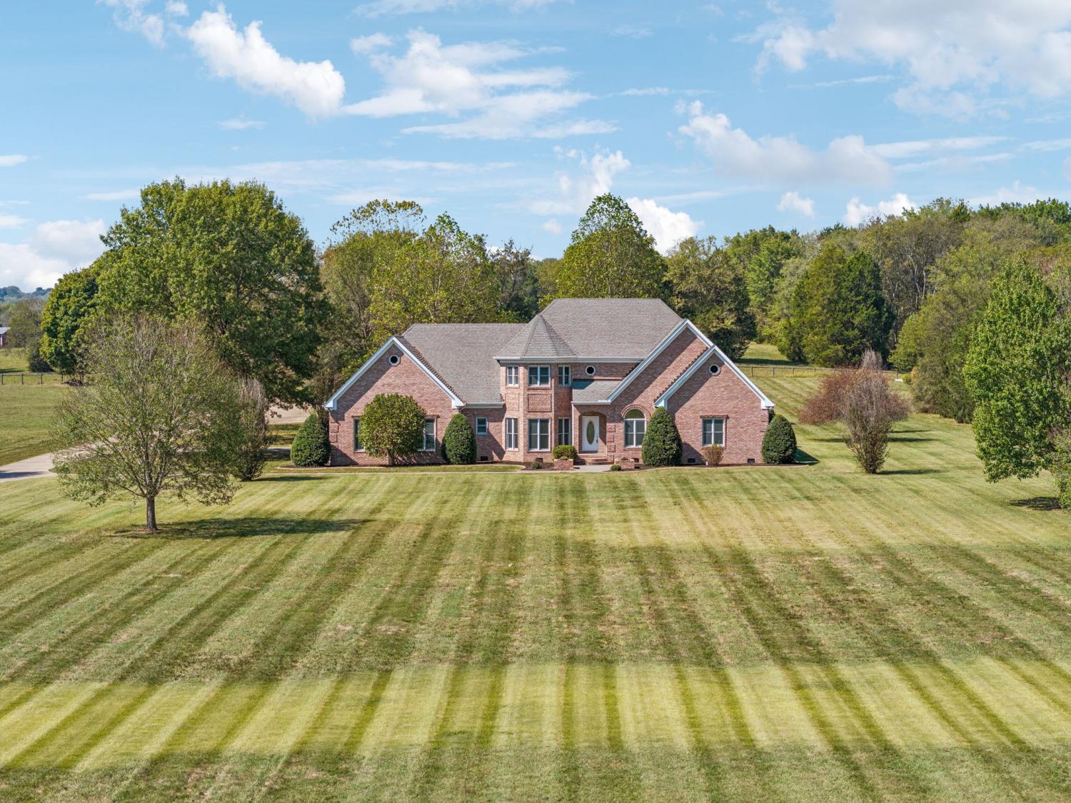 Stately Custom Brick Home on 5 Gorgeous Acres Tucked away on 5 level, usable acres—but just minutes from shopping and dining—this full brick, custom-built estate offers space, privacy, and endless flexibility. From the moment you arrive, the craftsmanship stands out, with rich finished wood floors, multiple living and working spaces, and two full laundry rooms to make everyday life a breeze. Inside, you'll find generously sized rooms to suit every need—whether it's entertaining, relaxing, or working from home. Walk-in storage is abundant throughout, and the layout offers endless possibilities for multigenerational living or creative customization. Every Room upstairs has a large closet attached. But the real showstopper? A massive 100' x 50' red steel building—engineered for durability and functionality. Complete with its own office (with HVAC), full bath with shower, one tractor-trailer bay, and two oversized garage bays, this is a dream setup for business owners, hobbyists, or anyone needing serious workshop space. Don’t miss the 12' x 50' rear lean-to, fully covered with concrete flooring—perfect for storing equipment, trailers, or additional gear. This one-of-a-kind property combines elegance, function, and freedom—with room to grow, create, and live the lifestyle you've been dreaming of.