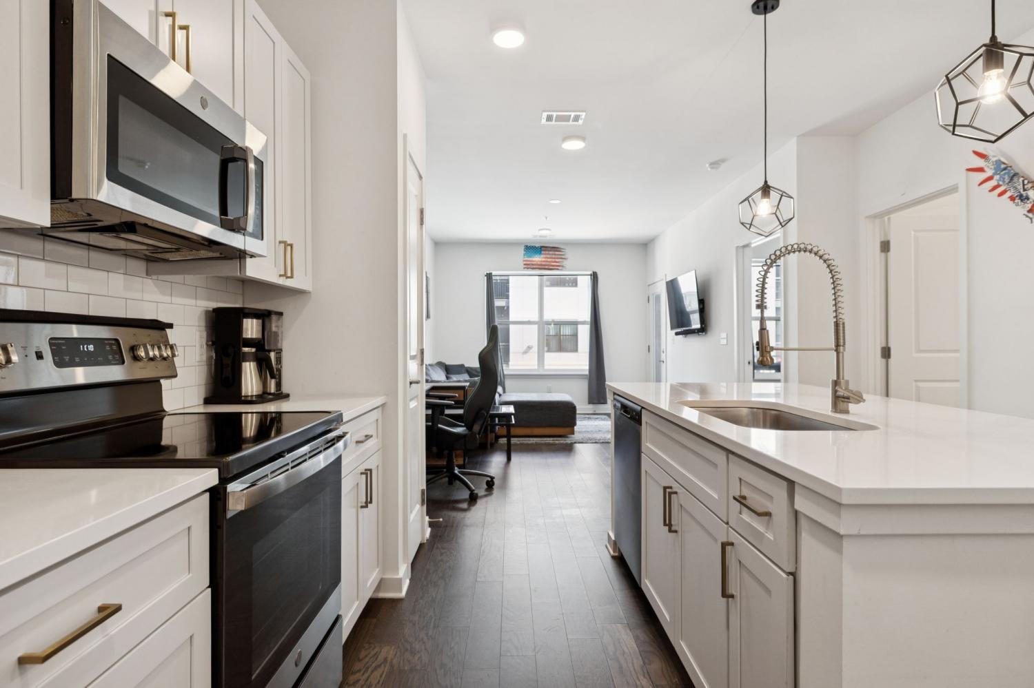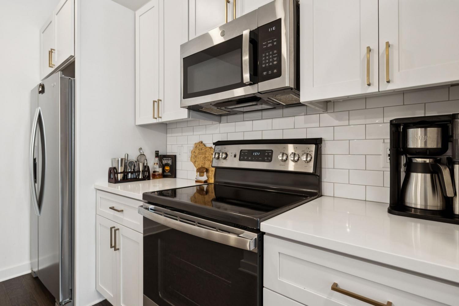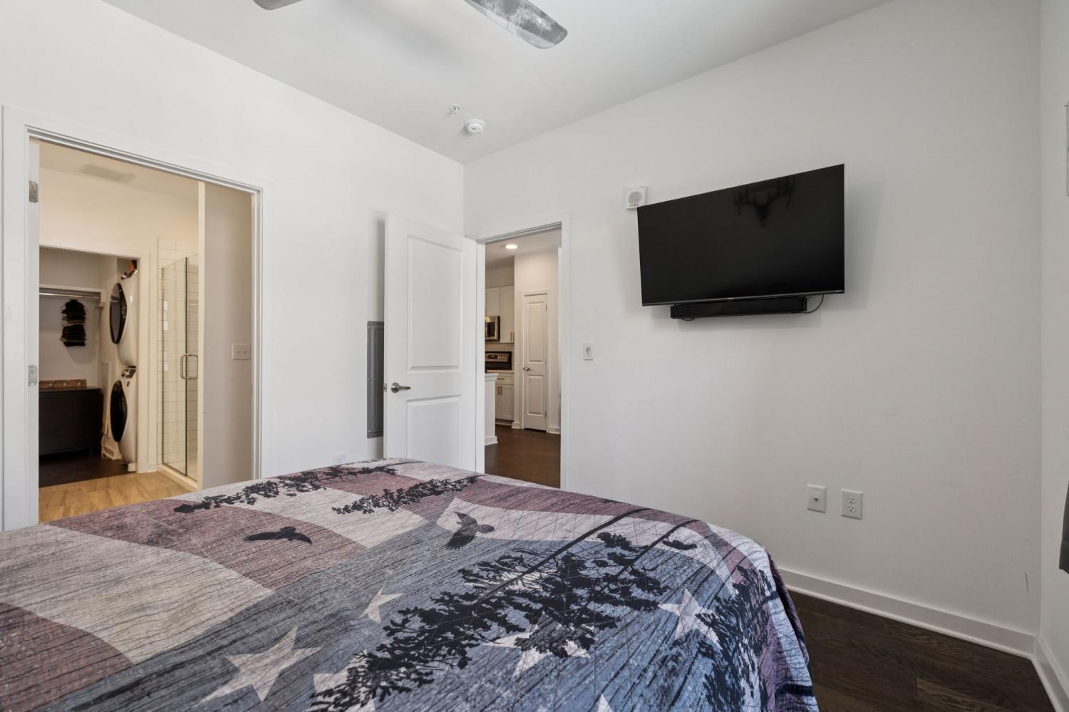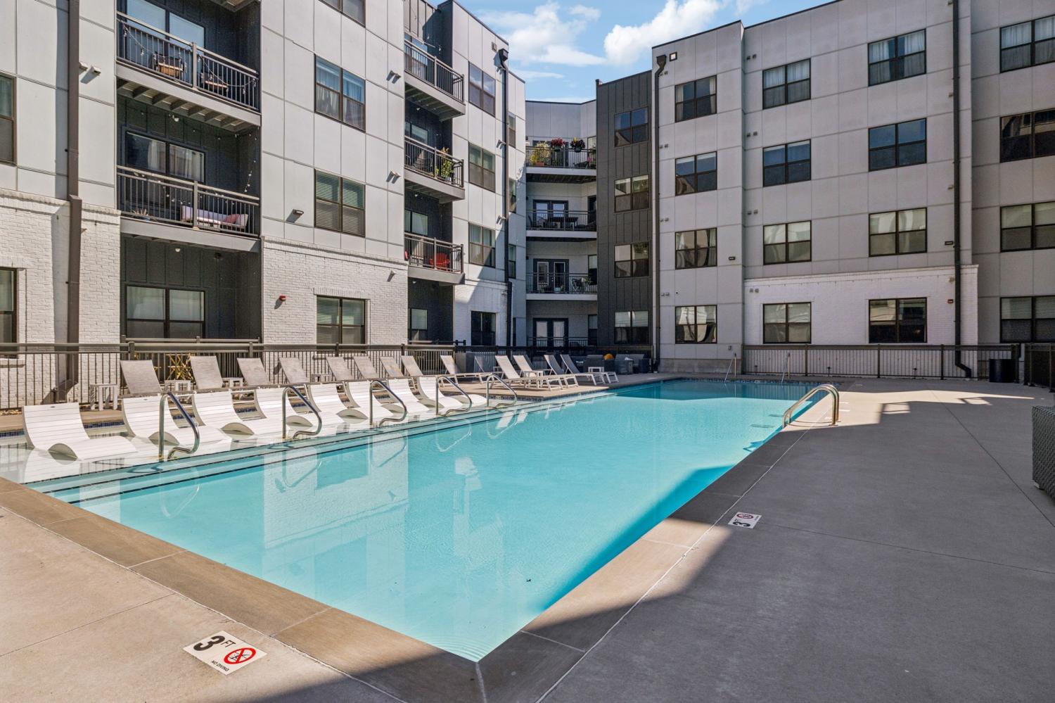 COMING SOON! Modern 1-bedroom condo in the desirable Silo West community at The Nations, offering a pool view with private balcony. The open layout features a modern kitchen with white shaker cabinets, quartz countertops, subway tile backsplash, and stainless steel appliances. The spa-like bath includes a dual vanity and walk-in shower, while a full-size washer/dryer is conveniently tucked away in the spacious walk-in closet. Enjoy finished wood and tile floors, designer lighting, and abundant natural light throughout. Includes one deeded parking spot. Community amenities include a resort-style pool, dog washing station, gas grills, clubhouse, fitness center, and sidewalks. HOA covers exterior and grounds maintenance, sewer, and trash. Just steps from popular dining, shopping, and entertainment in The Nations, and only minutes to downtown Nashville!
