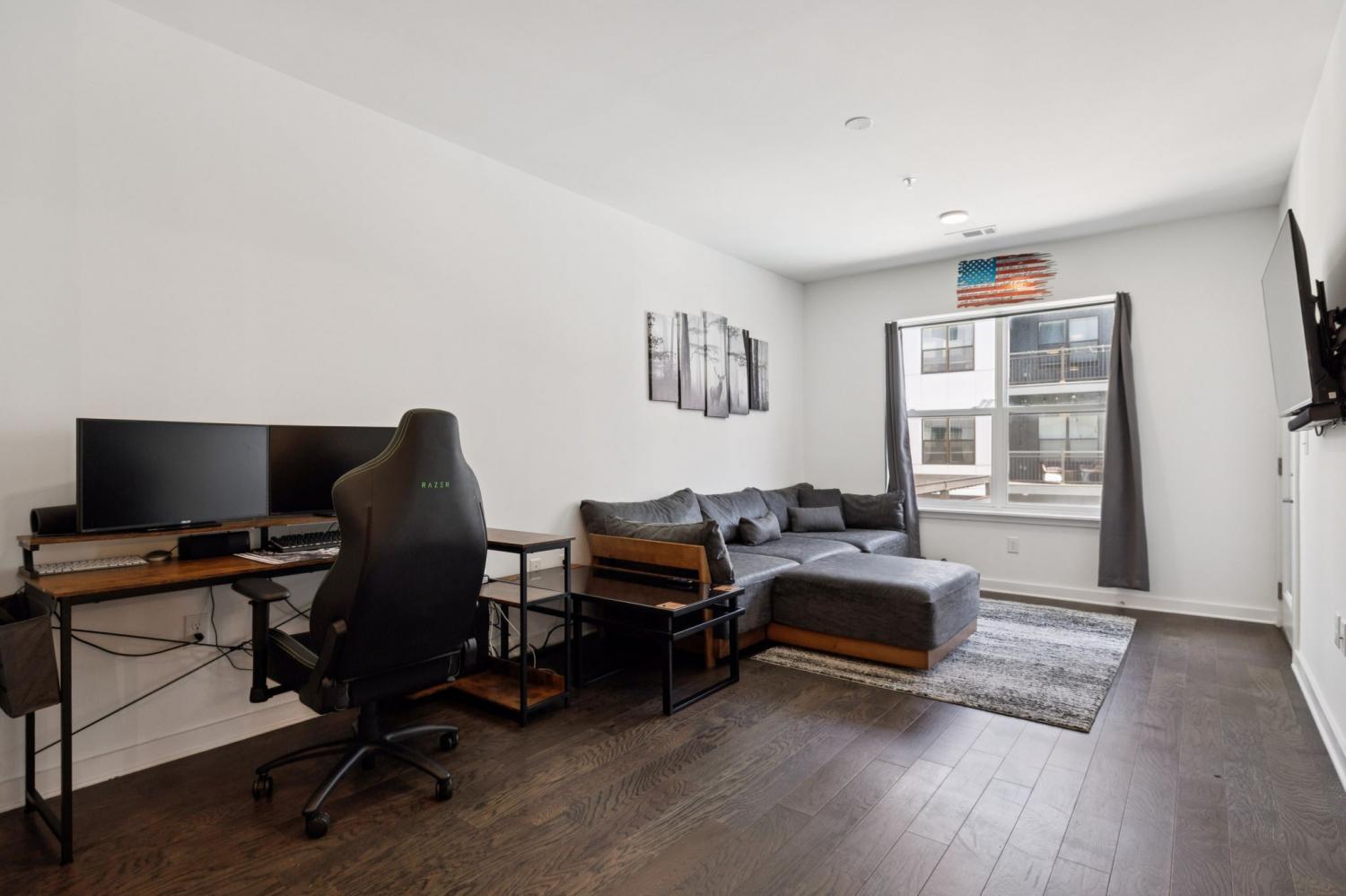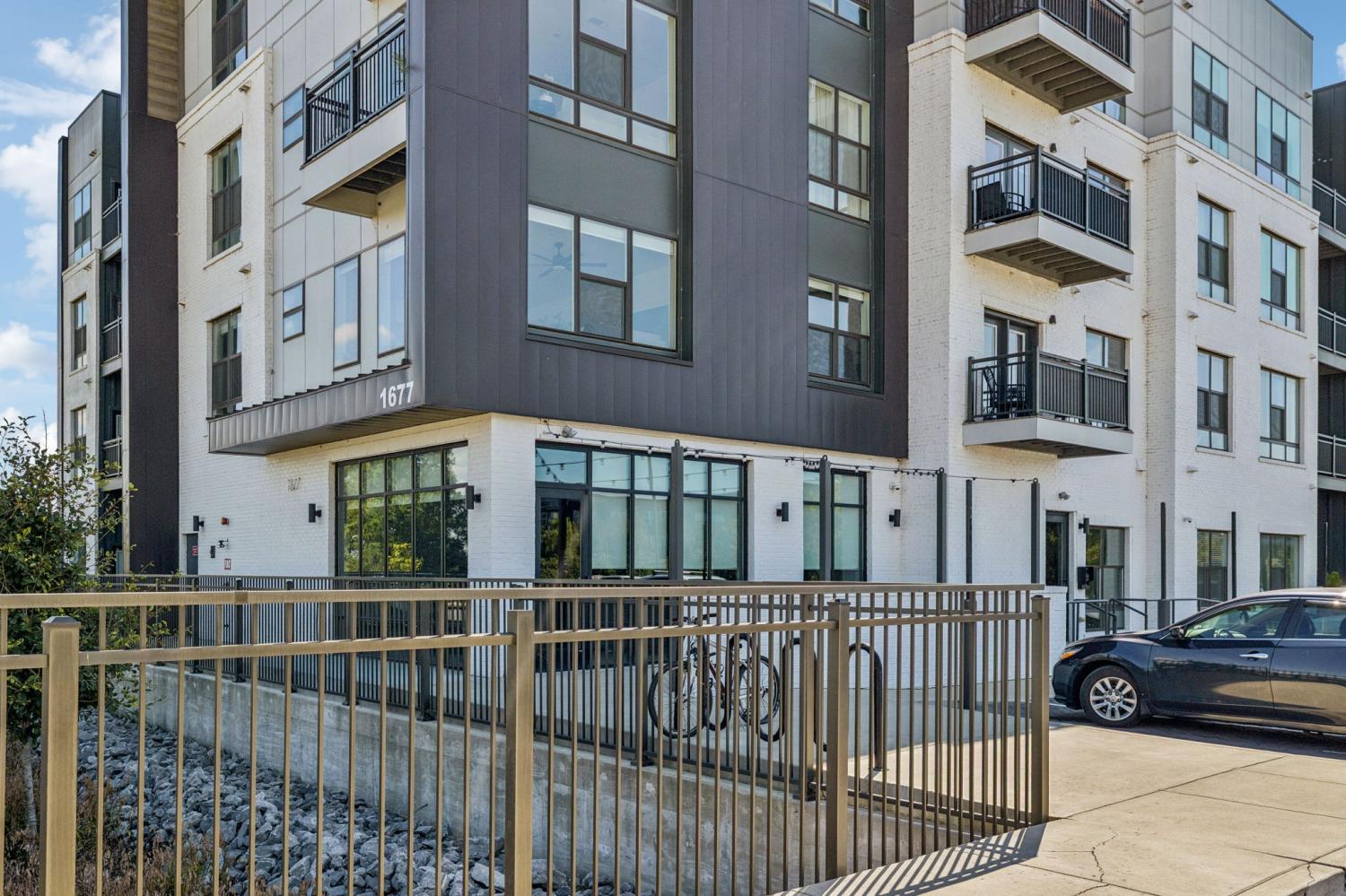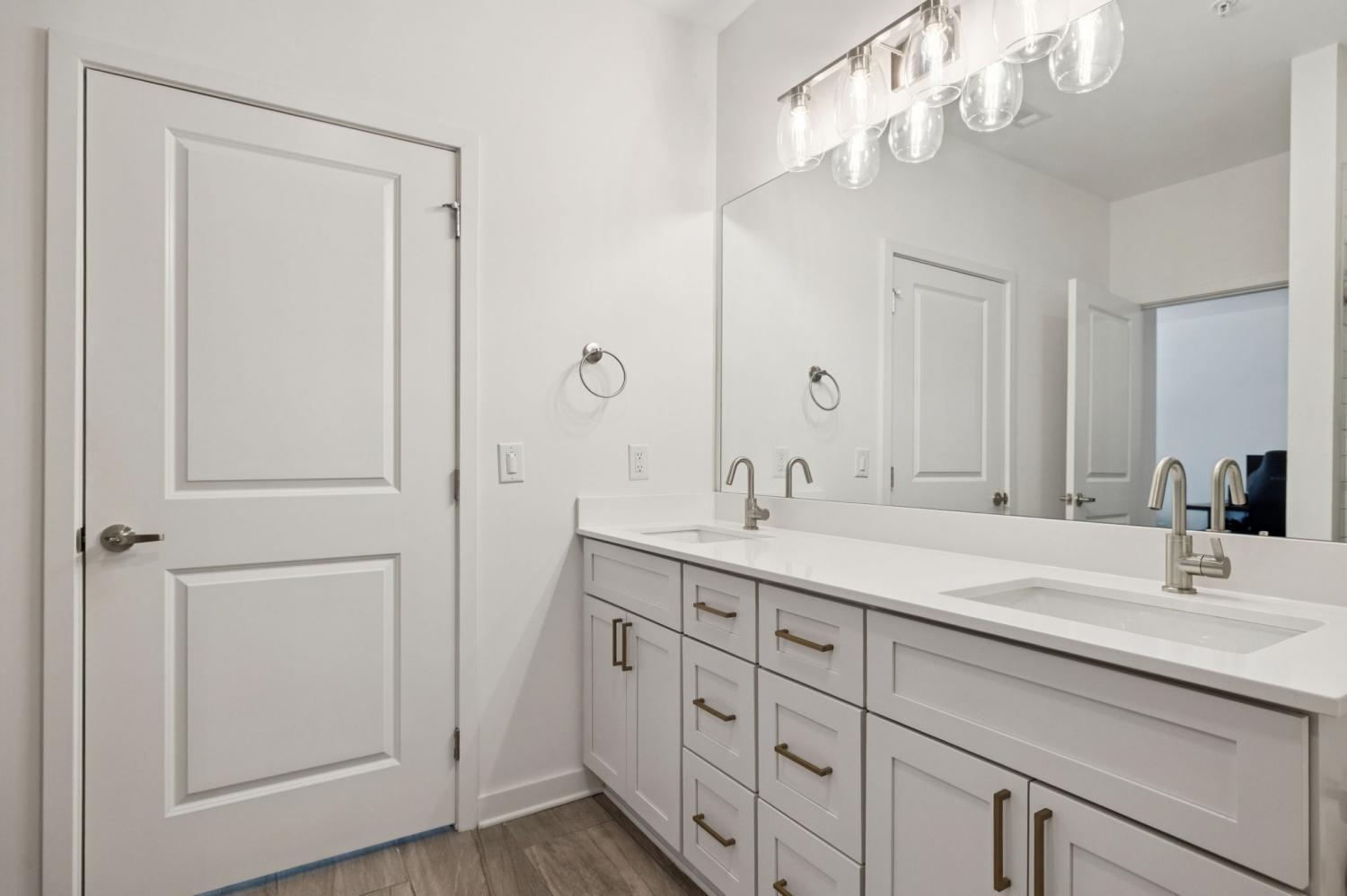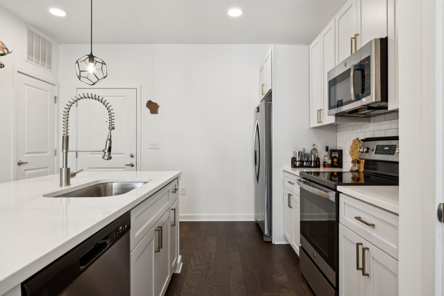 COMING SOON! Modern 1-bedroom condo in the desirable Silo West community at The Nations, offering a pool view with private balcony. The open layout features a modern kitchen with white shaker cabinets, quartz countertops, subway tile backsplash, and stainless steel appliances. The spa-like bath includes a dual vanity and walk-in shower, while a full-size washer/dryer is conveniently tucked away in the spacious walk-in closet. Enjoy finished wood and tile floors, designer lighting, and abundant natural light throughout. Includes one deeded parking spot. Community amenities include a resort-style pool, dog washing station, gas grills, clubhouse, fitness center, and sidewalks. HOA covers exterior and grounds maintenance, sewer, and trash. Just steps from popular dining, shopping, and entertainment in The Nations, and only minutes to downtown Nashville!