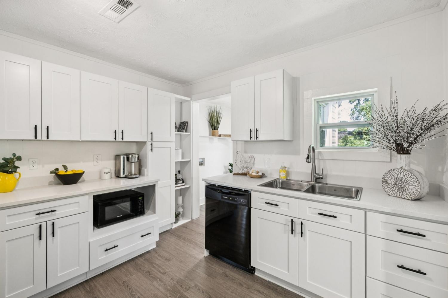 LOCATION, LOCATION, LOCATION & NO HOA!!! This Beautifully Renovated One-Level Home Offers "Walkability" to Shopping, Dining, & Entertainment, And ONLY 1 Mile to I-24! This Charming Home Features "All New" Windows, Cabinets In The Kitchen & Primary Bath, New Quartz Countertops, New Flooring, Plumbing fixtures & Lighting Throughout, Plus A New "Luxury" Tile Shower In The Primary Bath. You'll Love The Open Plan Design, The Extra-Large Laundry Room, & Oversized Primary Bed & Bath Suite With A HUGE Walk-In Closet. Bath 2 Has The Perfect Soaking Tub Surrounded By A Full Tile Wall & Shiplap Accents. This One-Of-A-Kind Home Is Situated On Large, Level Lot With A Private, Tree Lined, Fully Fenced Backyard, Front & Back Outdoor Entertainment Spaces & A Freshly Painted 10x15 Storage Shed. The Roof Is Approx. 4 Years Old.