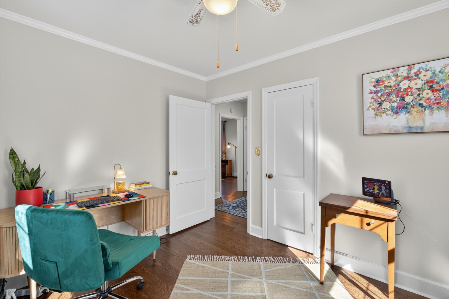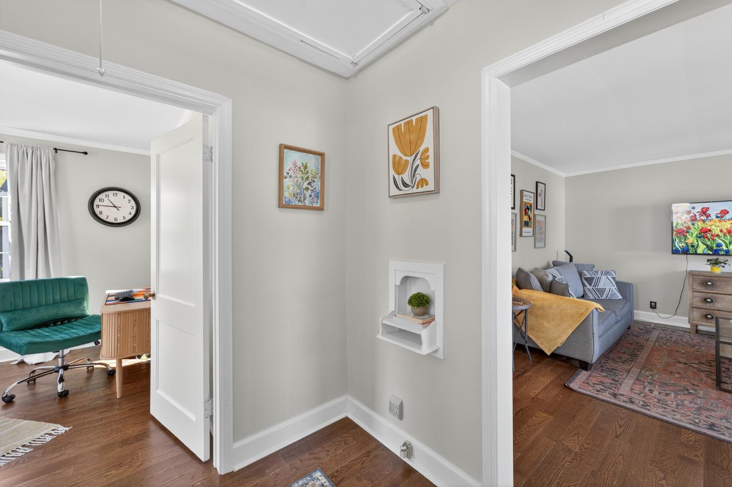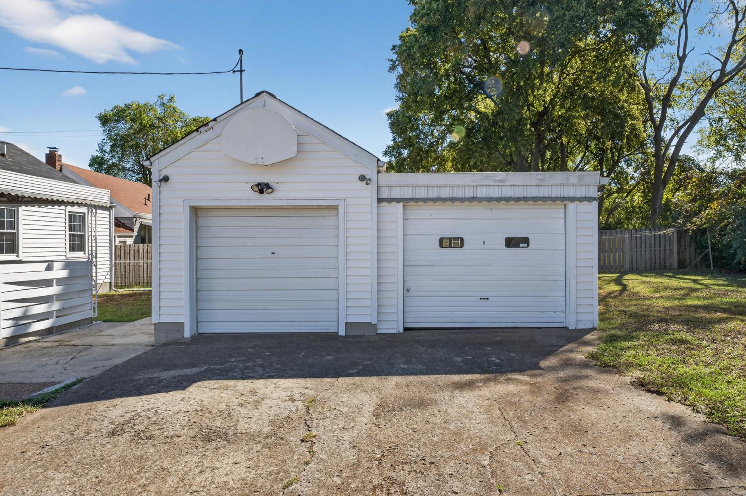 Classic Character Meets Modern Comfort in this 1950s Inglewood gem! Tuck away on a large corner lot AND has an unbeatable location! The vibrant energy of East Nashville is nearby with its swanky bars, first-class eats, coffee shops, music shops, & antique stores. Park strolls more your thing? Check out South Inglewood Park or The Shelby Bottoms Greenway! This community truly has something for everyone. Inside, the home perfectly blends thoughtful updates like hardwood floors & fresh paint throughout with timeless touches like the solid wood doors, original plaster walls, & wall phone nook. Beyond the spacious living room, you'll find a formal dining room accented by a beautiful window, and through the kitchen is a large den with built-in bookcase—offering true versatility for a home office or cozy media space. The kitchen is a delightful nod to the past, with its freshly painted classic cabinets & stylish vinyl flooring, complemented by a nostalgic vintage oven. The refrigerator, washer, & dryer are all included, making this home truly move-in ready! The updated bathroom is equally stylish with black octagon tile floor, a subway-tiled shower, & sleek vanity. Enjoy peace of mind with big recent improvements like an updated HVAC system, 4-year-old roof, new vapor barrier, & updated windows, (plus the w/d lines were relocated inside from the garage). You're going to love the added bonus of the TWO detached garages, (one w/a workshop ready to be renewed) & separate metal shed! This space is endless opportunity waiting to happen! Imagine a dedicated art studio, maker’s space, home gym, or even exploring some income-producing potential. The stone-front exterior & color palette add great curb appeal & the partially fenced yard & large covered patio add privacy - perfect for entertaining. This delightful home is truly a unique opportunity—Don’t just buy a house; buy a lifestyle full of character, convenience, & potential! Look for open house times!