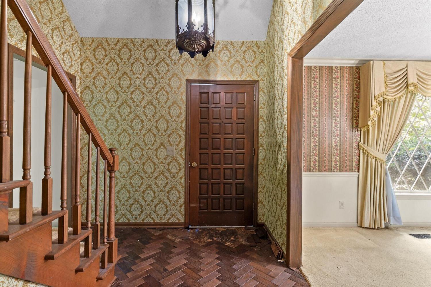 Charming Tudor-style home on a spacious lot in a quiet cul-de-sac. This property offers incredible potential with great curb appeal and room to make it your own. The main level features a formal living room, a cozy den with fireplace, a large dining room, kitchen with breakfast nook, convenient laundry room and half bath along with primary bedroom and bath. Upstairs, you'll find three generously sized bedrooms, a full bath and additional unfinished storage space. A two-car garage provides plenty of room for vehicles, tools or extra storage. With a little updating and TLC this home could truly shine! Don't miss the opportunity to create your dream home in this desirable location. Home is being sold by estate - ''AS IS'' with no warranty except for title. Purchase contract is subject to court approval.