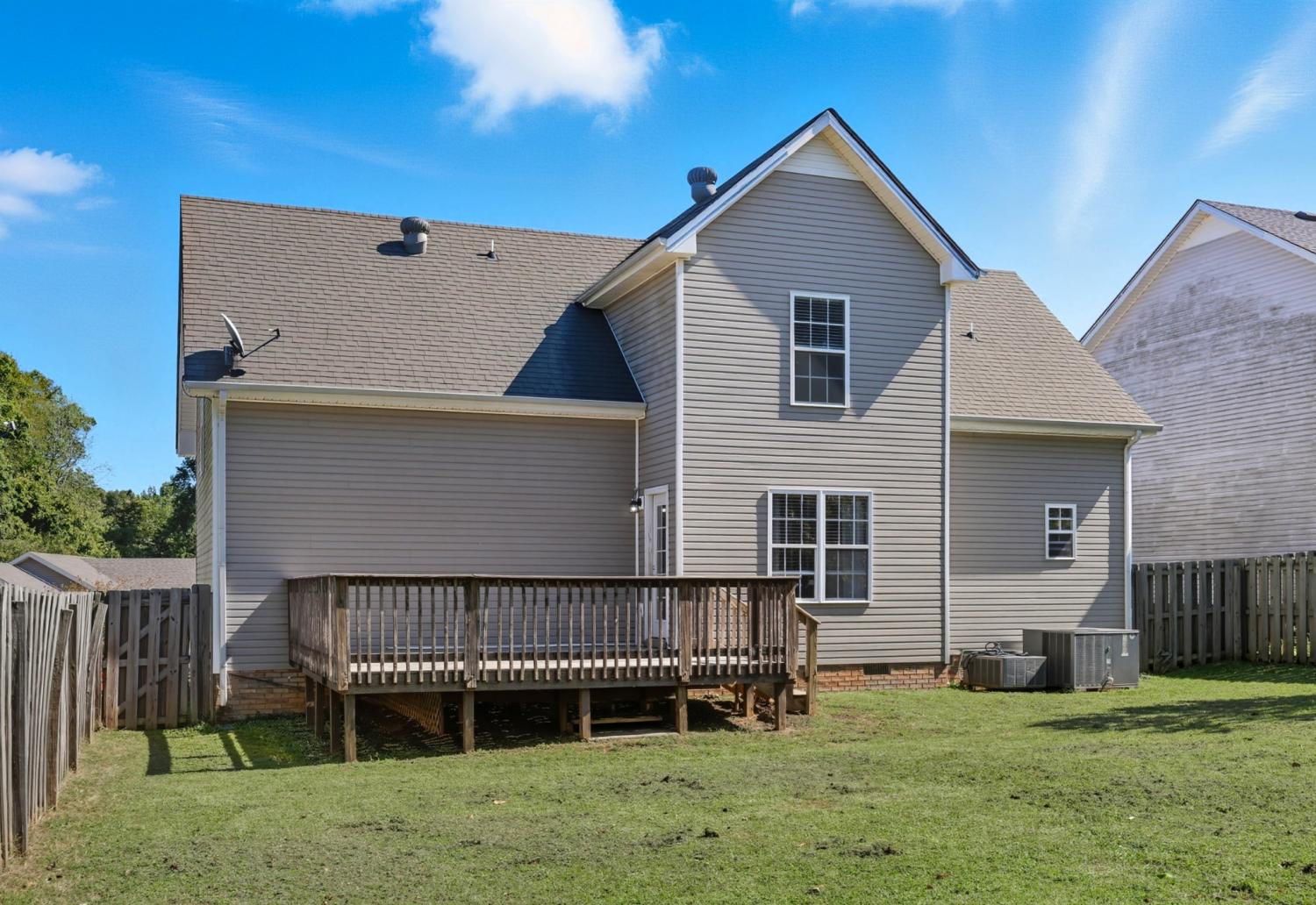 WELCOME HOME TO 2657 CIDER DRIVE — A CHARMING, QUICK MOVE-IN READY GEM WITH CURB APPEAL & CHARACTER THROUGHOUT! From the inviting front porch to the spacious fenced backyard, this home is designed for everyday comfort and effortless entertaining. Enjoy warm, rich flooring, updated lighting, and custom accent walls that add a touch of personality to every space. The MAIN-LEVEL PRIMARY SUITE offers convenience and privacy, featuring a beautifully updated bath with a stunning ceramic tile walk-in shower. The bright, open kitchen includes stainless steel appliances, a large pantry, and an island perfect for gathering or prepping meals. The flexible bonus room upstairs is expansive to suite whatever your lifestyle needs may be. Step outside to your EXPANSIVE DECK overlooking the large, fenced yard! Perfect outside oasis to be in a prime location with a wood-lined backyard. Additional highlights include a two-car garage, dedicated laundry space, and a warm, welcoming layout. ALL OF THIS IN A PRIME CLARKSVILLE LOCATION with easy access to Fort Campbell, the 101st Parkway, and nearby shopping—including a Neighborhood Market just minutes away. SELLER IS OFFERING CONCESSIONS WITH FULL-PRICE OFFER—don’t miss this opportunity to make it yours!