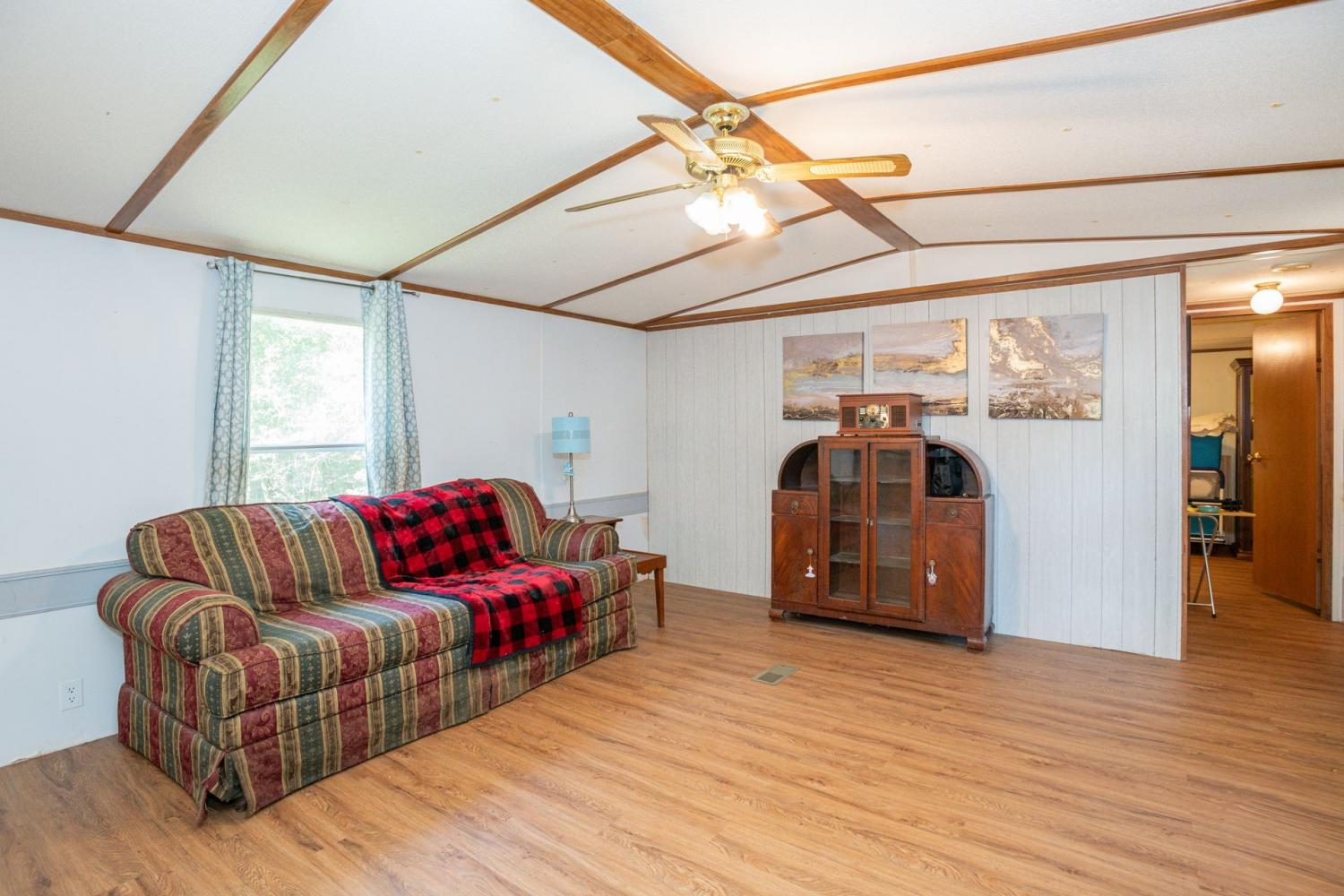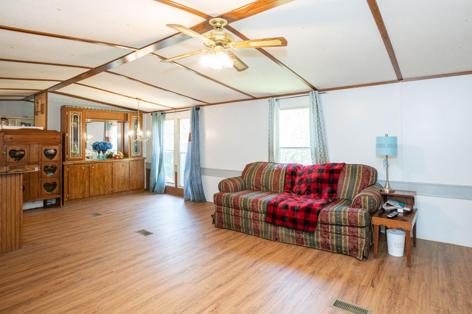 One of the BEST deals in all of Middle Tennessee! 5 acres and a gorgeous updated single wide on a permanent foundation with a detached 2 car garage! Spacious open floor plan with split bedrooms. New skirting, new gutters, new soffit and fascia, new flooring, new back steps with a small deck plus lots of other updates! Light filled and loaded with extra large rooms. Massive primary suite with a soaking tub and separate shower.. Most of the land is wooded but has a flat area in the back for an additional build site per seller. Extra large garage could be a shop. Beautiful, private country setting. Small area fenced for your furry friends. This unit is loan ready and we have lenders, Rosemary Rikel and Dana McIlheney who do single wides! Inspections welcome but sold as-is. Great value for a move-in ready home on 5 acres! Comes with an engineering report for your lender that will save the buyer hundreds of dollars. Bell & Alexander Title for seller, Detitling done and ready to assign to new buyer.