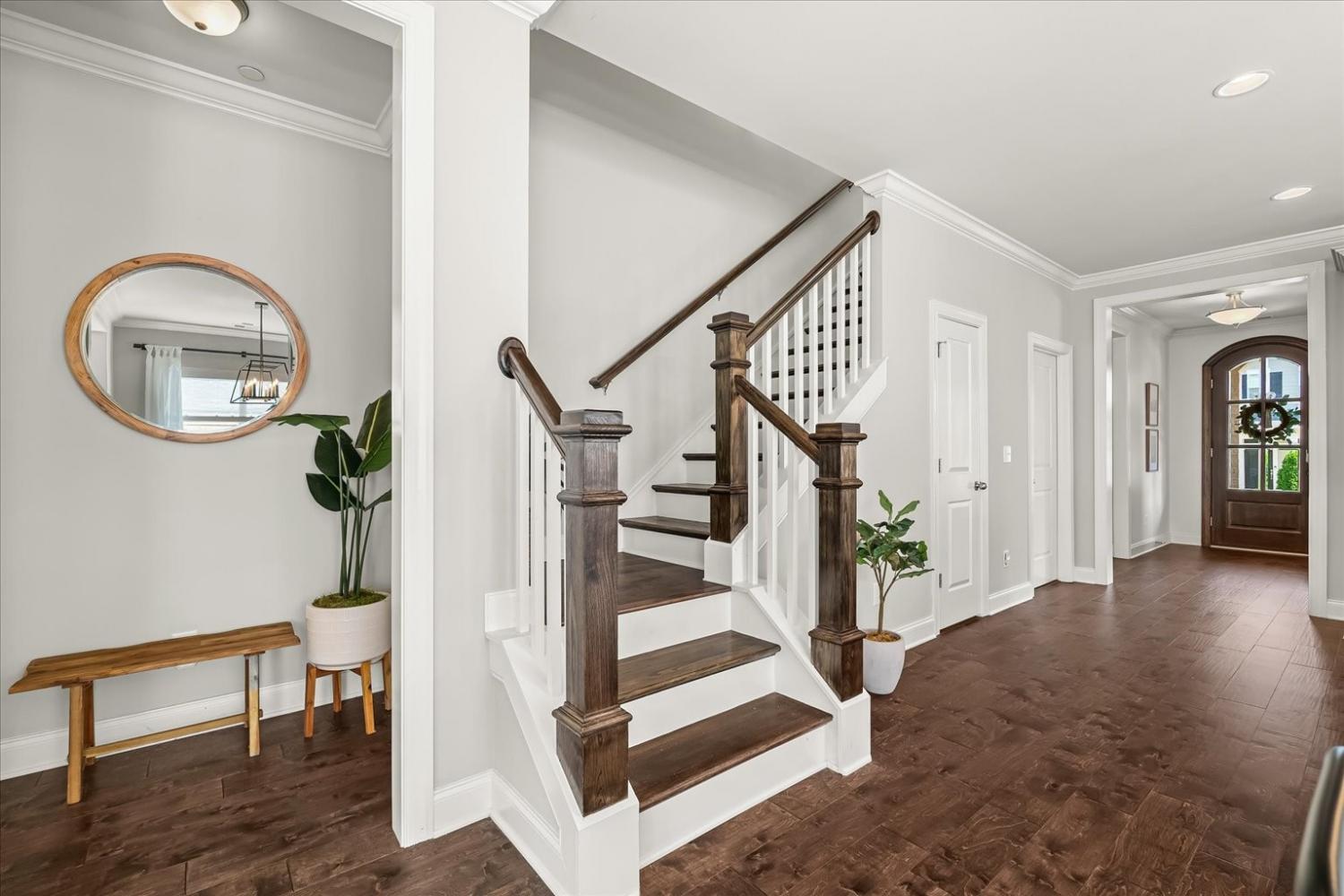 Welcome to this 4-bedroom gem in sought-after Scales Farmstead! You'll love the upscale quality finishes in this Patterson-built home with an open layout & timeliness updates. With 4 Bedrooms plus a Study and Bonus Room- this light all-Brick home is as practical as it is gorgeous! As you step through the 8-foot wood door from the front porch into the foyer, you're greeted by hardwood floors and high ceilings. Just off the Foyer is a private Study w/French doors. The Kitchen has high-end stainless steel built-in appliances & a generous center island that comfortably seats four. Flowing seamlessly into the dining room and great room, you'll find a gas fireplace and plenty of windows offering a lovely view of the fenced backyard. The primary suite is a retreat in itself, featuring a luxurious bathroom with a walk-in shower, separate soaking tub, double vanity, water closet, and a spacious walk-in closet. The main level also includes a guest suite across from the study. Upstairs are two more spacious bedrooms w/walk-in closets, a bathroom, an expansive 21'x20' bonus room, and a large walk-in attic space. Outside, the fenced yard offers plenty of space for a playset & the dog, along with a patio. A 2-car garage includes extra parking behind it and an additional private parking space beside it for guests- and there's even more street parking out front! Scales Farmstead provides stunning scenery to call home. You'll love the community pool & clubhouse, walking trail and playground. This neighborhood has plenty of fun social events throughout the year including movie nights, food truck Fridays, game nights and holiday events. Zoned for award-winning Jordan Elem/Sunset Middle/Nolensville High. Conveniently located near Franklin & Brentwood city limits, only 12 minutes from I-65 and 30 minutes from Nashville. Nolensville is a thriving community with plenty of conveniences and small-town charm! Weekly famers markets, sports leagues, a new downtown and year-round events!