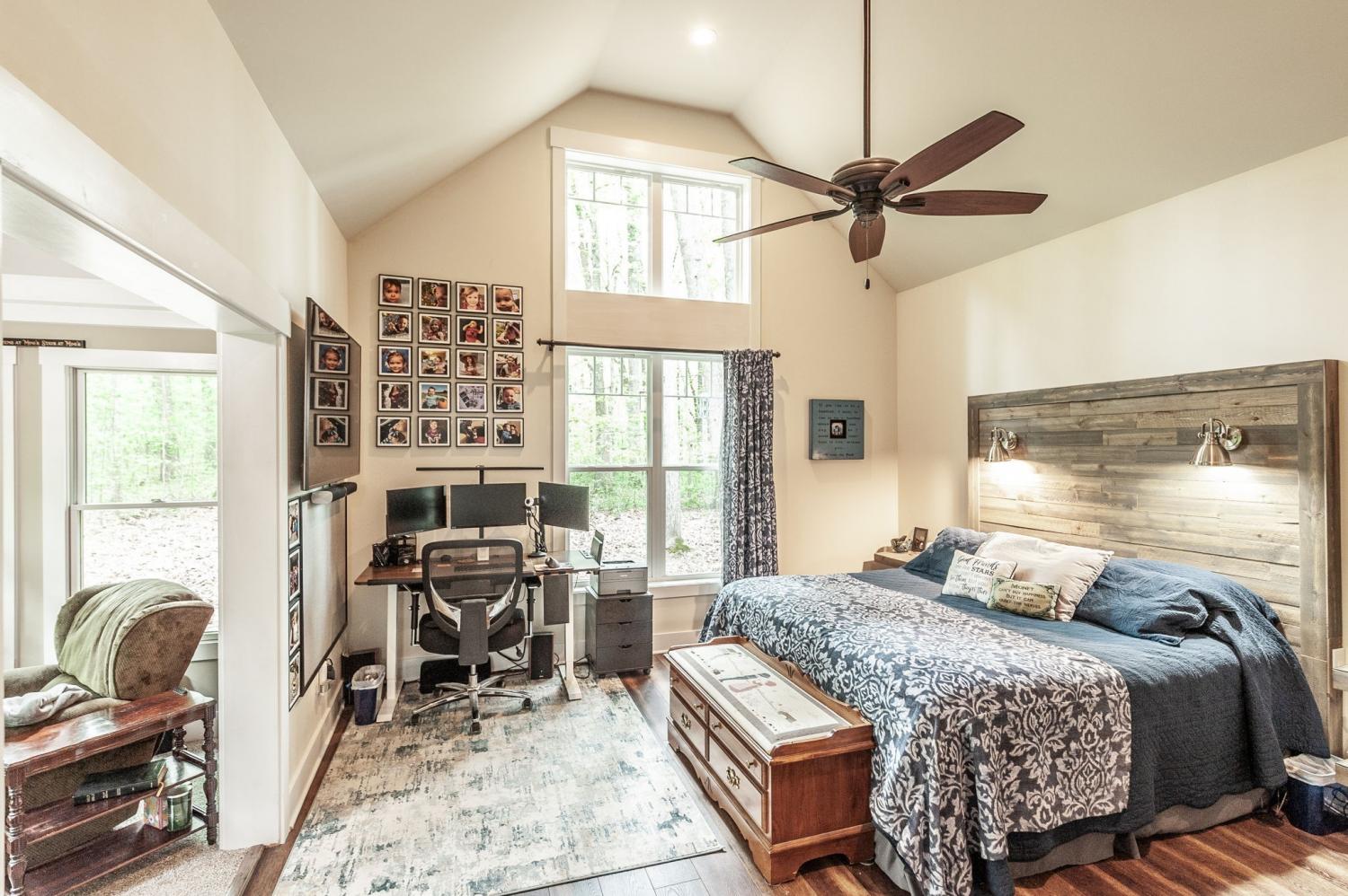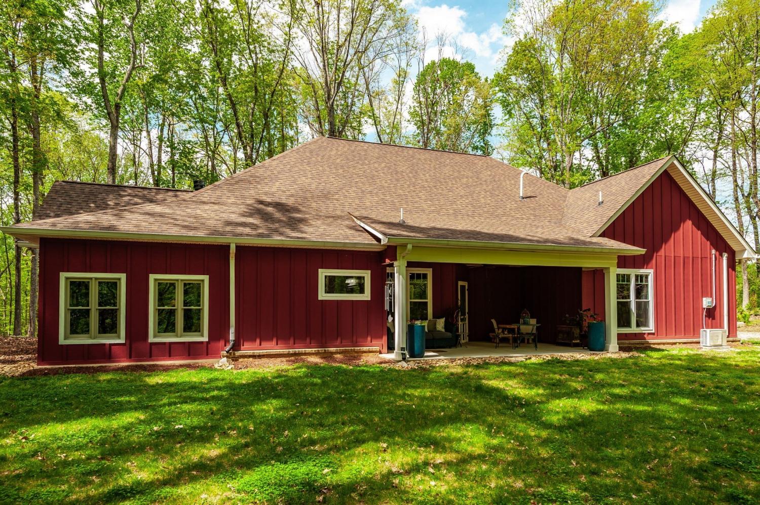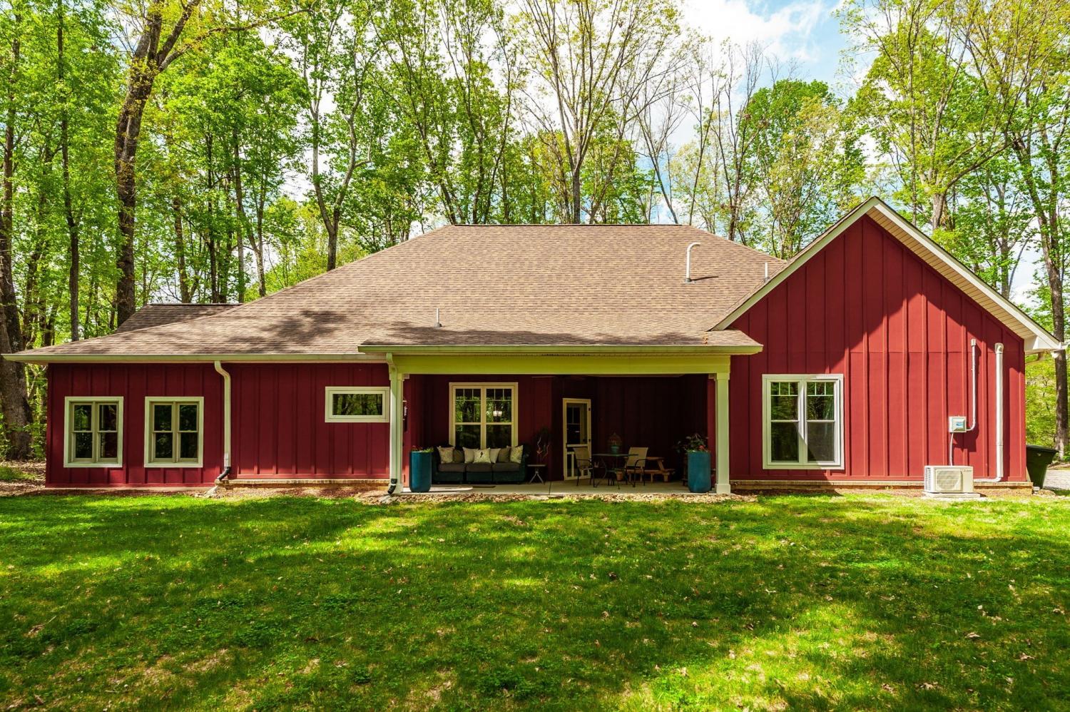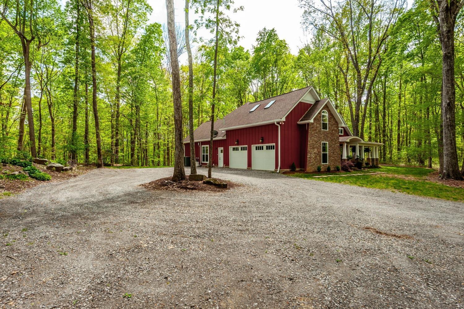 PREFERRED LENDER OFFERING A 1% LENDER CREDIT BASED UPON LOAN AMOUNT AND FREE APPRAISAL. Discover peace and privacy in this beautiful, custom-built home nestled on a sprawling 12-acre wooded lot. This home features a charming covered wraparound porch and patio, perfect for relaxing or entertaining year-round! Open-concept floor plan with soaring ceilings in the living room and a cozy wood-burning fireplace. Four bedrooms and an office that could be a 5th bedroom! The eat-in kitchen is equipped with stainless steel appliances, a gas range, double ovens, a central island, and ample cabinetry and pantry! Primary suite is complete with vaulted ceilings, a private sitting area, a spa-like bathroom with a tub, a walk-in tile shower, and double vanities. Upstairs, a versatile in-law suite or guest apartment awaits, featuring a full bathroom, kitchenette, and skylights! Additional highlights include a 344 sq. ft. workshop with electricity, fresh paint throughout, and plenty of space to build your dream detached garage! A rare opportunity for secluded living with all the modern conveniences!