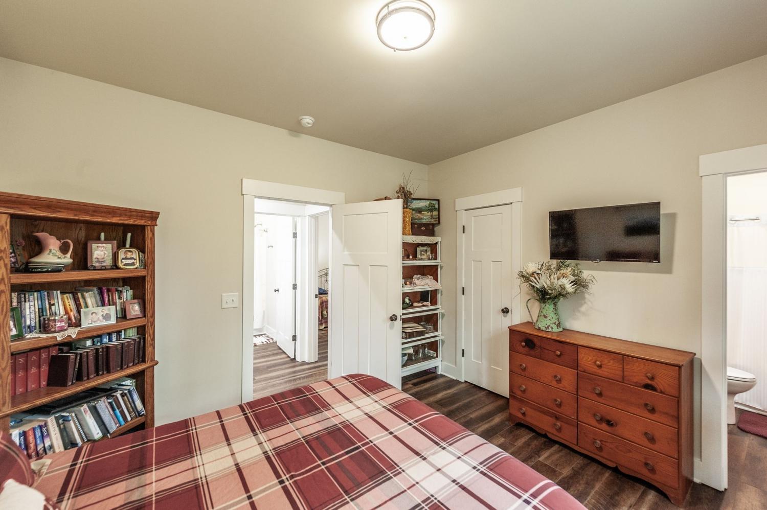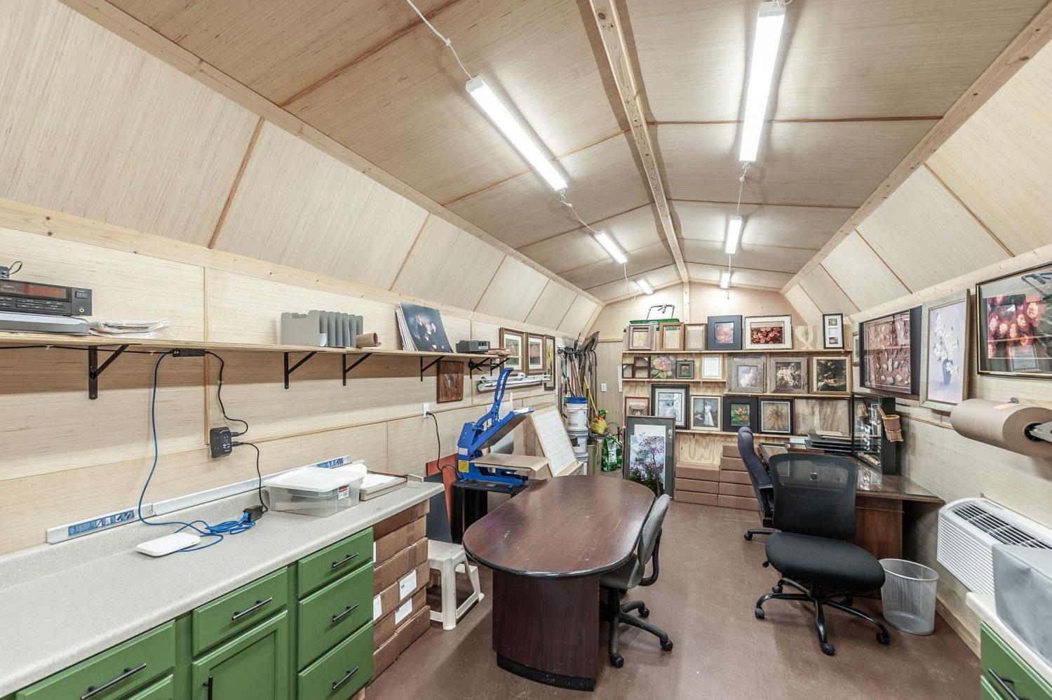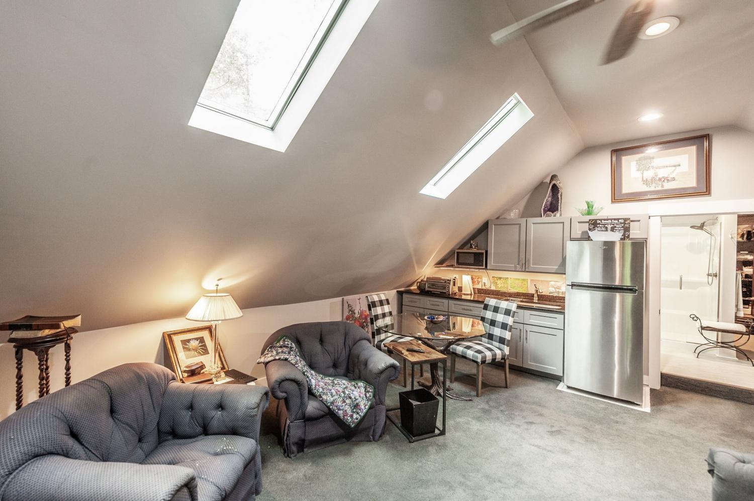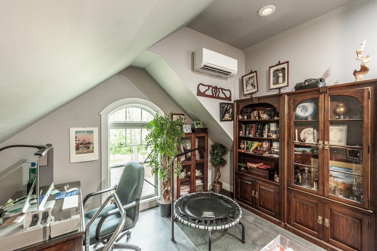 PREFERRED LENDER OFFERING A 1% LENDER CREDIT BASED UPON LOAN AMOUNT AND FREE APPRAISAL. Discover peace and privacy in this beautiful, custom-built home nestled on a sprawling 12-acre wooded lot. This home features a charming covered wraparound porch and patio, perfect for relaxing or entertaining year-round! Open-concept floor plan with soaring ceilings in the living room and a cozy wood-burning fireplace. Four bedrooms and an office that could be a 5th bedroom! The eat-in kitchen is equipped with stainless steel appliances, a gas range, double ovens, a central island, and ample cabinetry and pantry! Primary suite is complete with vaulted ceilings, a private sitting area, a spa-like bathroom with a tub, a walk-in tile shower, and double vanities. Upstairs, a versatile in-law suite or guest apartment awaits, featuring a full bathroom, kitchenette, and skylights! Additional highlights include a 344 sq. ft. workshop with electricity, fresh paint throughout, and plenty of space to build your dream detached garage! A rare opportunity for secluded living with all the modern conveniences!
