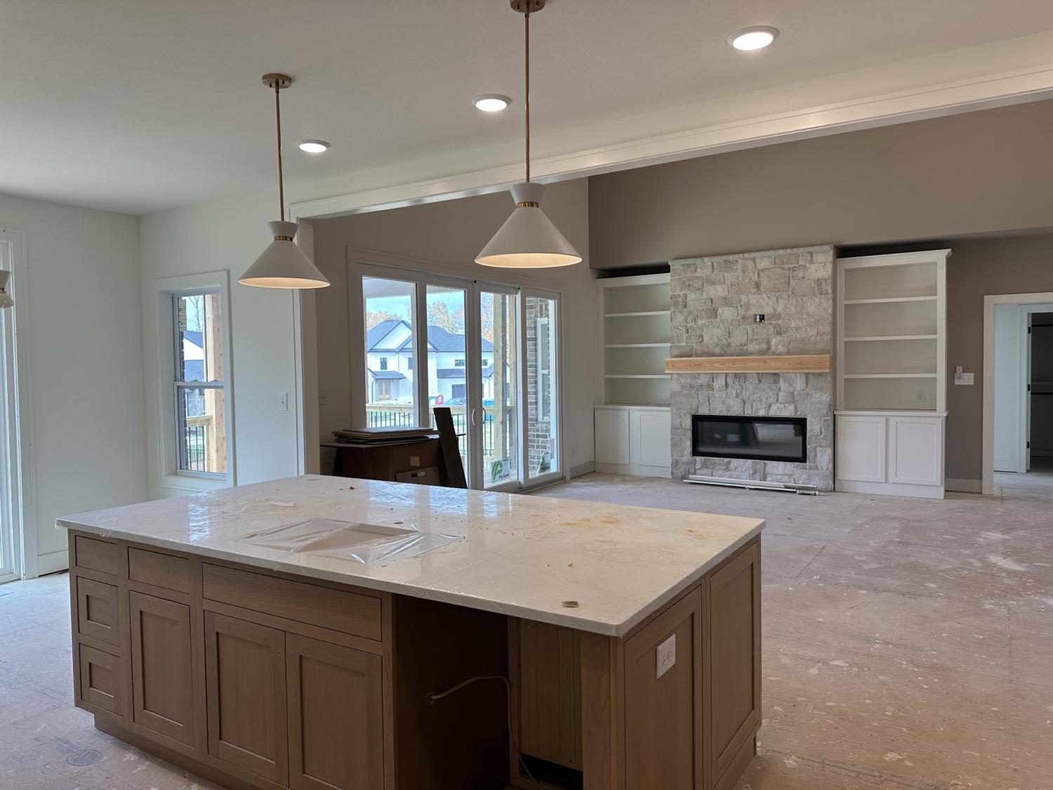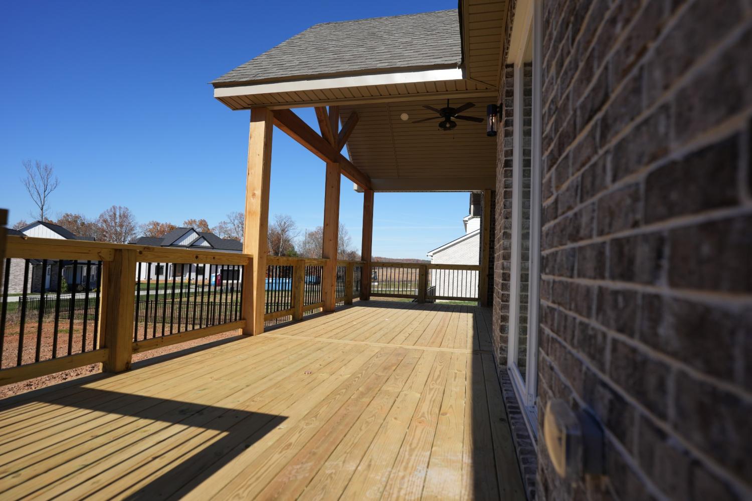 Welcome to the coveted Longview Ridge subdivision where quality craftsmanship meets a chic modern design. This 5-bedroom, 4-bath home features a brick, stone, and hardboard exterior with a side-entry garage, covered front porch, and dual back decks for entertaining. The open living area showcases wood beams, abundant natural light, and a stone fireplace with wood mantle. The gourmet kitchen includes a massive 8 ft island, custom designed wood shelving in the pantry, and a seamless flow to the dining areas. The main-level primary suite offers wood beams, custom shelving and a spa-like bath with tiled shower and rain head faucet. A secondary bedroom and full bath on the main level add flexibility for guests or home office. Upstairs are three bedrooms, two baths, and a bonus room that can serve as a sixth bedroom. Mudroom and laundry room with cabinetry add everyday convenience, while hardwood stairs and thoughtful details elevate the home’s appeal. Convenient to I-24, Nashville, Fort Campbell, area shopping and schools,
