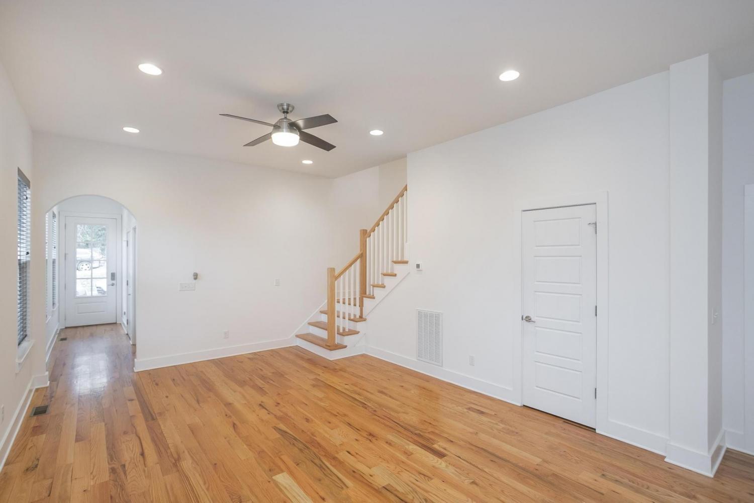 Step inside this move-in ready, sleek and modern 2017 build in the heart of East Nashville! This 3 bedroom, 2.5 bath home features and open living room/ dining/ kitchen layout with beautiful hardwood floors, nice contemporary finishes throughout and tons of natural light. Kitchen has quartz countertops, stainless appliances, and kitchen island that provides additional seating. Huge primary suite has vaulted ceilings, walk-in closet, bathroom with double vanities and oversized shower and separate private covered deck! Additional bedrooms also have walk-in closets. Separate laundry room and washer/ dryer remain! One car garage + parking pad provides plenty of parking for you and guests. Nice covered back deck is perfect for entertaining and overlooks a privacy fenced-in back yard. Don't miss this great price! VA loan is assumable by another veteran-- take advantage of this 3.375% interest rate!