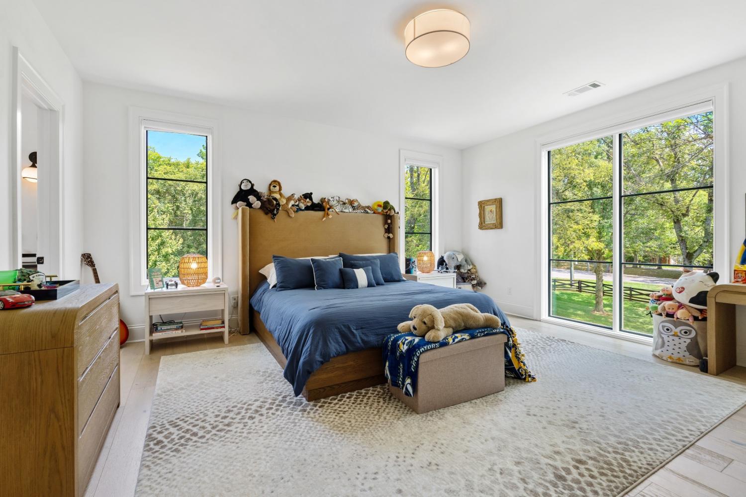 The most sought-after location in Forest Hills--steps away from Radnor Lake State Park and minutes from fabulous shopping, restaurants, schools, and entertainment! This stunning soft contemporary home offers every convenience and is perfect for entertaining. The great room welcomes you with its open concept floor plan making it the center of activity around the spacious kitchen, adjoining screened porch, and private courtyard providing additional dining and entertaining space. The chef's kitchen is fully equipped with custom-built cabinetry and Thermador appliances including a gas cooktop, 2 ovens, a large island sink flanked by 2 dishwashers, and a built-in refrigerator/freezer. The pantry has a bar sink, open shelving, microwave oven, and full-size wine column refrigerator. Additional luxury features include marble countertops, brass faucets/hardware, and Visual Comfort/Arteriors designer lighting throughout the home. The formal dining room has built-in china cabinets for extra storage. The paneled study/den also accesses a small courtyard. The owner's suite features 2 spacious walk-in closets, and a luxurious spa-bath experience with marble floors, a fireplace, double vanities, and a separate shower and tub. A large guest suite is also located on the 1st floor along with an elegant powder room. The second floor has 3 additional bedroom suites and a laundry room and separate half bath. The opulent theater room with black-out shades plus an ample playroom with a built-in bar area and beverage refrigerator provide more opportunities for entertainment and relaxation. The level 1.5 acre lot is pool-ready and has two driveways to accommodate visitors and guests with ample parking. There is a 3-car garage with an electric car-charger and storage area. The laundry room and drop-zone also offer more storage. Other notable features include large custom Pella windows, white oak flooring, and extensive curated outdoor lighting, irrigation, and landscaping.
