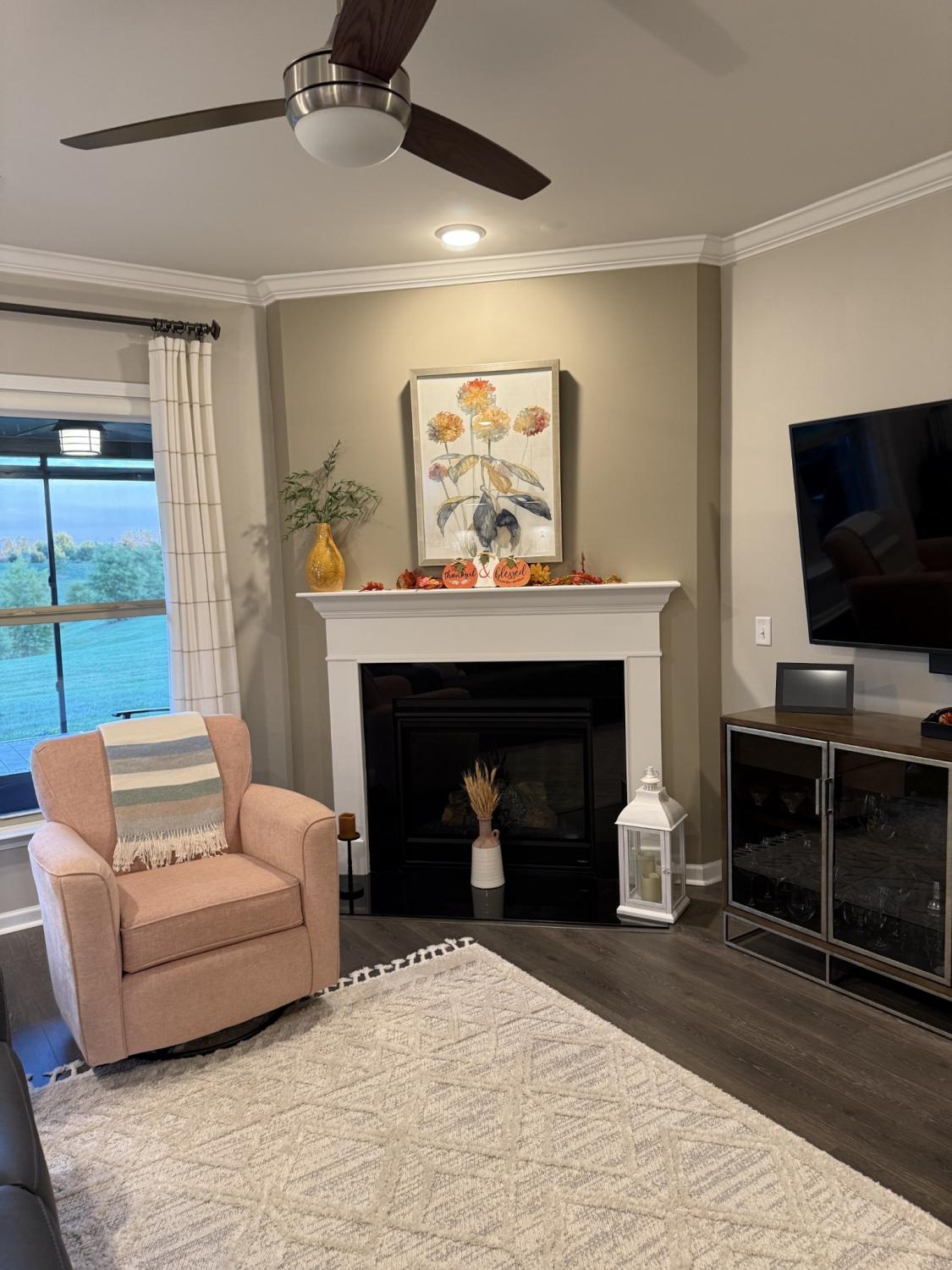 Professional photos coming soon. Move in ready, one owner, neutral paint and decor, Abbeyville model on one of the most private lots in Southern Springs by Del Webb 55+ active adult community backing to a lushly landscaped area with view of pond. Enjoy your morning coffee on the large, inviting lanai. Open concept living with with crown moulding, great room with gas log burning fireplace, kitchen, and dining area. Upgraded kitchen with quartz countertops, gas stove, cabinets with rollout shelving, soft close doors and drawers. Generous island for food prep and entertaining as well as a separate pantry. Flex room can be used as an office, craft room, library, music room, or 3rd main floor sleeping area. Laundry room with additional storage cabinets and laundry sink. Primary bedroom has lots of natural light and has an ensuite bath with double sink vanities, walk-in shower, separate water closet, and large primary closet. Upstairs is the 3rd bedroom or bonus room with walk-in attic access for the ultimate in storage. Garage has epoxy floor coating and 4 ft extension leaving plenty of space for a golf cart or workshop area. Lawn is beautifully landscaped and has irrigation system. The community has both indoor and outdoor pools, pickle ball and tennis courts, gas fire pit, pavilion with gas grills and patio tables, clubhouse with fitness center and fitness classes, ball rooms, kitchen, conference room, card/game room, massage room, men's and women's locker rooms, and a dog park. Over 70 clubs and special interest groups, special programs, presentations, concerts, Southern Springs choir and band, as well as photography, painting, quilting, solo clubs, coffee club, Veteran's club, and so much more. Living in Southern Springs is like vacationing at a very active resort. Thirty-five minutes to/from BNA.
