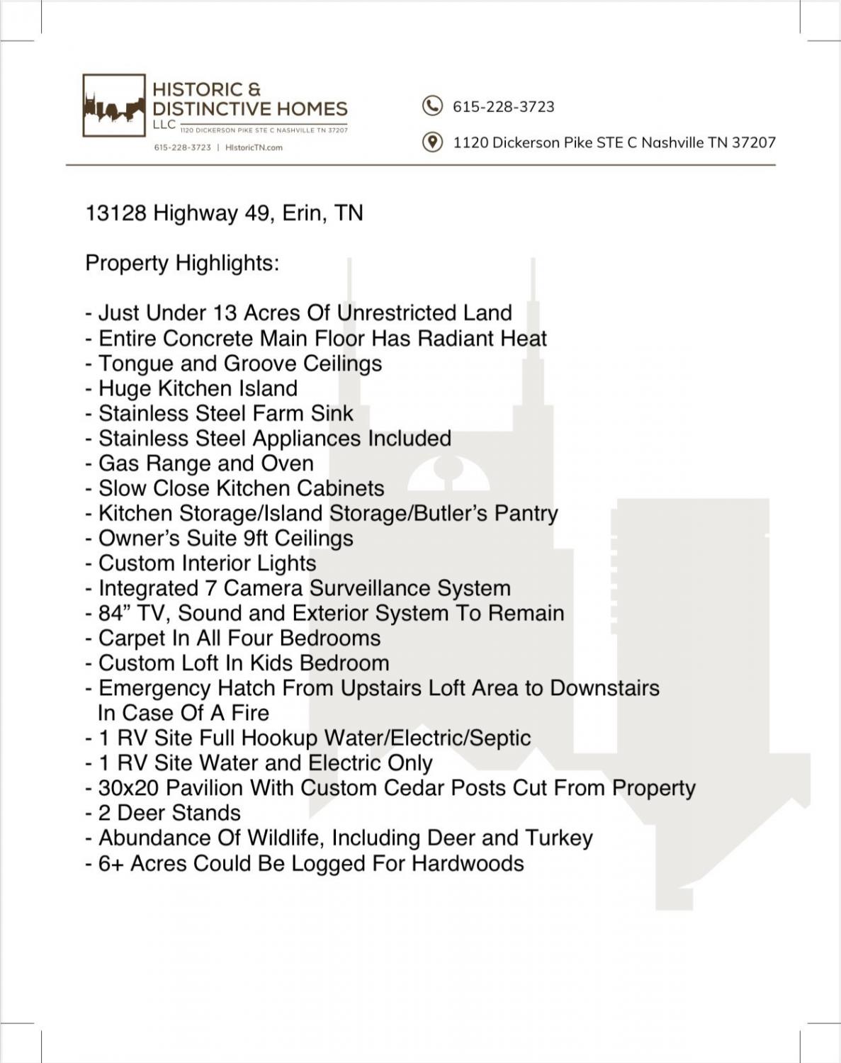 Traveling on I-40W toward Dickson, take exit 172. Left on Beasley Dr, left onto TN-46N/Pond Rd for 16 miles. Left onto TN-49W. Property is 2 miles down.
