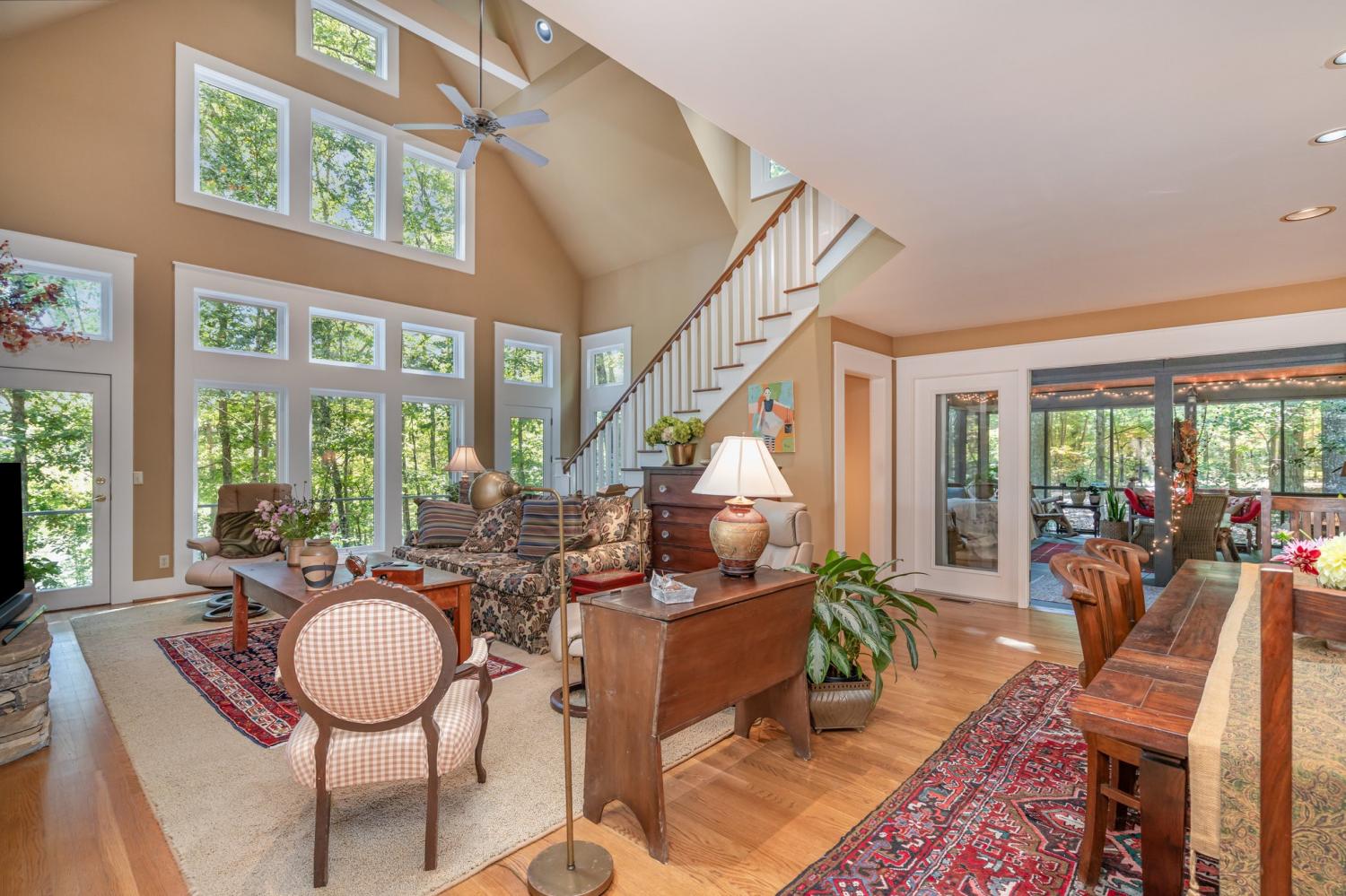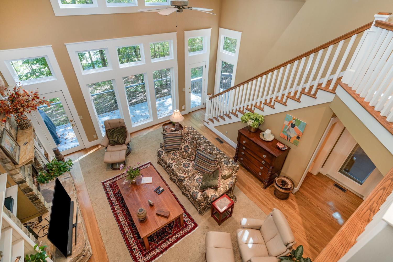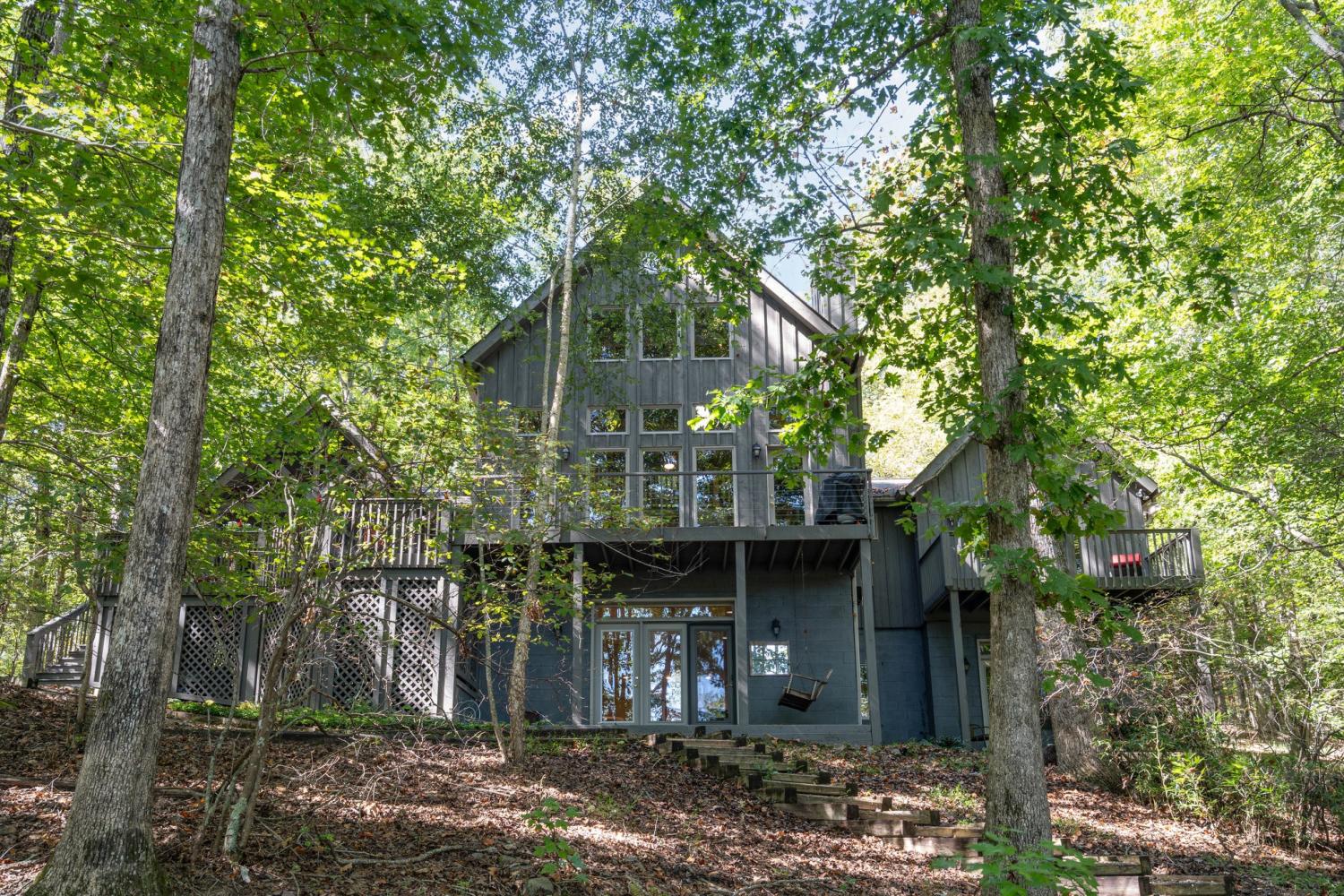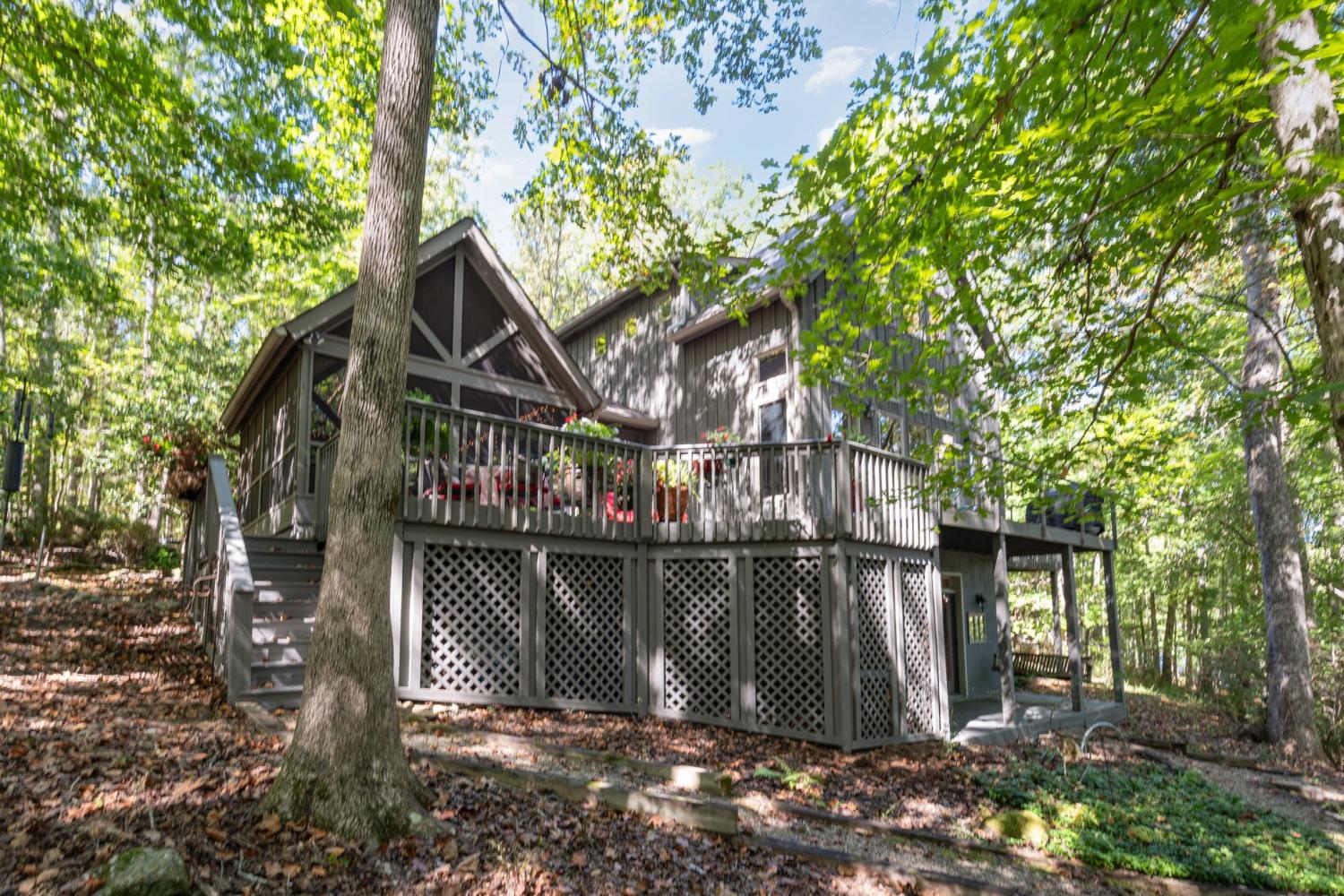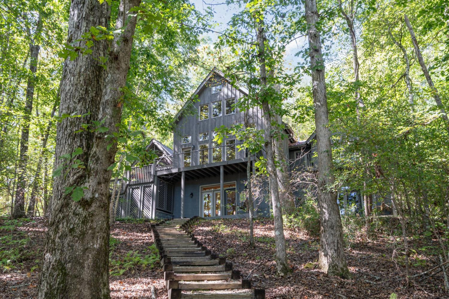 A rare opportunity to own a lakefront retreat in the sought-after Clifftops community of Monteagle! This stunning home perfectly captures the essence of indoor-outdoor living. Step into the serene 440 sq ft screened porch with skylights, offering peaceful lake views and a seamless welcome into the home. Inside, nearly every room showcases a beautiful view of the water. The chef’s kitchen features an oversized custom wood island, soapstone countertops, cherry cabinetry, stainless steel appliances (all remain), and an induction cooktop—a perfect blend of style and function. The open-concept great room centers around a soaring stone fireplace with custom built-ins and floor-to-ceiling windows framing the lake view. With two full bedrooms and a loft bedroom, each featuring its own en suite bath, there’s space and comfort for everyone. The main-level primary suite includes a charming window seat and overlooks the water, while the lower-level bedroom offers privacy and easy access to the patio. The loft bedroom provides flexibility—keep it open for light and views or enclose it for additional privacy. The finished basement features a large bonus/flex room that opens to a covered patio leading to the private dock, plus a 220 sq ft storage room (not included in total square footage). Outside, enjoy multiple lakeview decks perfect for relaxing or entertaining. Gently graded, wide steps lead to your private dock, complete with electricity and a ladder for easy lake access. Don’t miss the chance to make this special property your very own “Place to Play." Schedule your private tour today!