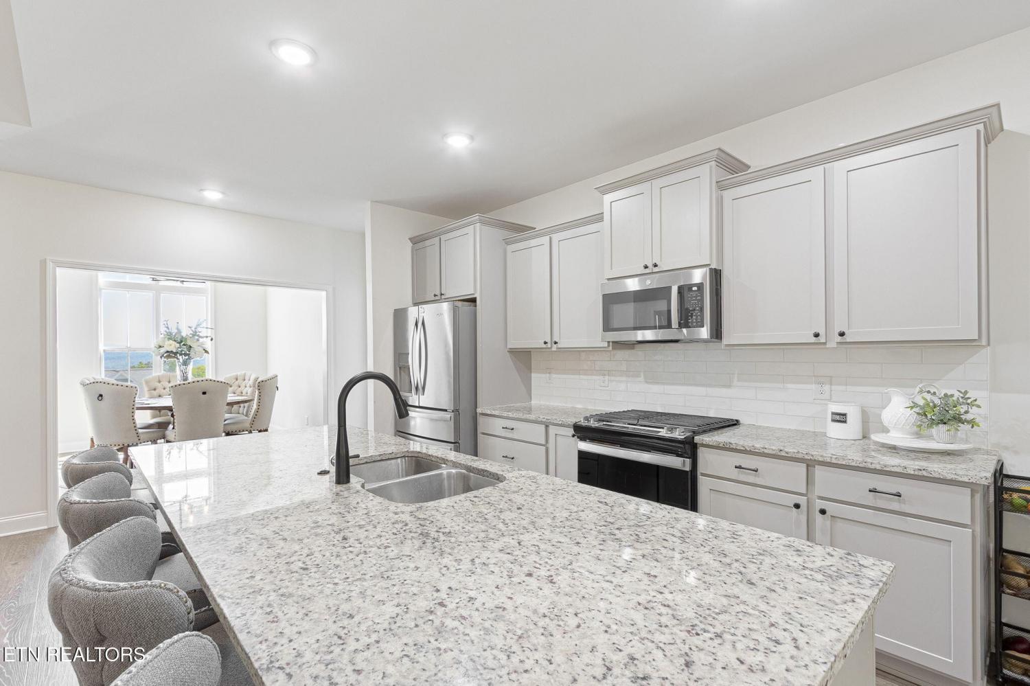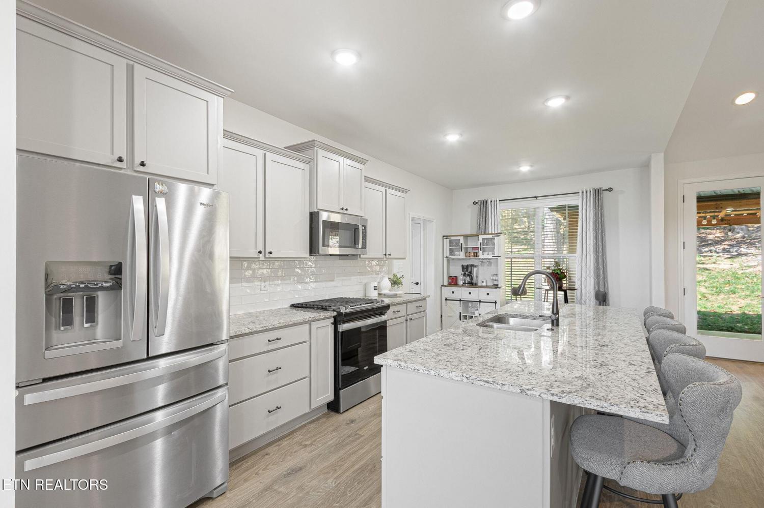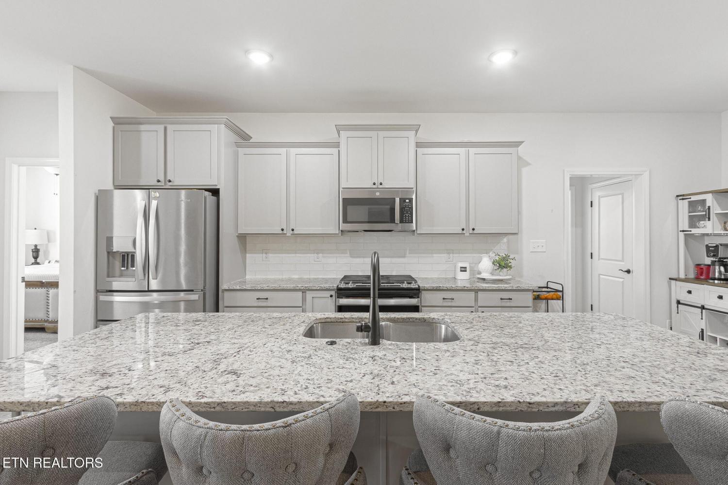 Welcome to this stunning 3-bedroom, 2.5-bath, home with full basement, thoughtfully built in 2023 by Turner Homes. Nestled in a well-established and quiet neighborhood, this property offers the perfect combination of modern comfort, timeless design, and scenic beauty—all with breathtaking views of the Smoky Mountains. Step through elegant French doors that lead into an expansive and open concept. The main level offers true one-level living with a spacious living room that flows into a beautifully appointed kitchen, featuring a large granite island, ample cabinetry, and pantry. A designated dining room provides the perfect space for gatherings, whether casual or formal and can also make the perfect office space with the mountain views. The home offers a private primary suite and two additional generously sized bedrooms on the opposite side, designed for comfort and flexibility. Enjoy quiet mornings or relaxing evenings on the covered back patio, which adjoins a fenced backyard for privacy. Need more space? This home has you covered with 1400+ square feet on lower level roughed in and plumbed with incredible potential for future expansion. Whether you need extra living space, a home gym, storage or a workshop, the possibilities are endless. From the front entry to the private outdoor living space, every detail of this home is designed to enhance your lifestyle. With quality construction by Turner Homes and room to grow, this is an exceptional opportunity in a desirable East Tennessee location. Just minutes from downtown Knoxville, Shopping and Entertainment.