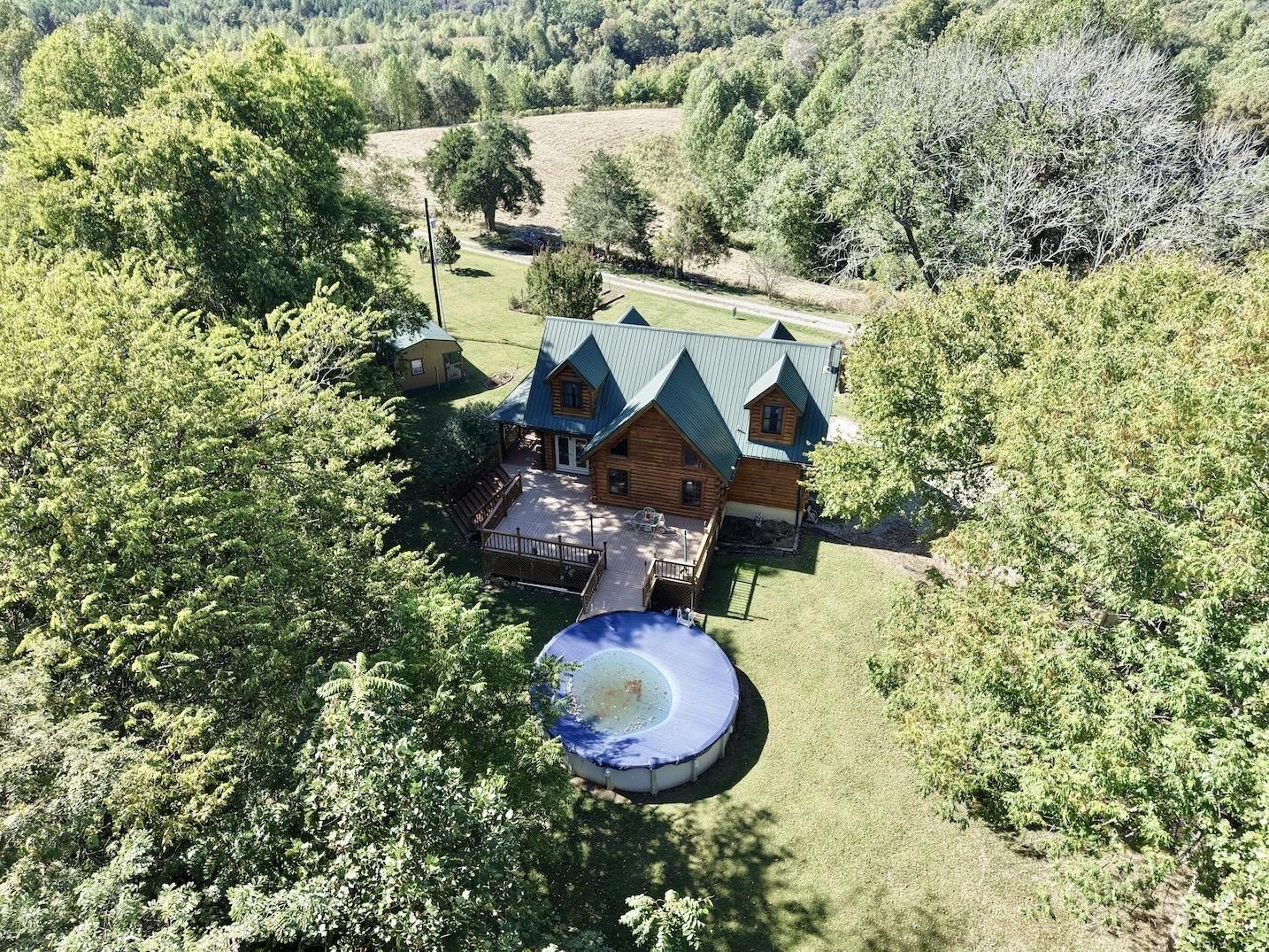 Discover the perfect blend of rustic charm and modern comfort with this spacious 3-bedroom, 2.5-bath log home nestled at the end of a private dead-end road. Surrounded by 47 acres of rolling pasture and mature woods, this property offers unmatched privacy and the peaceful setting every homesteader or nature lover dreams of with abundant wildlife, open pastures, natural spring & hiking/horseback riding trails. The main home features authentic log construction, a full basement, and warm wood interiors that radiate country character. The open living area flows effortlessly into the kitchen and dining space—ideal for family gatherings. The primary suite provides a private retreat, while two additional bedrooms upstairs and a half bath on the main level offer ample space for family or guests. A small guesthouse sits nearby, perfect for extended family, visitors, or use as a home office or studio. Step outside to sweeping views, gentle hills, and open pasture framed by timber—ready for livestock, horses, or simply a serene escape from city life. Whether you're looking to farm, hunt, or unwind in total privacy, this property delivers the Tennessee lifestyle at its finest.