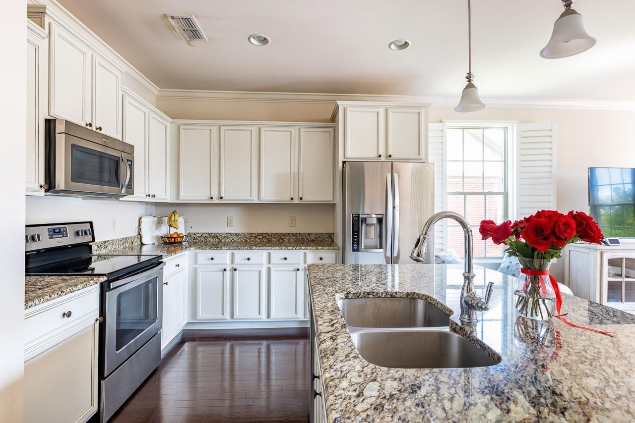 Buyers financing fell through, so we are back! We are still the best deal in the area. Some of our tangible differences speak louder when you are in person and can compare them. The location of this property is in great proximity to all you need. Tucked away, creating some privacy from the busier sections of the neighborhood, this home sits prominently on its corner lot. Simple things can turn into important things quickly when buying a home. Not only do we have a garage, but we also have a big driveway! Many do not. Wash your car, work in the garage, + have plenty of parking for guests. There is also extra overflow parking in this area. In this section you will notice the homes behind you are much further apart from yours than in the other sections. This helps everything here not to feel congested, not have to look into your neighbors’ windows, and it just creates a bit more privacy than most. With quick access to the shops and food in the neighborhood, as well as having great walkability, you will love living here. This 3-bedroom home could also function as a 4 bedroom. Downstairs is a room that could be used as an office, studio, or unofficial bedroom. There is also a full bath, a large living space, and a private entrance, all making the space usable in multiple ways. The main level is an open concept with great functionality. The kitchen has plenty of cabinets and countertops + a bar area with seating for 4, stainless appliances, and more. The large windows allow much desired natural light to the home, while the shutters allow you to balance that light how you want. The primary suite is large and highlights a trey ceiling treatment, two closets, and a nice-sized bathroom. The secondary bedrooms, hall bath, and laundry are also upstairs creating a great retreat away from the rest of the home. A great property, located close to Cool Springs, I-65, Downtown Franklin, Brentwood, Nashville, and most anywhere you could want. HOA is replacing roofs, gutters, etc!