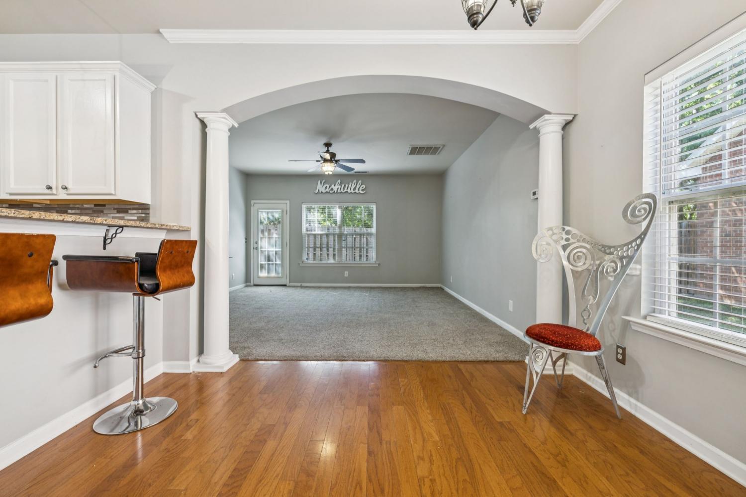 Welcome to this move-in ready end unit tucked in a quiet Donelson cul-de-sac! Offering 3 bedrooms, 2.5 baths, and 1,932 sq ft, this home features a two-car garage and spacious main-level primary suite with a walk-in closet and double vanity. The kitchen shines with granite countertops, stainless steel appliances, white cabinetry, and a stylish backsplash, which flows seamlessly into the dining area and inviting living room with an elegant archway and columns. Upstairs, enjoy two generously sized bedrooms with large closets and a versatile loft that’s perfect for a home office, media, or game room. Fresh neutral paint, wood flooring, and abundant natural light create a bright, welcoming atmosphere throughout. Outside, a private fenced patio is ideal for outdoor dining or relaxing. Recent updates include a new HVAC system and water heater, plus yard care covered by the HOA for truly low-maintenance living. Conveniently located just 4 minutes from Donelson favorites including The Bagelshop, McNamara's Irish Pub & Restaurant, Whitt's BBQ, Phat Bites, Movement Lounge, Donelson Library Branch, and more, plus only 6 minutes BNA airport, and only 10 minutes to Downtown Nashville!
