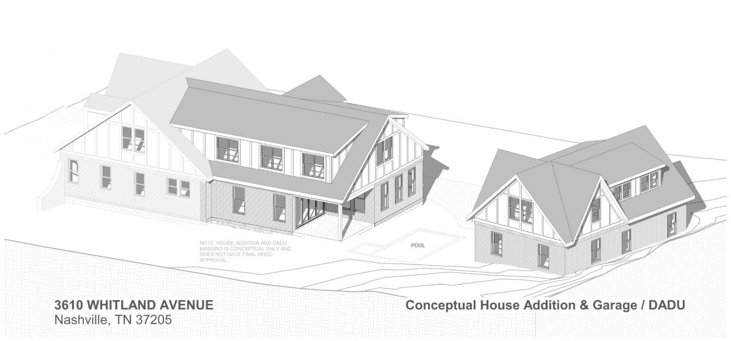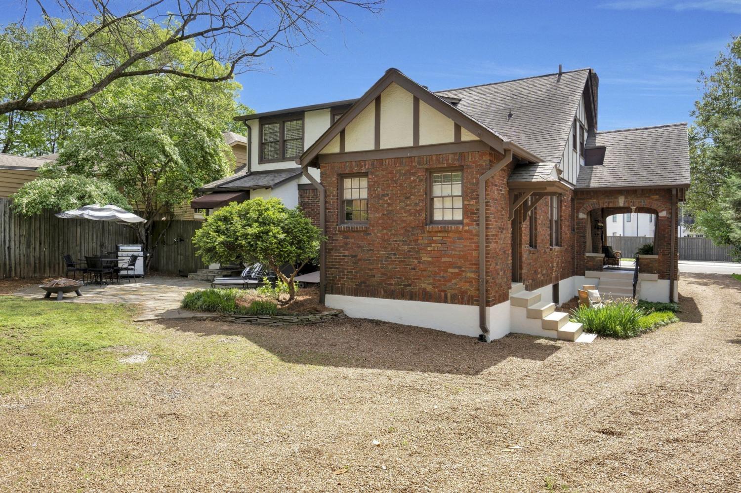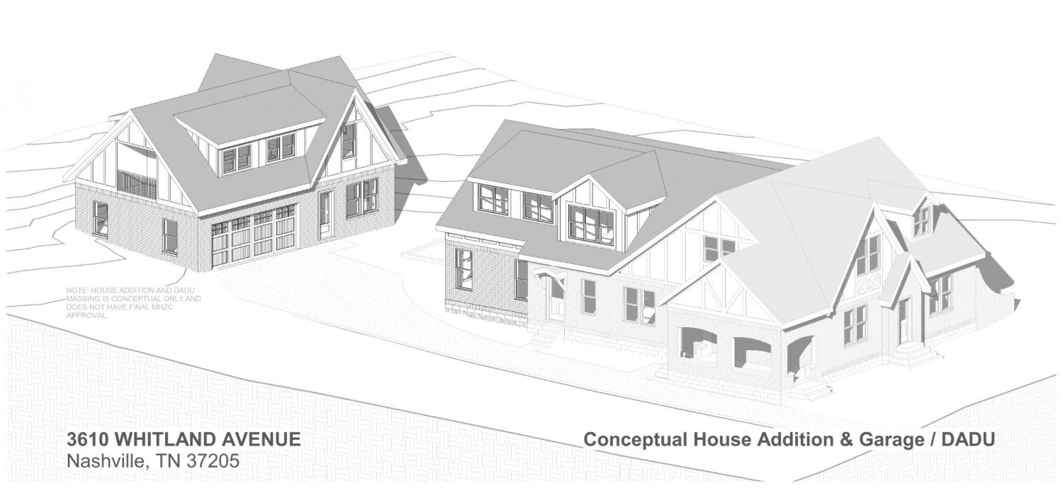This versatile property is located on one of Nashville's most sought-after streets, offering views of Elmington Park and West End Middle School. This beautifully maintained historic home presents a unique opportunity for enhancement, expansion, or the addition of new structures, making it an ideal choice for multi-generational living. Explore one of the proposed plans for a garage apartment, pool, or other addition up to 26 feet tall, with architects' renderings available in the photos. The property features a charming 2,647 sqft brick and stucco Tudor home with 5 bedrooms, 2.5 baths, hardwood floors, arched doorways, and a fireplace. On the main level, you'll find 3 bedrooms, 1.5 baths, a formal living and dining room, an updated kitchen with an island, a 200 sqft covered side porch, a stone back patio, and a spacious backyard. The second level includes a second kitchen, a two-room bedroom suite, a second bedroom, a full bath, and a versatile area for sitting, dining, or exercising. Additionally, there's a walk-out, walk-around basement/storm shelter of approximately 1,450 sq ft, unfinished, with access from both the first floor and the backyard. Walkable to multiple houses of worship, schools, parks, and greenways, The driveway is composed of asphalt, tar, and chip. Any new structures or additions will require Historic Zoning approval. Improvements to the Bowling/Whitland intersection have significantly calmed and reduced traffic patterns, enhancing the tranquility of the area. The sale includes the existing home known as 3610A Whitland, Parcel ID #104090Q00100, as well as 3610B Whitland, Parcel ID #104090Q00200, an unimproved backyard lot, and the surrounding common area, 3610C Whitland, Parcel ID #104090Q00300. Recent tax assessments can be viewed in the media section. Owner/Agent