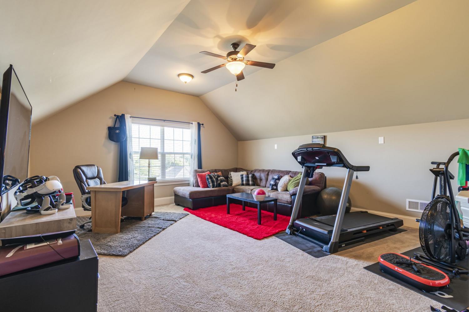 Lovely, well-maintained home placed on a beautiful, one acre lot, only 7 miles from downtown Columbia. All the advantages of being in the country in this safe, quiet, peaceful, pastoral setting, just outside the city limits Large deck overlooks spacious, fenced backyard, perfect for pets or children. Gas and wood fire pits, gas grill, maturing trees, and a panoramic view will draw you outdoors, where the only sounds are of nature. Inside you will find an open floor plan with tall ceilings, bay window in the kitchen looking out on the backyard, crown molding and floor to ceiling windows in almost every room. Granite countertops and stainless appliances in the kitchen. Primary Suite has large closet with built-ins and a safe. Dining room is presently being used as a music/game room, but is perfectly suited for formal or casual dining. Expansive bonus room has a wet bar. TV mounts in 6 rooms. House is at the end of a cul-de-sac.