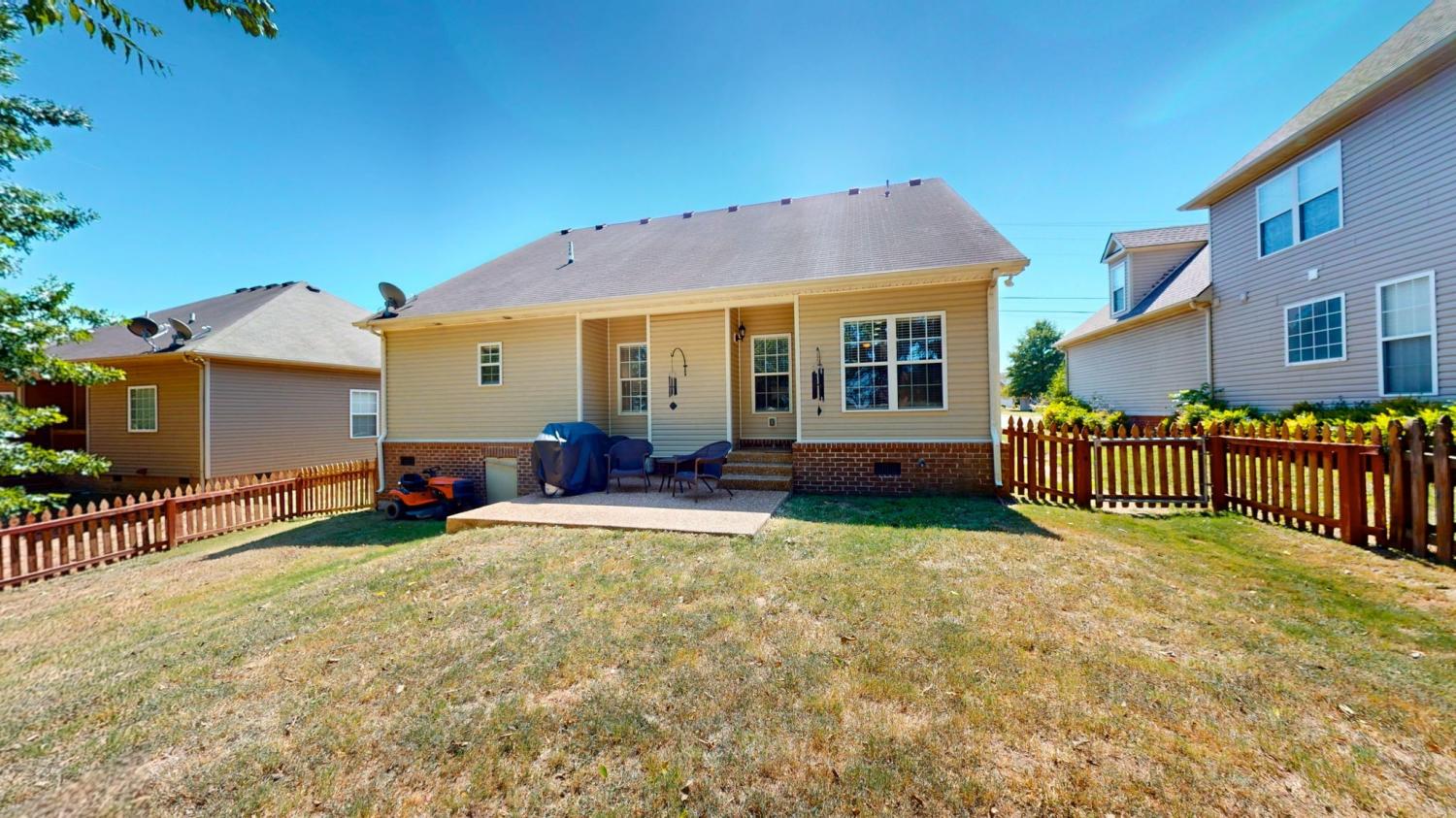 All Bedrooms on Main Level with large Bonus Room over the Garage featuring a tremendous walk in floored Attic Storage w/full size access door. Freshly painted throughout. Hardwood floors in Family Room and Foyer that surround your Gas Fireplace. Soaring Ceilings surround this open floor plan that flows between the Living Room and Kitchen for entertaining fun. Dual sinks with separate soaking tub and walk-in shower in your Primary bathroom make for early morning prep for the day so smooth. Plus a large walk-in closet. Outside you will enjoy your patio surrounded by the fence and treed line at the rear of the property. There is a walking trail throughout the community. Includes a riding lawn mower. You are just minutes away from Towhee Golf Course, Birdsong Social Restaurant, Fisher Park, Saturn Pkwy, I-65, Kroger's and Publix. Buyer and buyer agent to confirm information, no guarantee but all believed to be true.