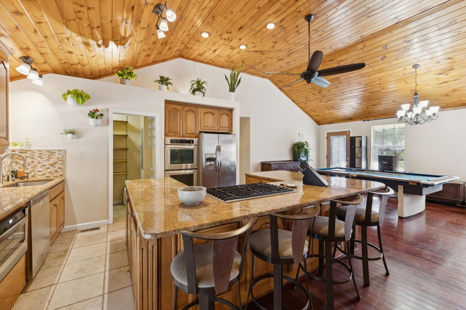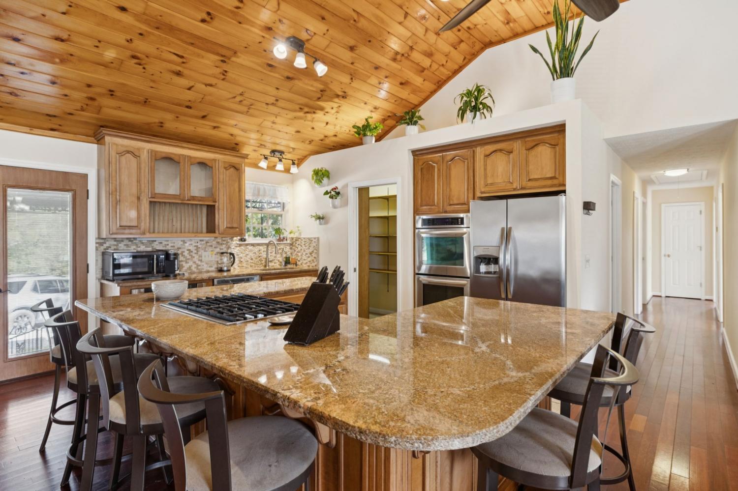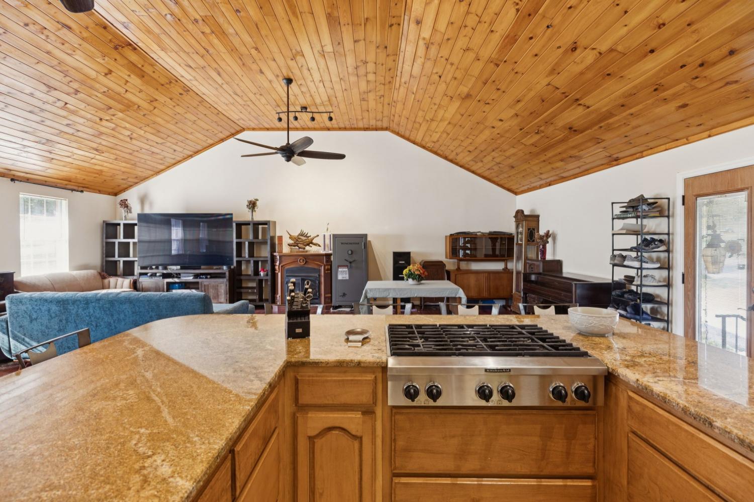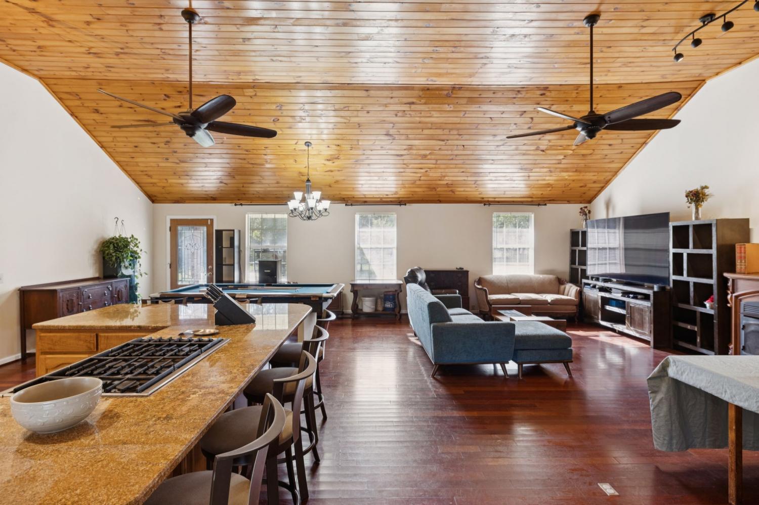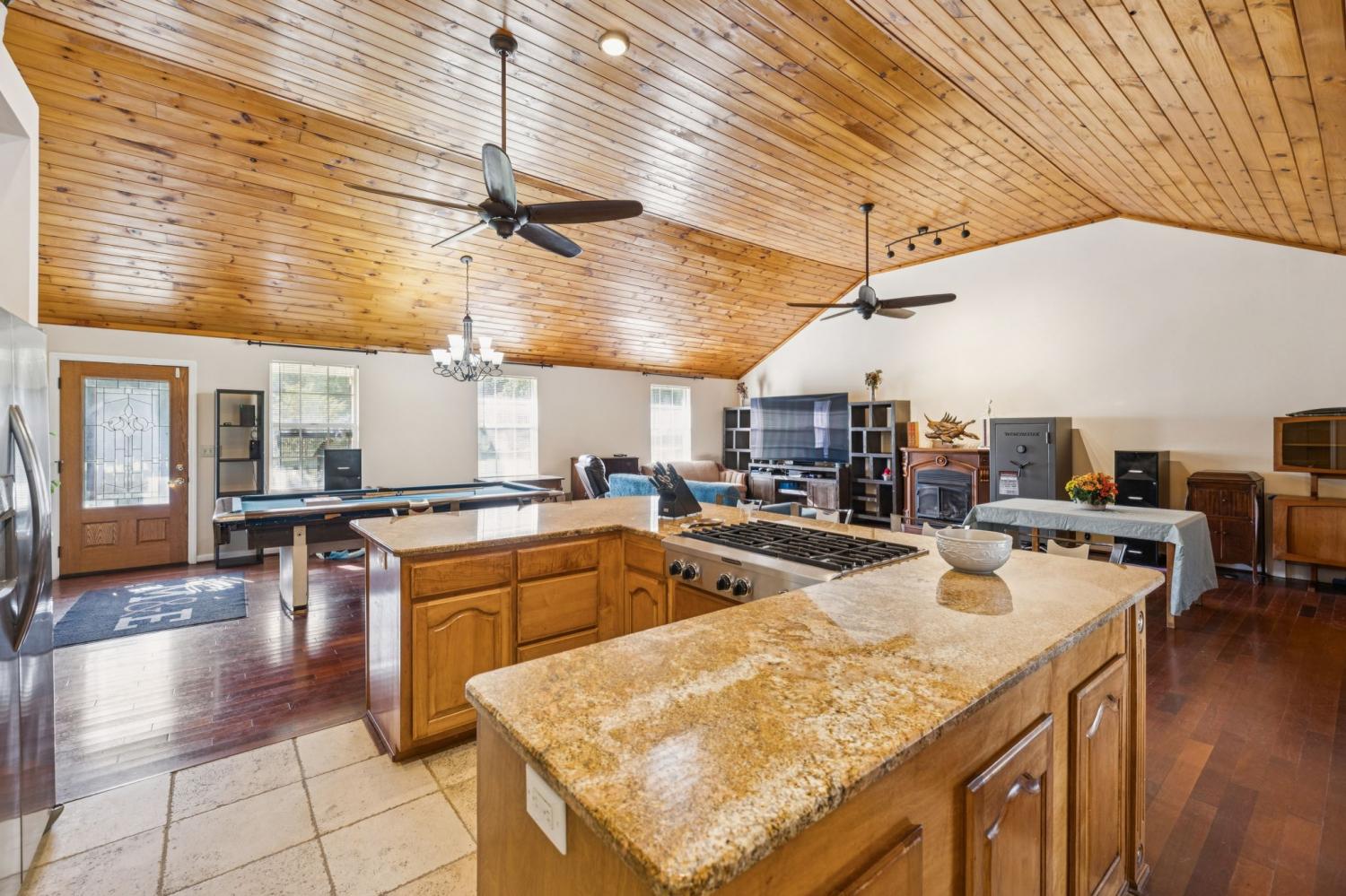 Welcome to this beautiful 3-bedroom, 2-bath all-brick home nestled on 14 acres of serene countryside. Designed with both style and function in mind, the home features an open-concept living area highlighted by a stunning high plank ceiling and an abundance of natural light throughout. The kitchen is a chef’s dream with a gas range, stainless steel appliances, and a large island that offers additional seating—perfect for entertaining or casual family meals. Enjoy the best of both worlds with fiber internet, offering fast and reliable connectivity for work, streaming, or staying in touch. Recent updates include a new roof and HVAC system, providing added comfort and peace of mind for years to come. The washer and dryer also convey with the property, making this home truly move-in ready. Outside, you'll find a mix of mature trees and open spaces, offering both privacy and room to roam. The property includes a large shop with electricity, ideal for hobbies, storage, or a workspace, as well as an equipment shed that currently houses a tractor and implements. An additional area on the property has been marked as a favorable perk site, offering potential for future expansion. This is a rare opportunity to enjoy peaceful rural living without sacrificing modern amenities. Schedule your private showing today!