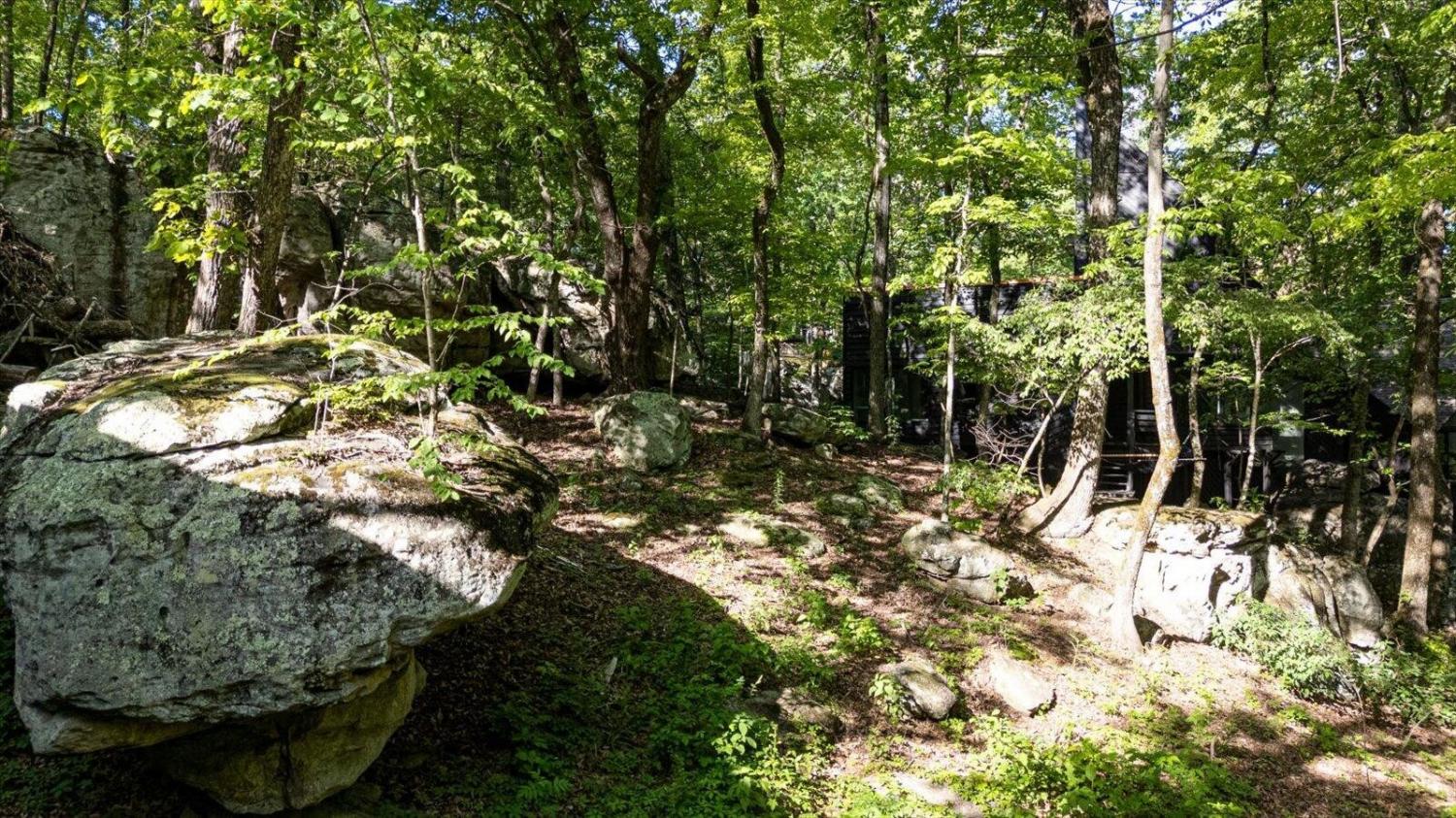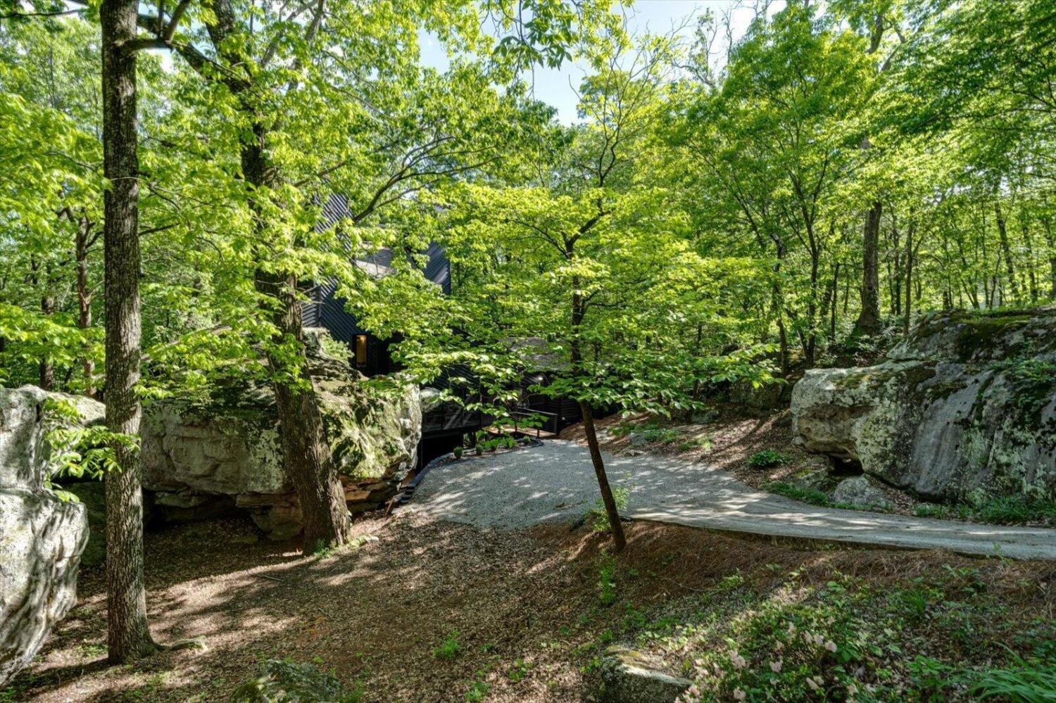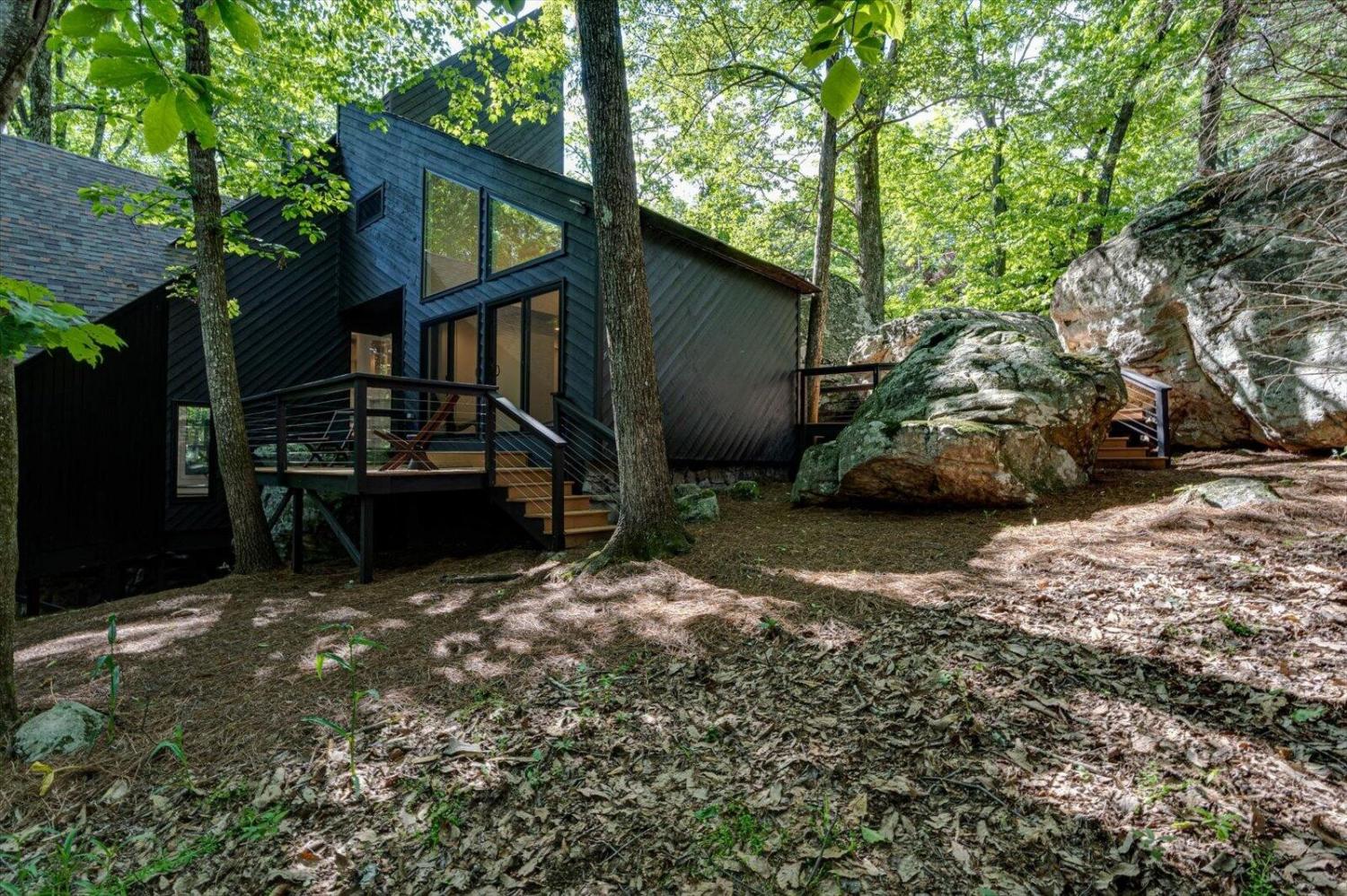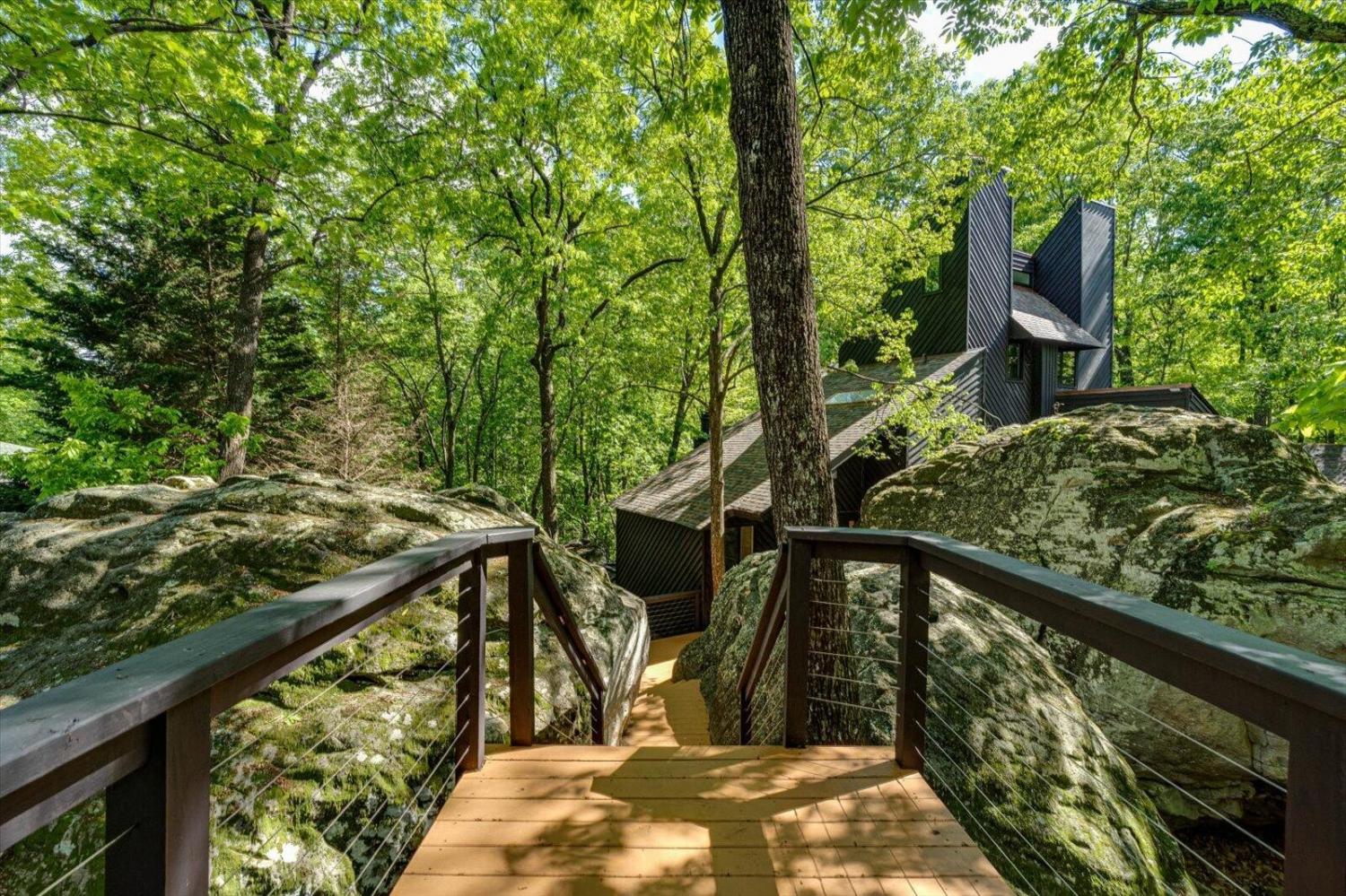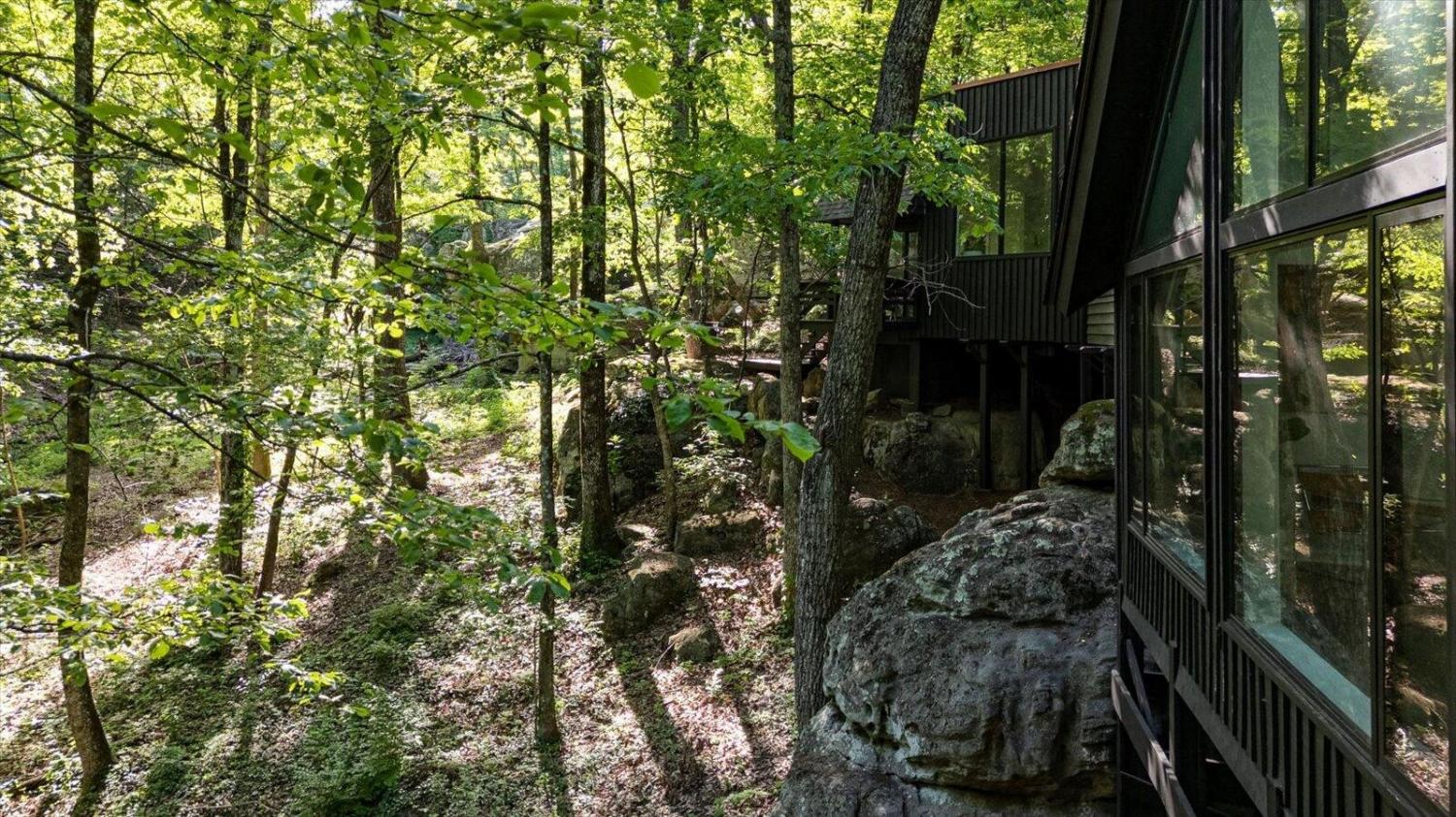 Rock House is magically positioned amongst beautiful natural boulders on a private, wooded lot. This iconic mid-century modern home sits at the end of a quiet cul-de-sac in the heart of Lookout Mountain, TN just minutes from downtown Chattanooga. Rock House is a 4 bedroom, 3.5 bath home built by a renowned architect as his personal abode that has been meticulously updated while still remaining true to the architect's vision. It is now ready for the new owner to reap the benefits of all of the recent improvements both inside and out, including huge, custom, new Marvin windows, providing views to the boulders and lush setting from every room, new architectural roof, new copper flashing, custom milled cedar siding in many areas, new commercial grade exterior lighting, new Kdat decking, new railings, new Marvin doors, new interior MCM lighting, two new Trane HVAC units, new interior and exterior paint, revitalized kitchen and keeping area, new media room, new primary suite on the main with two walk-in closets, sitting area with large custom window overlooking the boulders, in-room laundry, and bath with wall-sized custom window. Some additional special features include the steel pivot front door, two primary suites, two laundry facilities, multiple outdoor living areas, seasonal backyard stream and so much more. Rock House is truly a piece of art that one gets the privilege to live in. Curated, mid-century furnishings are included so the home can be fully appreciated. Please call for more information and to schedule your private showing today. Information is deemed reliable but not guaranteed. Buyer to verify any and all information they deem important.