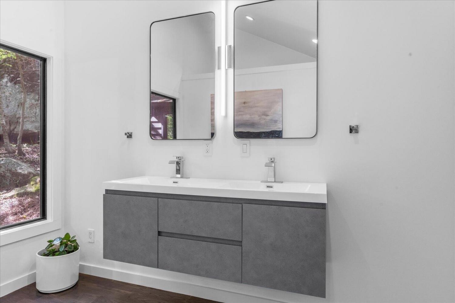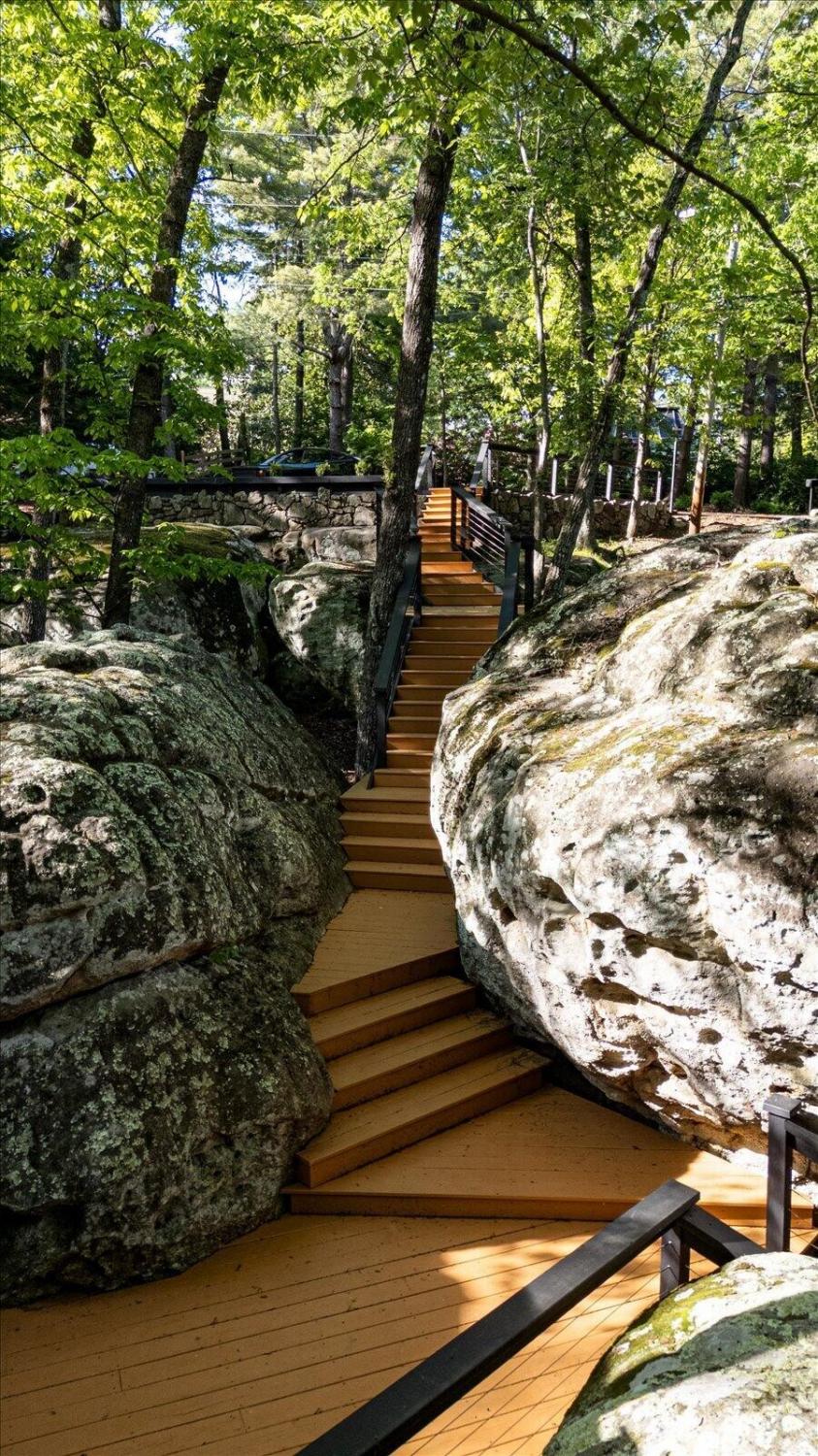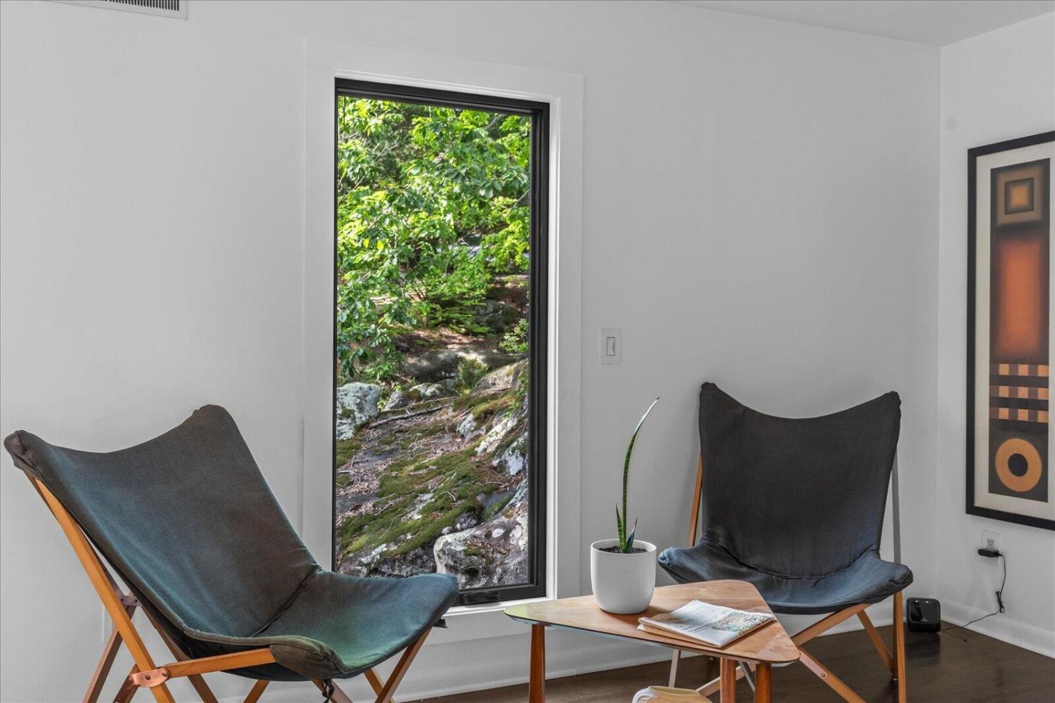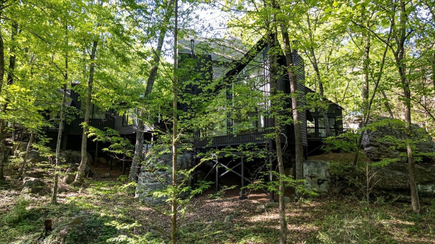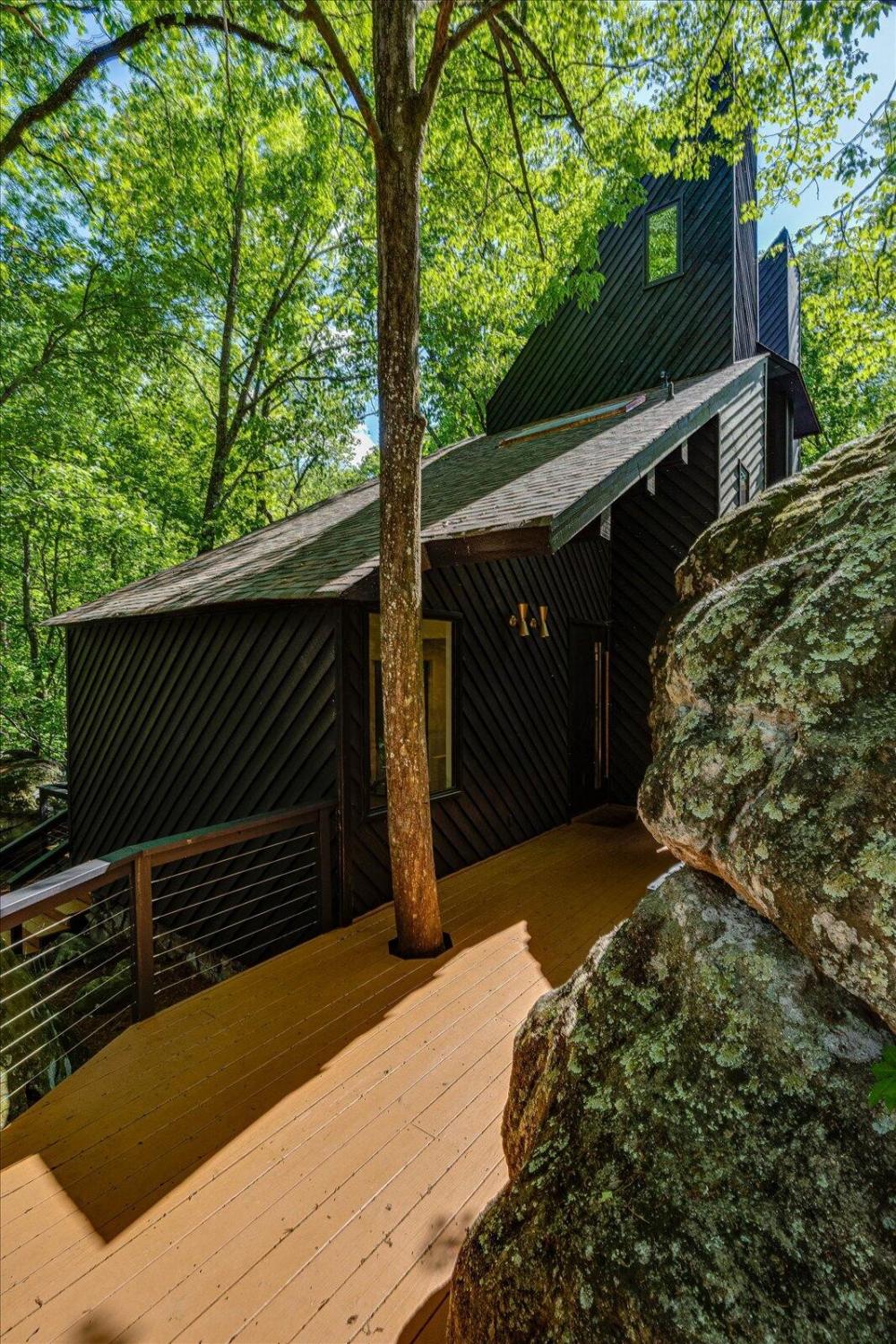 Rock House is magically positioned amongst beautiful natural boulders on a private, wooded lot. This iconic mid-century modern home sits at the end of a quiet cul-de-sac in the heart of Lookout Mountain, TN just minutes from downtown Chattanooga. Rock House is a 4 bedroom, 3.5 bath home built by a renowned architect as his personal abode that has been meticulously updated while still remaining true to the architect's vision. It is now ready for the new owner to reap the benefits of all of the recent improvements both inside and out, including huge, custom, new Marvin windows, providing views to the boulders and lush setting from every room, new architectural roof, new copper flashing, custom milled cedar siding in many areas, new commercial grade exterior lighting, new Kdat decking, new railings, new Marvin doors, new interior MCM lighting, two new Trane HVAC units, new interior and exterior paint, revitalized kitchen and keeping area, new media room, new primary suite on the main with two walk-in closets, sitting area with large custom window overlooking the boulders, in-room laundry, and bath with wall-sized custom window. Some additional special features include the steel pivot front door, two primary suites, two laundry facilities, multiple outdoor living areas, seasonal backyard stream and so much more. Rock House is truly a piece of art that one gets the privilege to live in. Curated, mid-century furnishings are included so the home can be fully appreciated. Please call for more information and to schedule your private showing today. Information is deemed reliable but not guaranteed. Buyer to verify any and all information they deem important.