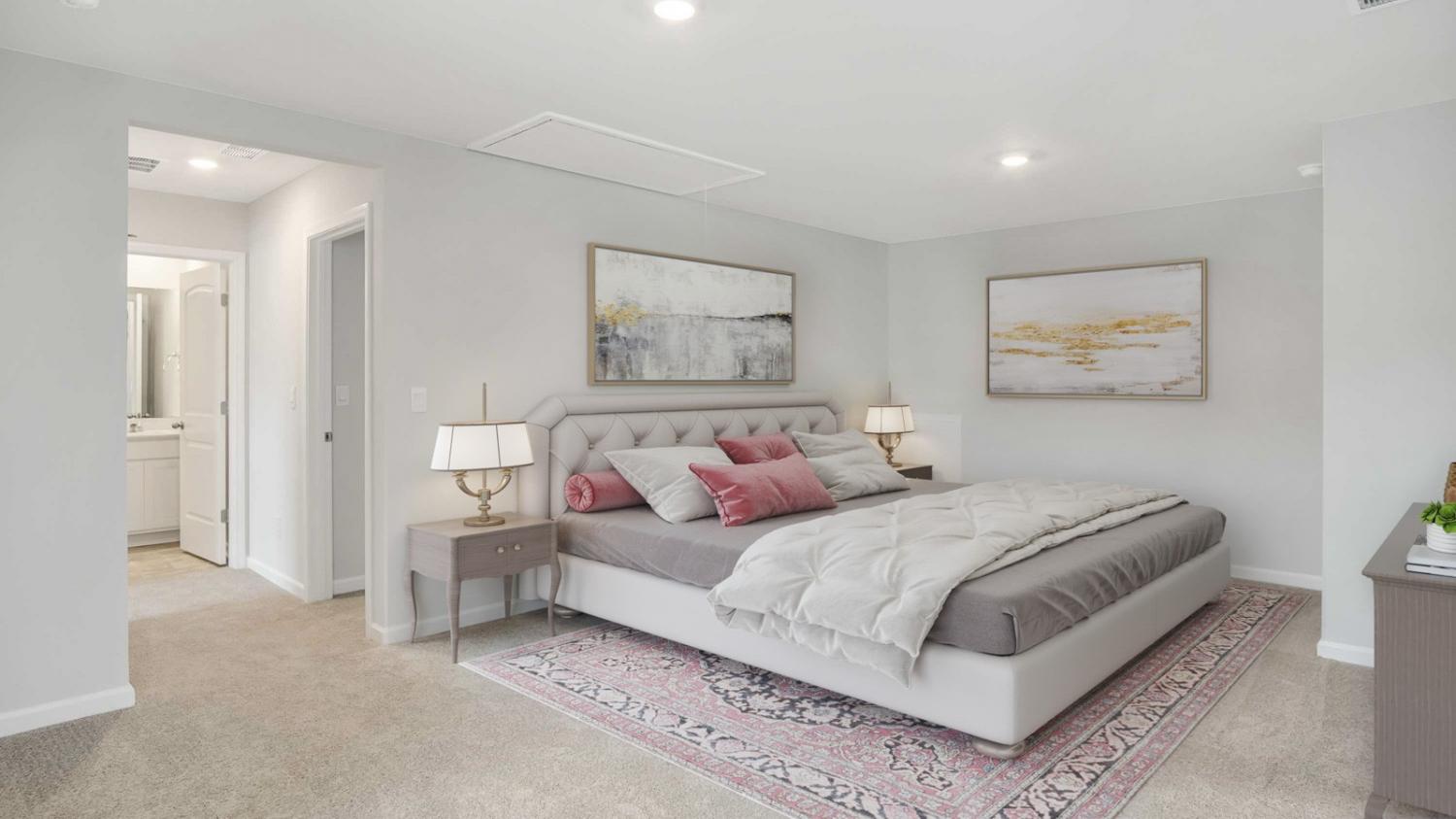 Belfort plan- 4 bedroom, 2.5 bath, with 2,267 sq ft. A modern style in a thoughtfully designed layout. Upon entry, you're welcomed by a spacious great room. The open kitchen and dining area are the heart of the home, featuring a large island for bar-style seating, a pantry, quartz countertops, and 36-inch cabinets, perfect for cooking and entertaining. The first-floor primary suite includes a walk-in closet, dual vanity, glass shower, and linen closet. Just off the 2-car garage is a built-in valet and laundry space, creating a functional mudroom. Upstairs, a large loft provides a flexible second living area. Three additional bedrooms, two with walk-in closets, and a second full bath complete the upper level. All baths feature sleek quartz countertops. Enjoy the smart home tech package, giving you control of lights, temperature, and more from your device whether home or away. Woodbridge Glen is a quiet beauty with rolling hills and lots of green space, conveniently located just 1 mile from I-40, halfway between both Mt. Juliet and Lebanon. The neighborhood features a beautiful pool, 2 spacious dog parks, playground, and a trail to the natural duck pond and pavilion. Ask about our amazing interest rates and incentives! Taxes are estimated.