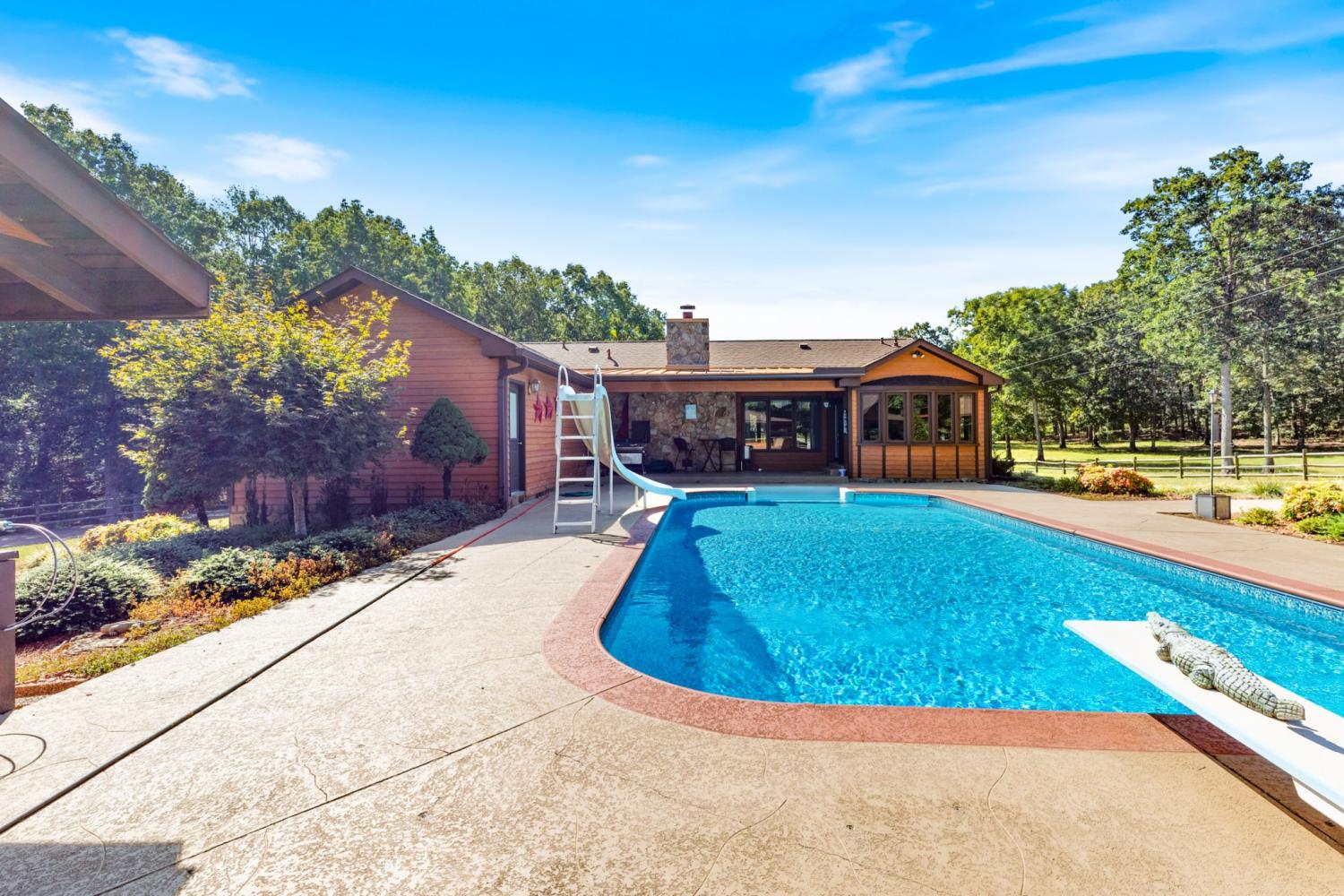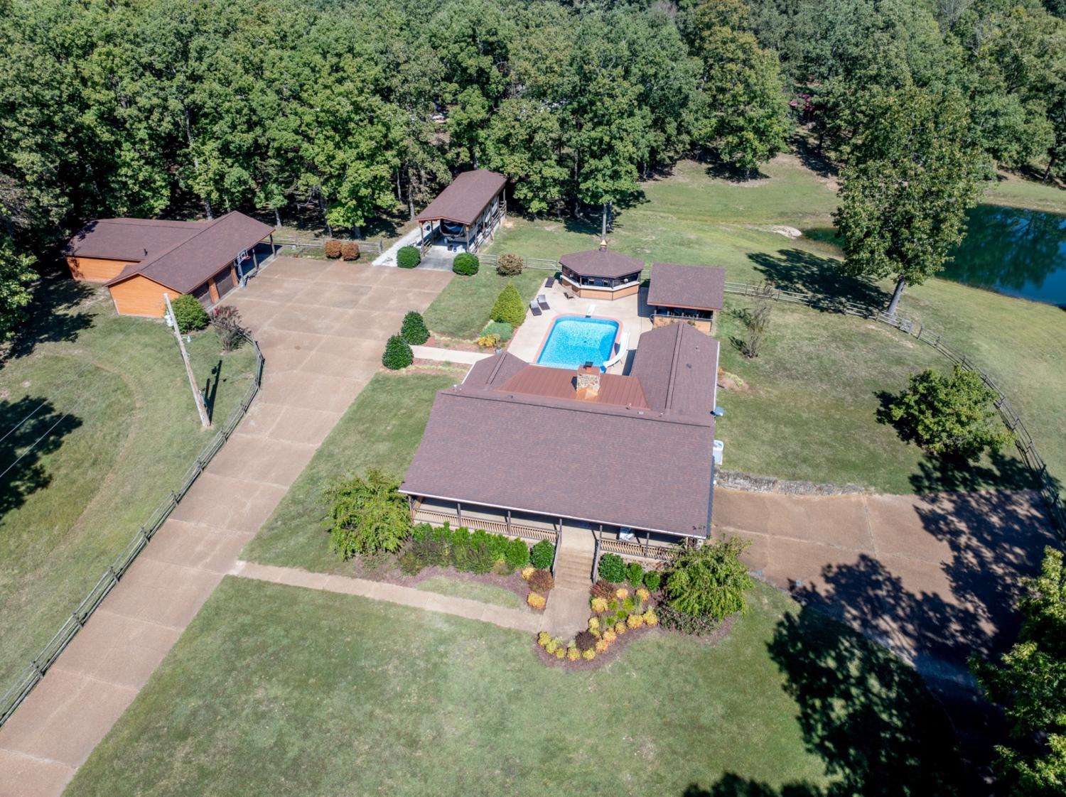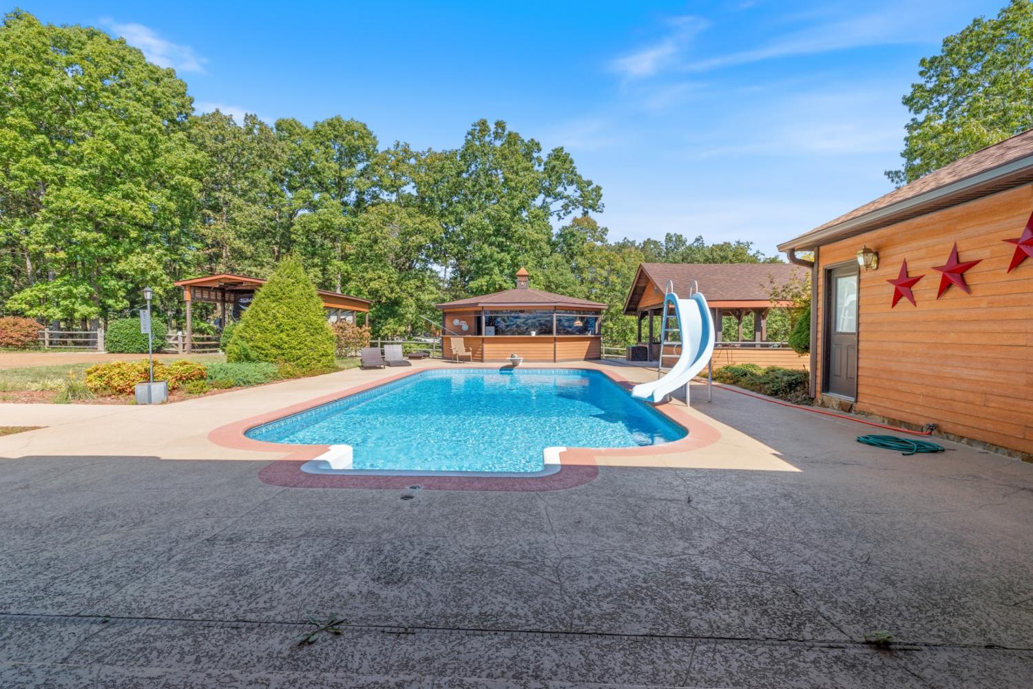 Introducing a one-of-a-kind wonder on the market—a dazzling display of luxury! This jaw-dropping 4-bedroom, 4.5-bath estate is decked out with all the glitz and glam you could dream of only 2 minutes to I-40. Revel in exquisite, original hardwood floors, snazzy custom cabinets, a gas fireplace, top-of-the-line Thermador appliances, custom crank windows and a charming covered front porch. But wait, there's more! The back patio boasts an in-ground pool, a pavilion, and a wet bar with an outdoor kitchen. Plus, there's a 2-car garage, a 2-car carport, a colossal heated shop, and fencing ready for horses or cows, complete with an entry cattle gap and a motor home shed. All this, with a picturesque view of a shimmering lake! On the main level, you'll find a bespoke eat-in kitchen, a separate dining room, a grand living room, and two massive bedrooms with two baths. The basement doesn’t disappoint either, featuring two bedrooms, 1.5 baths, a kitchen, workout/gym rooms (perfect for offices), and a living room with easy access to downstairs parking.