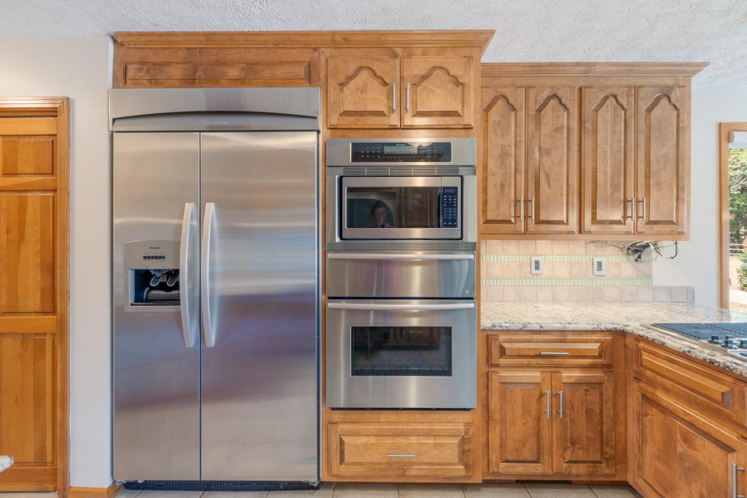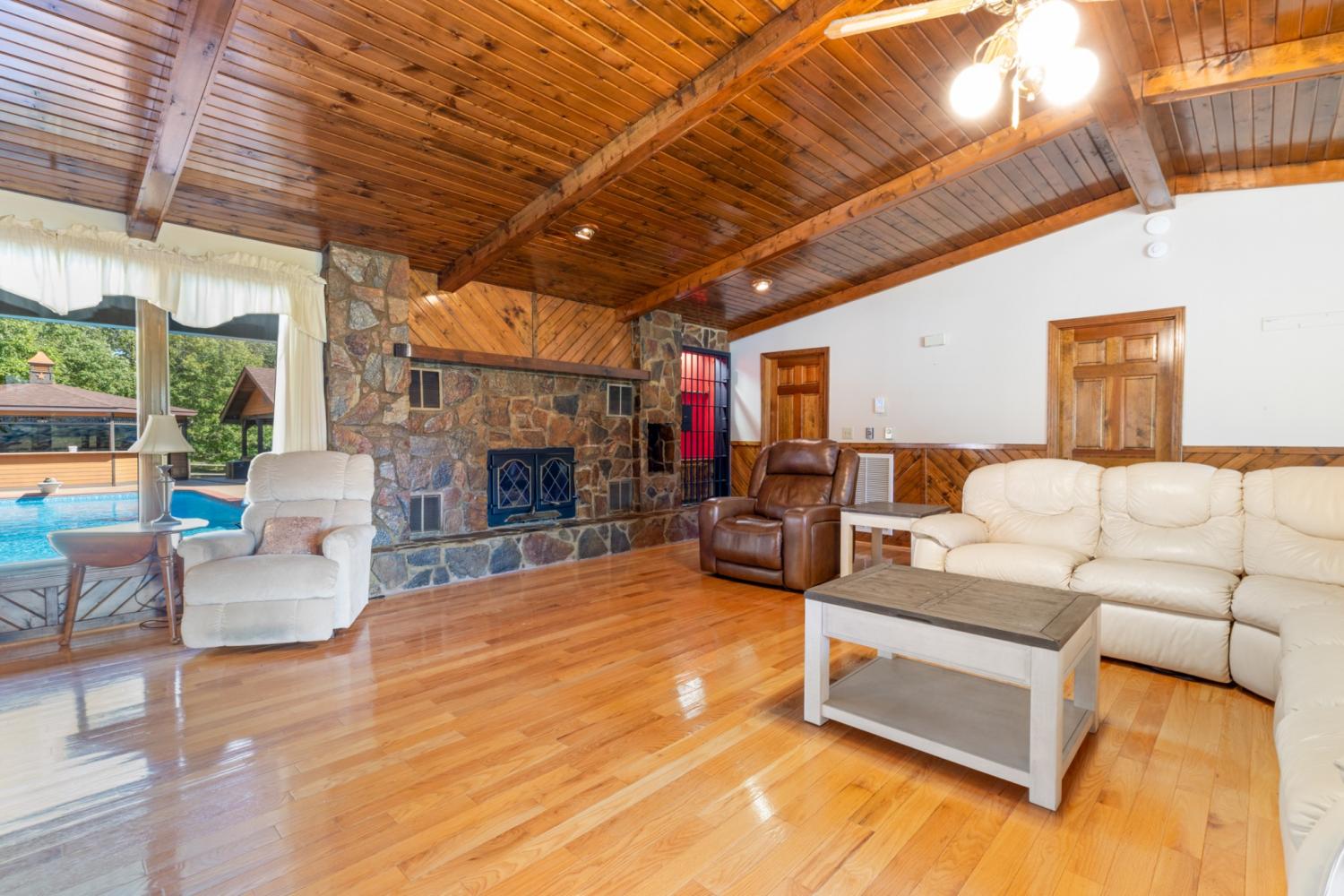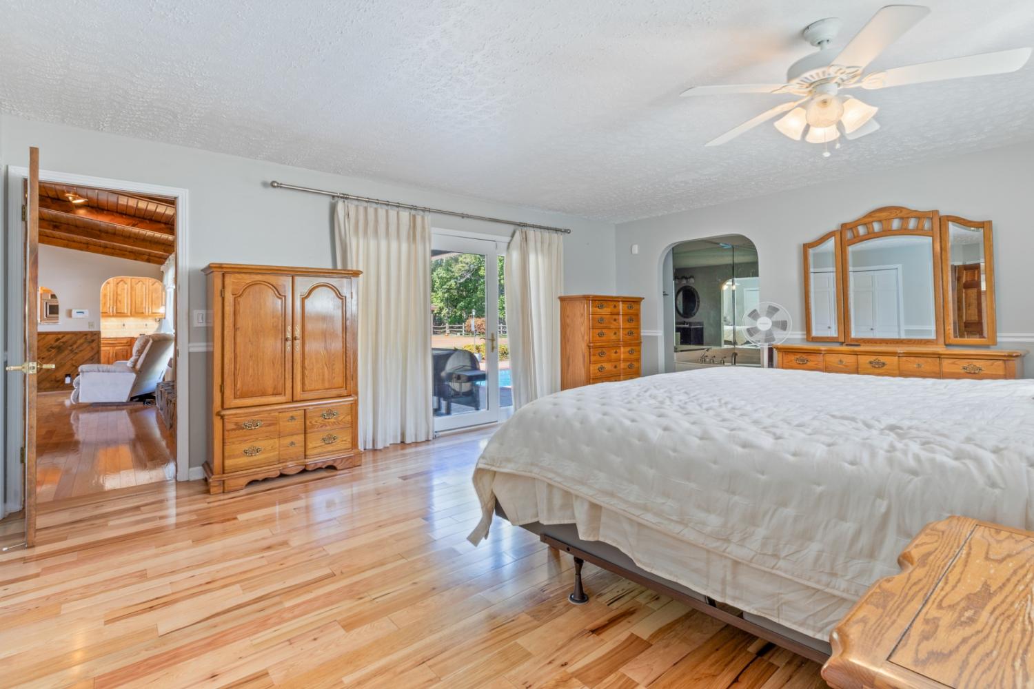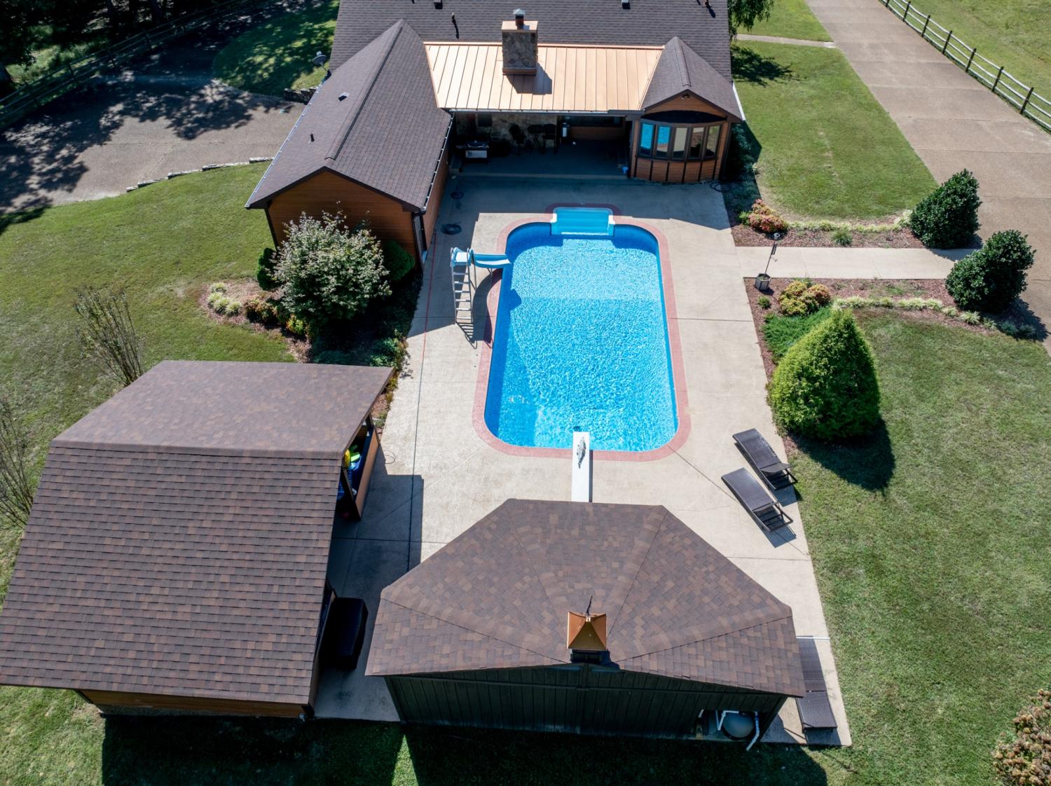 Introducing a one-of-a-kind wonder on the market—a dazzling display of luxury! This jaw-dropping 4-bedroom, 4.5-bath estate is decked out with all the glitz and glam you could dream of only 2 minutes to I-40. Revel in exquisite, original hardwood floors, snazzy custom cabinets, a gas fireplace, top-of-the-line Thermador appliances, custom crank windows and a charming covered front porch. But wait, there's more! The back patio boasts an in-ground pool, a pavilion, and a wet bar with an outdoor kitchen. Plus, there's a 2-car garage, a 2-car carport, a colossal heated shop, and fencing ready for horses or cows, complete with an entry cattle gap and a motor home shed. All this, with a picturesque view of a shimmering lake! On the main level, you'll find a bespoke eat-in kitchen, a separate dining room, a grand living room, and two massive bedrooms with two baths. The basement doesn’t disappoint either, featuring two bedrooms, 1.5 baths, a kitchen, workout/gym rooms (perfect for offices), and a living room with easy access to downstairs parking.
