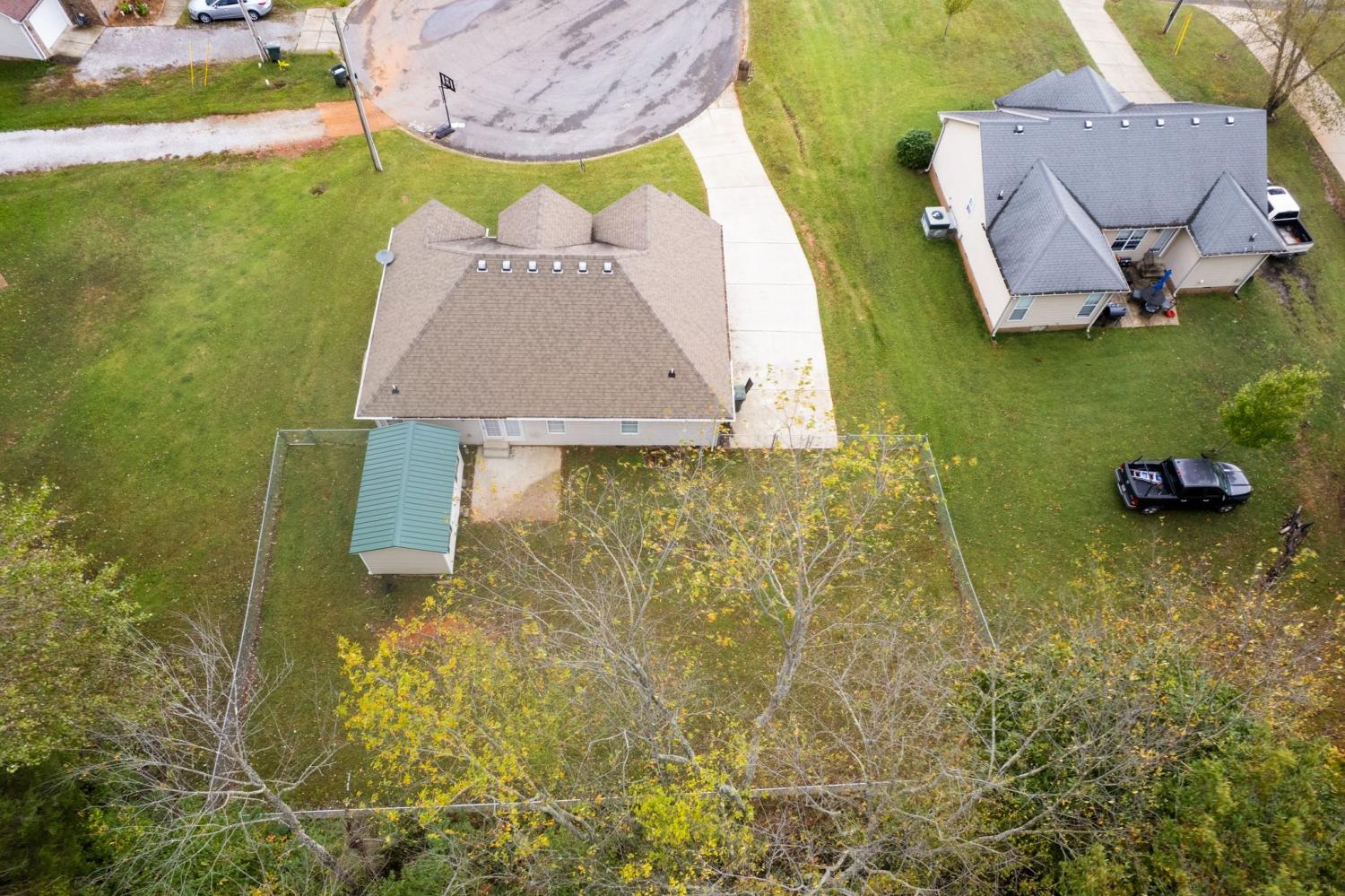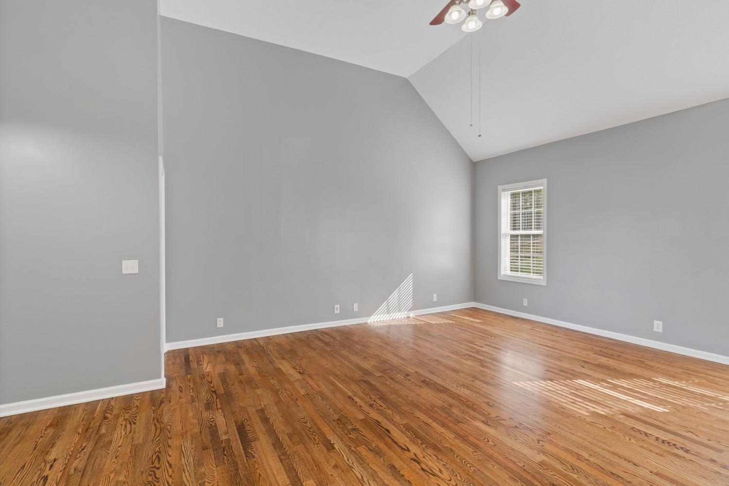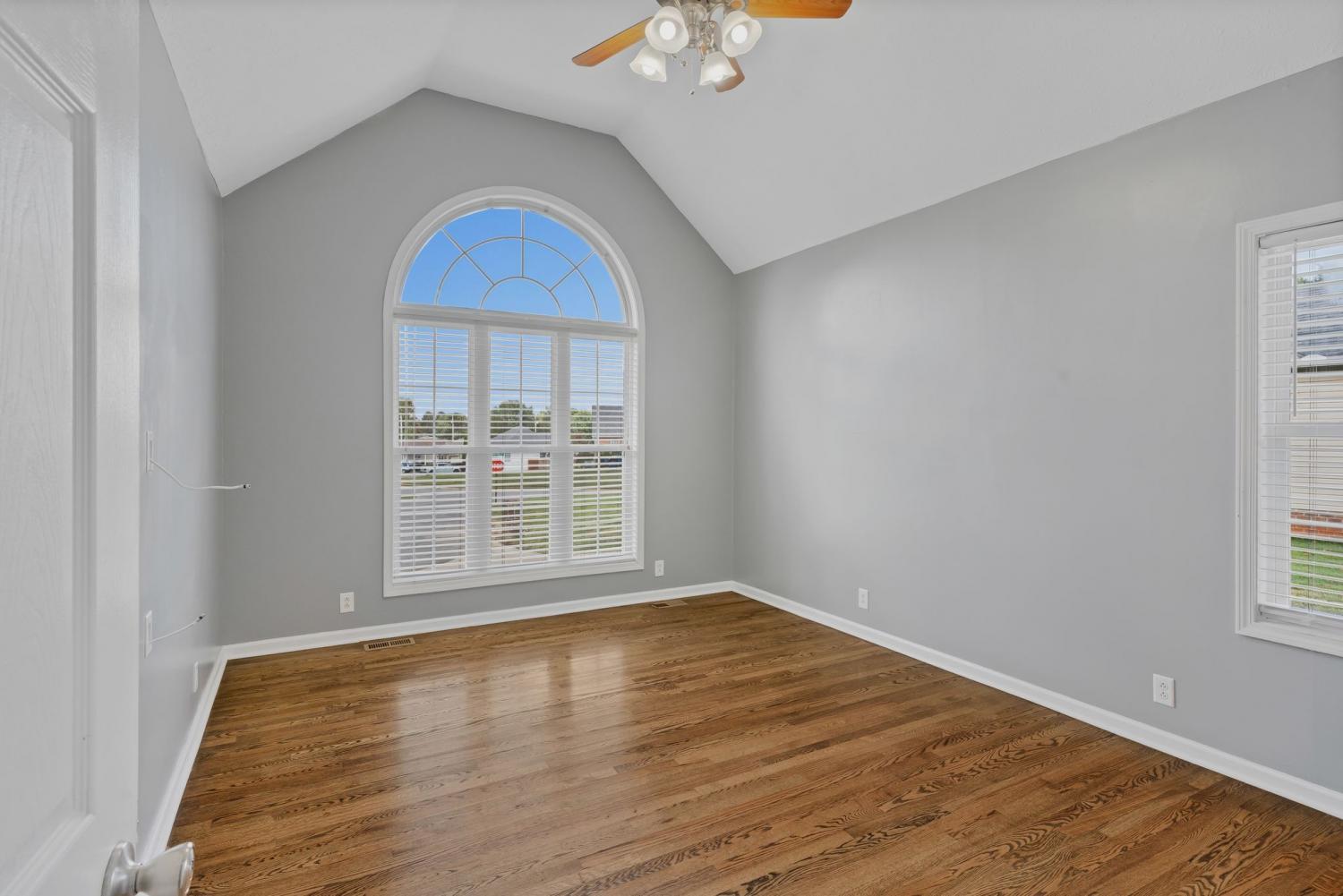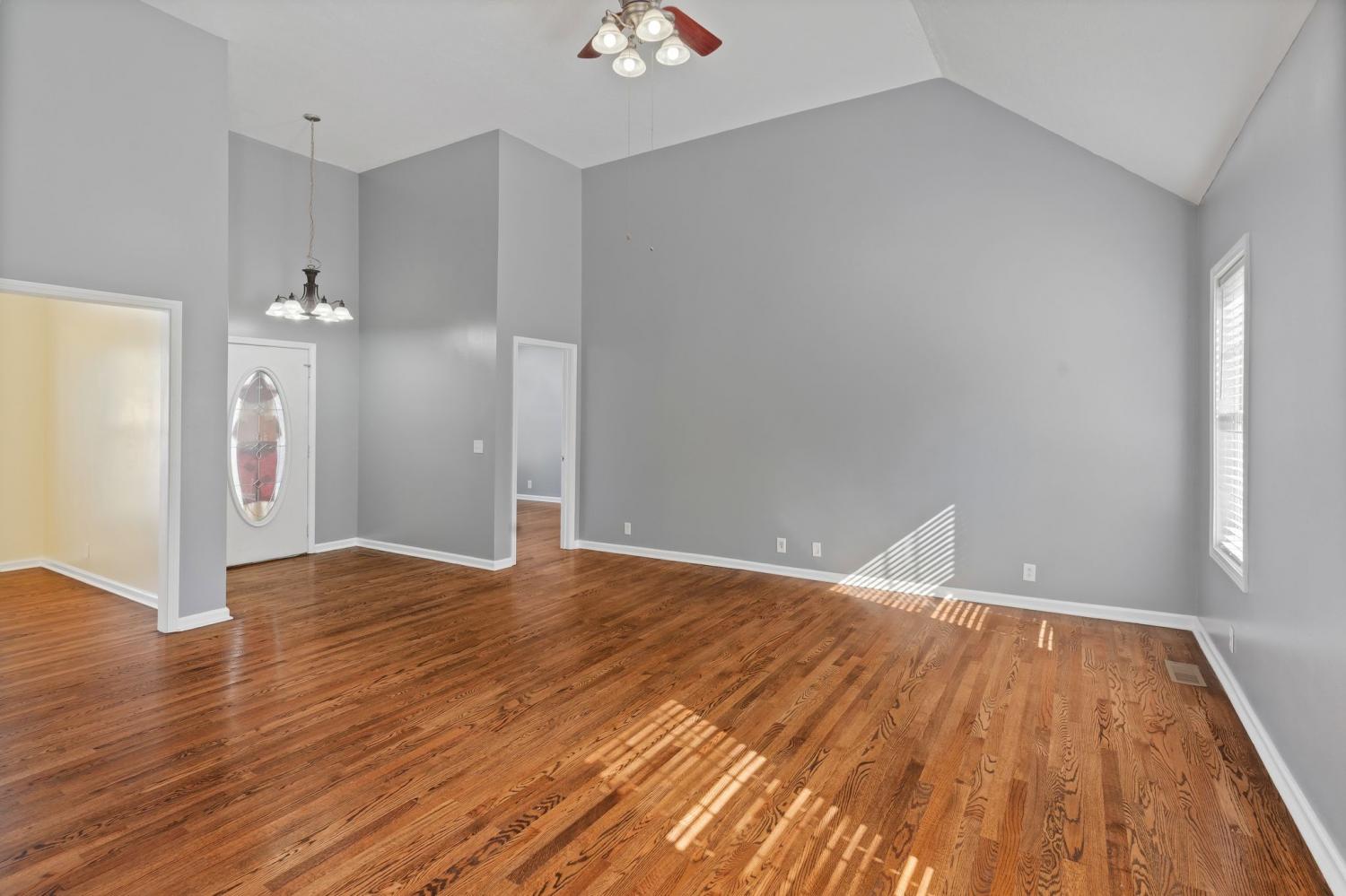 This gorgeous 3-bedroom, 2-bath home is tucked in a quiet cul-de-sac on a spacious lot with a fenced backyard and a huge shed —perfect for relaxing or entertaining. Inside, you’ll love the beautiful hardwood floors and soaring cathedral and vaulted ceilings that fill the home with light. The inviting kitchen offers an eat-in area, pantry with shelving, and refrigerator that remains, all opening to a 12x12 patio. The formal dining room features tall windows and 13’ ceilings for a bright, open feel. The large master suite includes oversized windows, a huge walk-in closet, and a luxurious bath with tile floors, double vanity, garden tub, and separate shower. Additional highlights include a laundry room, freshly painted, new HVAC, water heater only 3 years old, attic access, new toilet, and low-maintenance brick and on front exterior. No HOA! A wonderful floor plan and move-in-ready condition make this one a must-see!