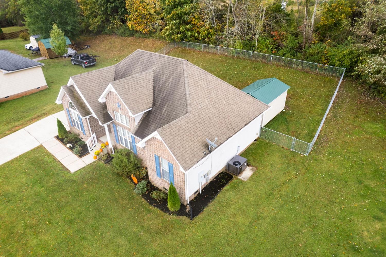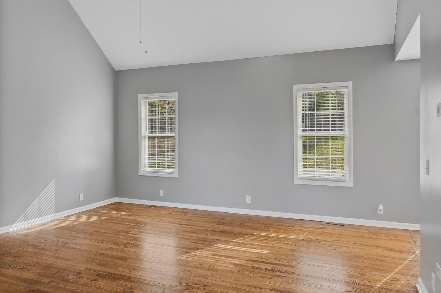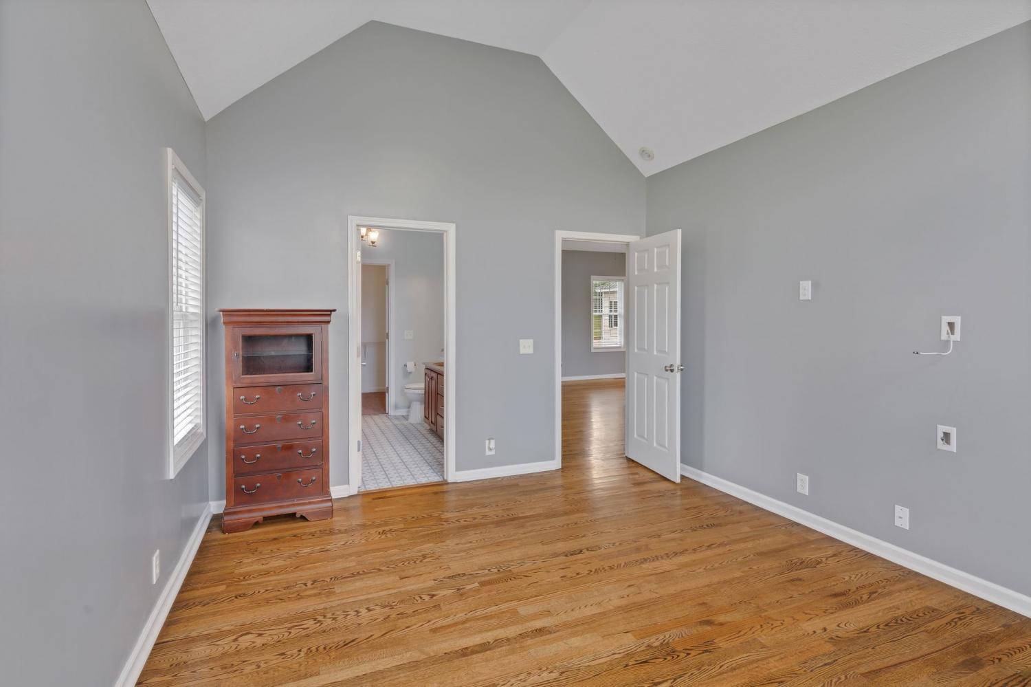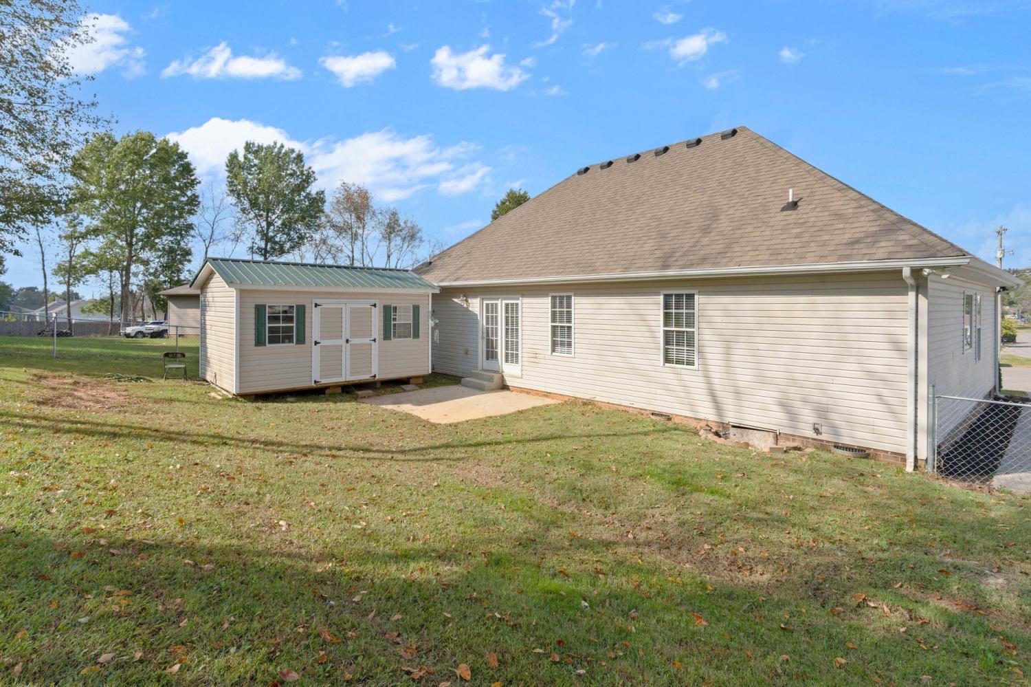 This gorgeous 3-bedroom, 2-bath home is tucked in a quiet cul-de-sac on a spacious lot with a fenced backyard and a huge shed —perfect for relaxing or entertaining. Inside, you’ll love the beautiful hardwood floors and soaring cathedral and vaulted ceilings that fill the home with light. The inviting kitchen offers an eat-in area, pantry with shelving, and refrigerator that remains, all opening to a 12x12 patio. The formal dining room features tall windows and 13’ ceilings for a bright, open feel. The large master suite includes oversized windows, a huge walk-in closet, and a luxurious bath with tile floors, double vanity, garden tub, and separate shower. Additional highlights include a laundry room, freshly painted, new HVAC, water heater only 3 years old, attic access, new toilet, and low-maintenance brick and on front exterior. No HOA! A wonderful floor plan and move-in-ready condition make this one a must-see!